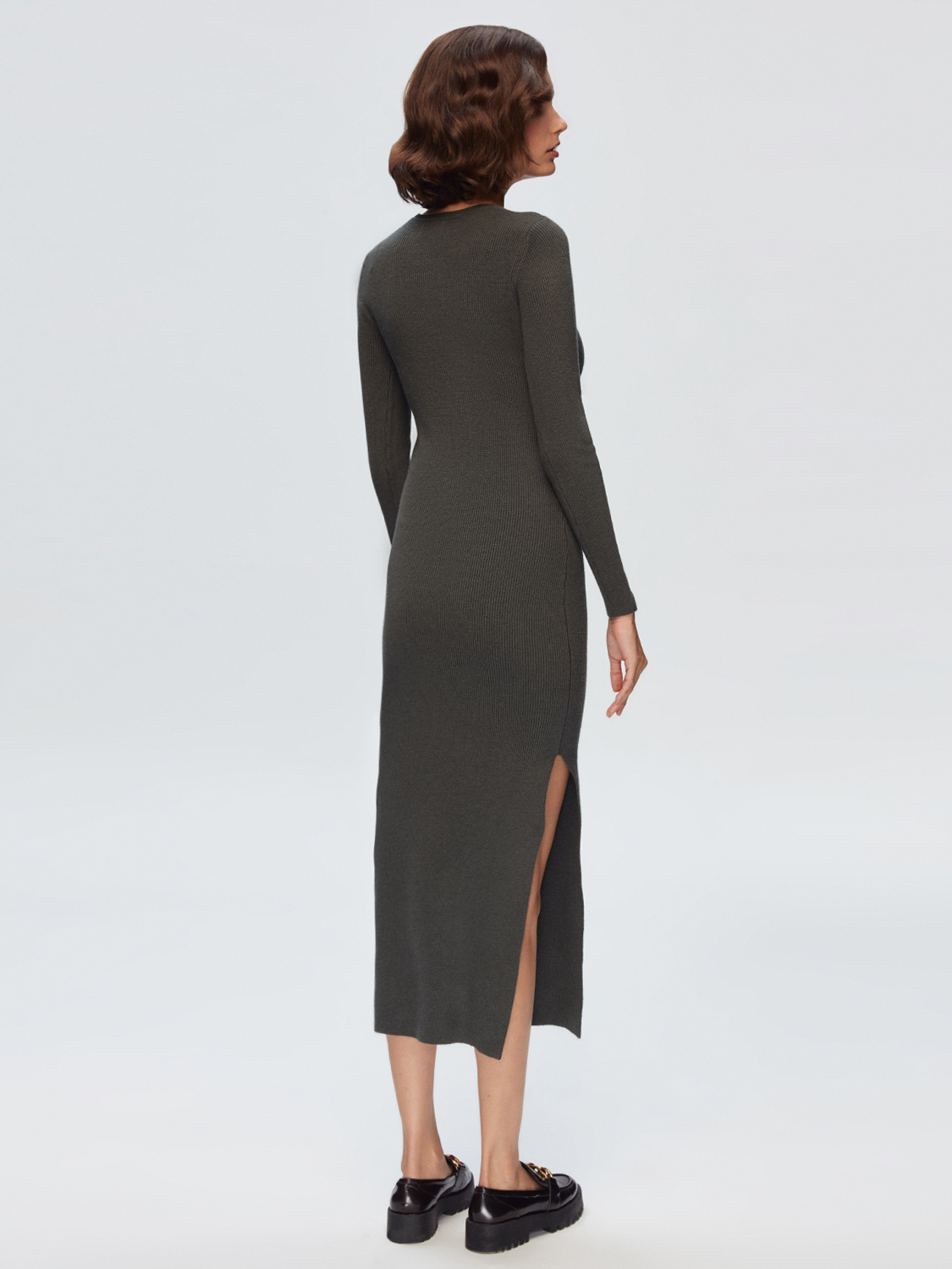 Облегающее трикотажное платье миди с изящным боковым вырезом. Округлый вырез, мягкая и приятная телу ткань с ангорой в составе. Подчеркивает силуэт, при этом не просвечивает, не задирается и держит форму. Благодаря непринужденному крою, платье подойдет как для повседневной носки на работу или в офис, так и для вечерних мероприятий. Базовый вариант первого слоя под тренч и пальто, из обуви подойдут лоферы или ботильоны. На модели размер S. Параметры модели: рост 180, 82-60-90.