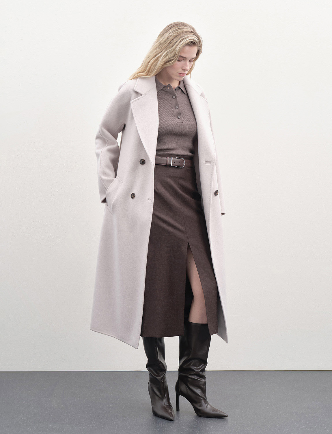 Двубортное пальто из смеси натуральной шерсти и мягкого кашемира. Такое сочетание материалов обеспечивает пальто высокие теплоизоляционные свойства, драпируемость и износостойкость. Застежка на пуговицы регулирует плотность прилегания пальто к телу, а съемный пояс поможет создать приталенный силуэт. У пальто цельнокроеные рукава и боковые карманы, которые согреют руки и сохранят мелочи. Пальто сочетается с классическими брюками, джинсами и платьями, образ дополнят ботинки, сапоги или ботильоны, а также элегантный платок или шарф. На модели размер S. Параметры модели: рост 179, 75-59-87.