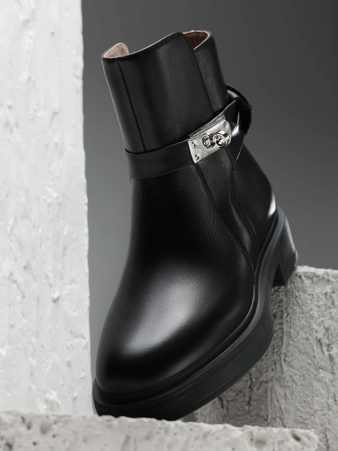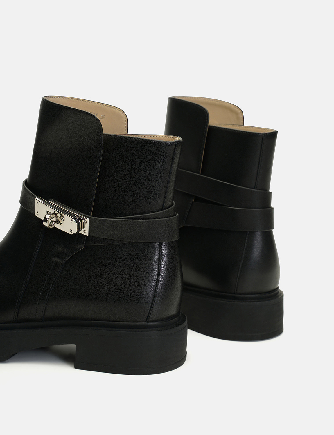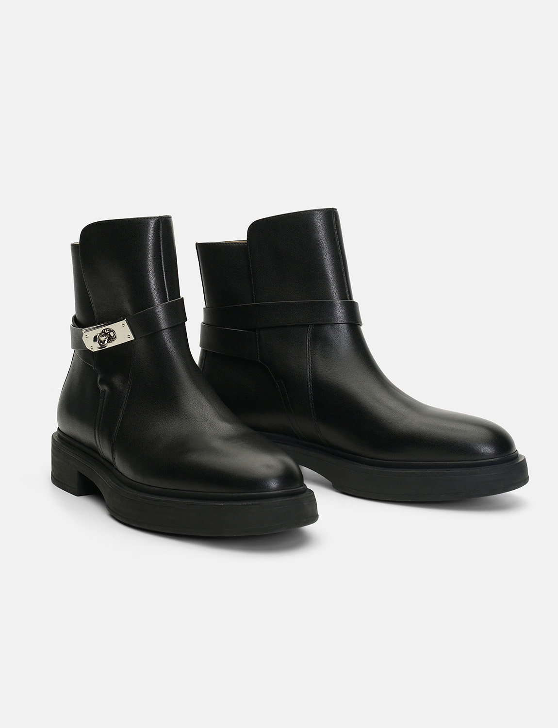 Полусапоги из гладкой натуральной кожи. У сапог классический дизайн с массивной подошвой и небольшим каблуком, овальный носок и декоративная пряжка. Гладкая кожа мягкая, эластичная, прочная и долговечная. Обувь из натуральных материалов обеспечивает воздухообмен и оптимальный микроклимат. Она гипоаллергенна, безопасна и подходит для людей с чувствительной кожей. Эта модель сочетается с разными стилями одежды - от классических до более расслабленных. Сапоги сочетаются с брюками, юбками или платьями.
