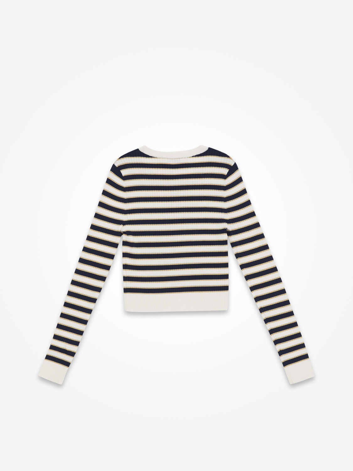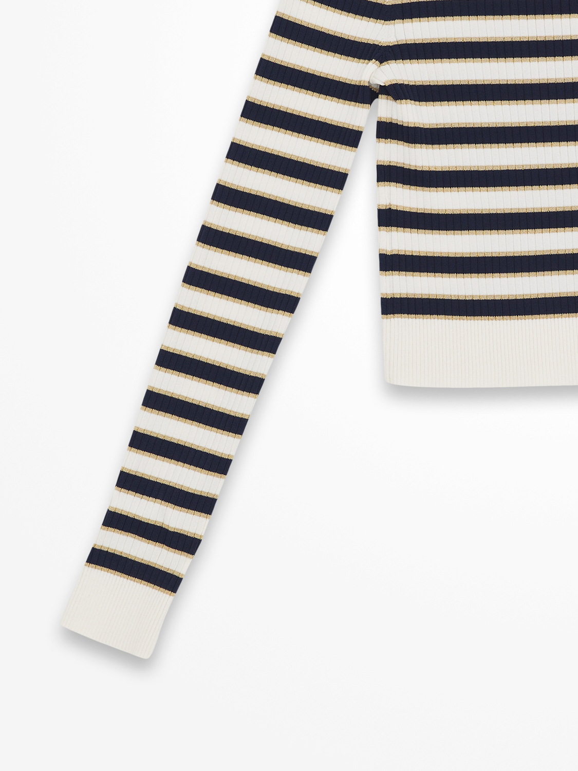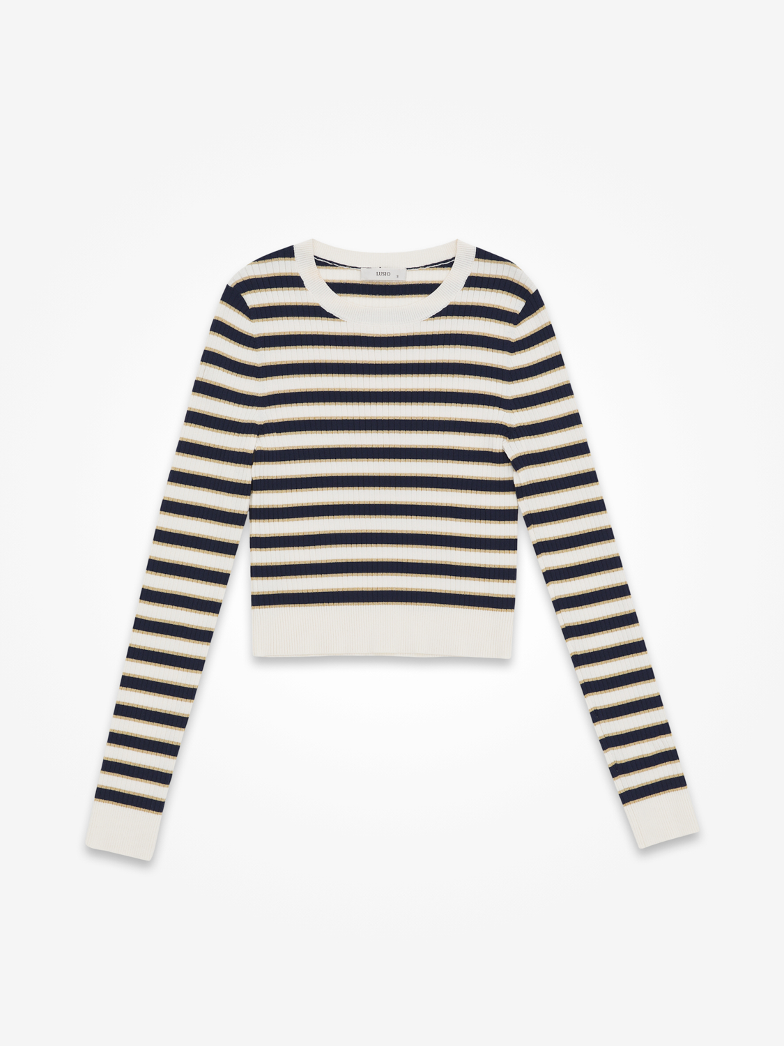 Облегающий укороченный джемпер в рубчик с длинными рукавами. Округлый вырез, комфортные манжеты на рукавах и резинка по низу, актуальный узор в горизонтальную полоску, мягкая и приятная на ощупь и телу ткань. Благодаря смесовому составу, джемпер не растягивается и не теряет свою форму при должном уходе. Дополнит офисные и рабочие образы с брюками и жакетами, а также с денимом, универсален для повседневных и деловых образов. На модели размер S. Параметры модели: рост 173, 80-63-91.