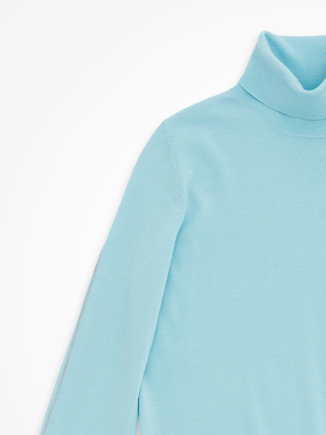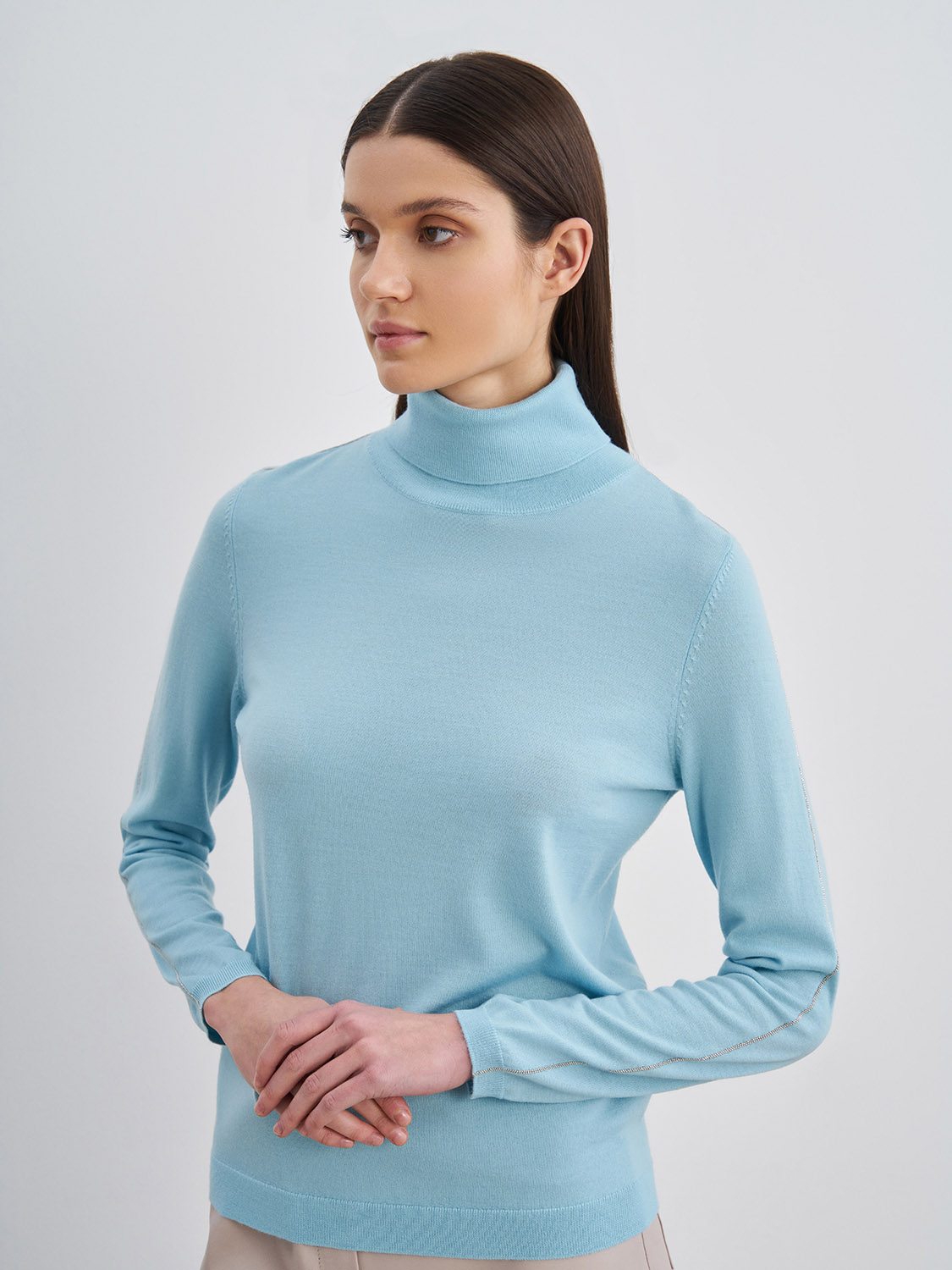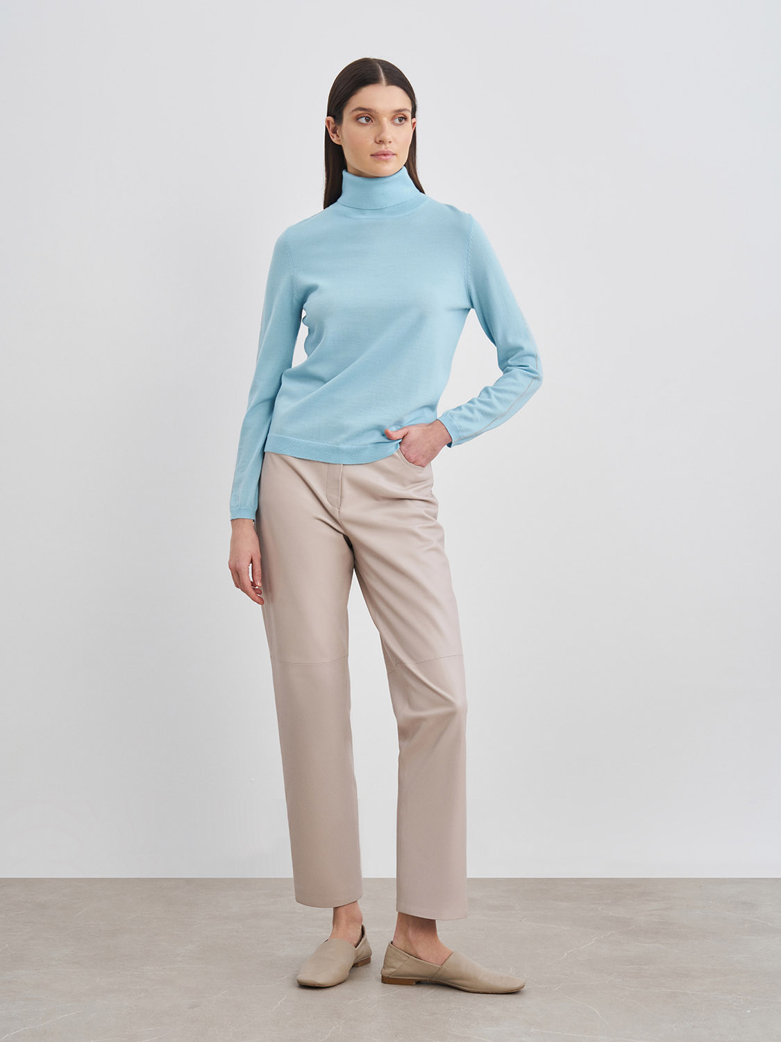 Классическая водолазка из натуральной шерсти мериноса. Мягкая и приятная телу ткань, не колется и не закатывается со временем при должном уходе. Базовый вариант для повседневной жизни, для работы и офиса. Подходит как под кэжуал образы с джинсами, лоферами или кедами, так и под классические с брюками, юбками и жакетами. На модели размер S. Параметры модели: рост 173, 80-63-91.
