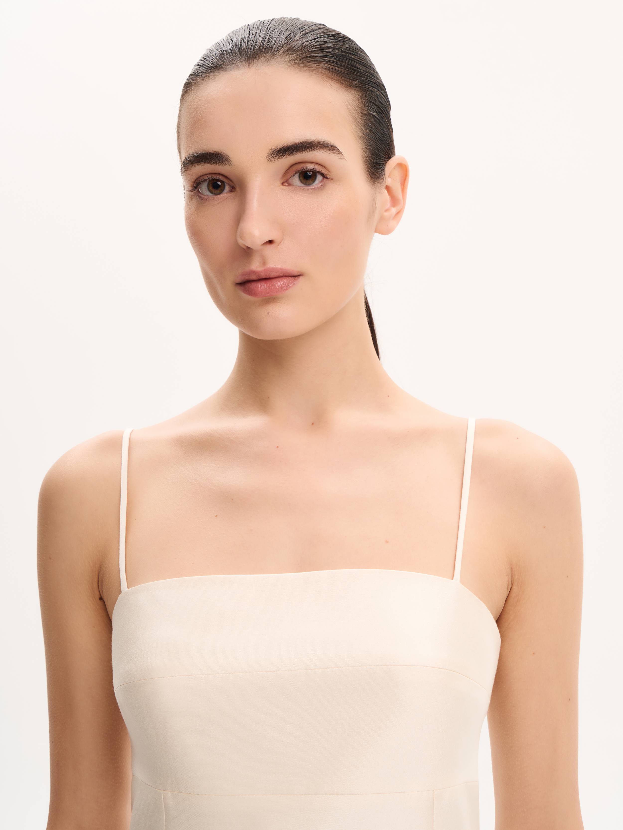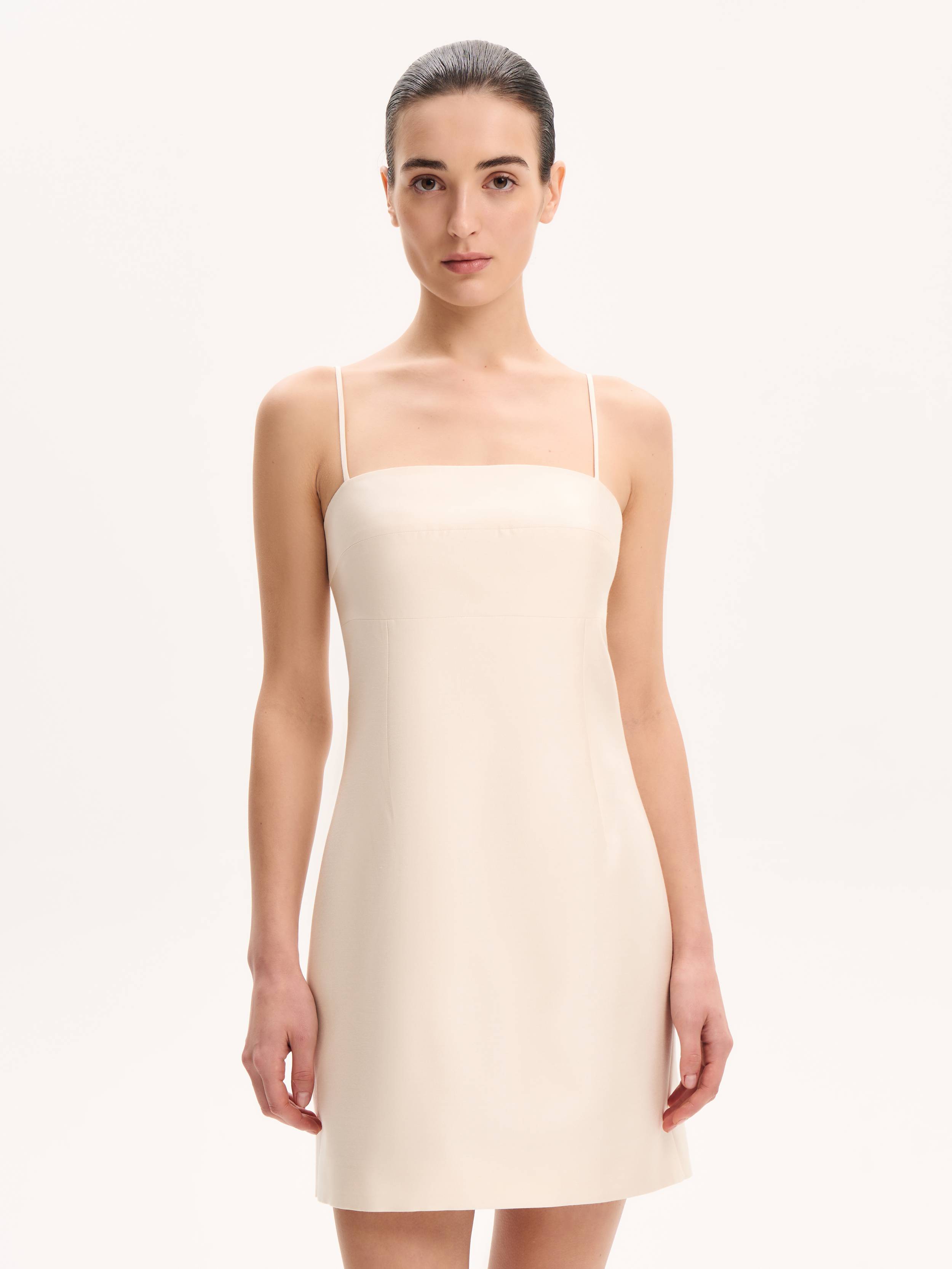Мини-платье на тонких бретелях — выразительная и лаконичная модель, в которой сочетаются элегантный силуэт и премиальный состав. Смесь натуральной шерсти и шелка — редкое и изысканное сочетание — придает ткани благородную плотность, пластичность и тонкий деликатный блеск. Шерсть отвечает за форму и структуру, а шелк добавляет мягкость, гладкость и едва уловимое сияние, заметное в вечернем свете. Материал красиво драпируется и ощущается дорого, создавая на теле эффект мягкого обволакивания. Мягкий прямой крой подчеркивает фигуру, а регулируемые бретели позволяют точно настроить посадку. Эта модель уместна в вечернем гардеробе — для эстетичных ужинов, событий и светских встреч, но также легко адаптируется к стилизованным дневным выходам — с жакетом, босоножками или минималистичными украшениями.