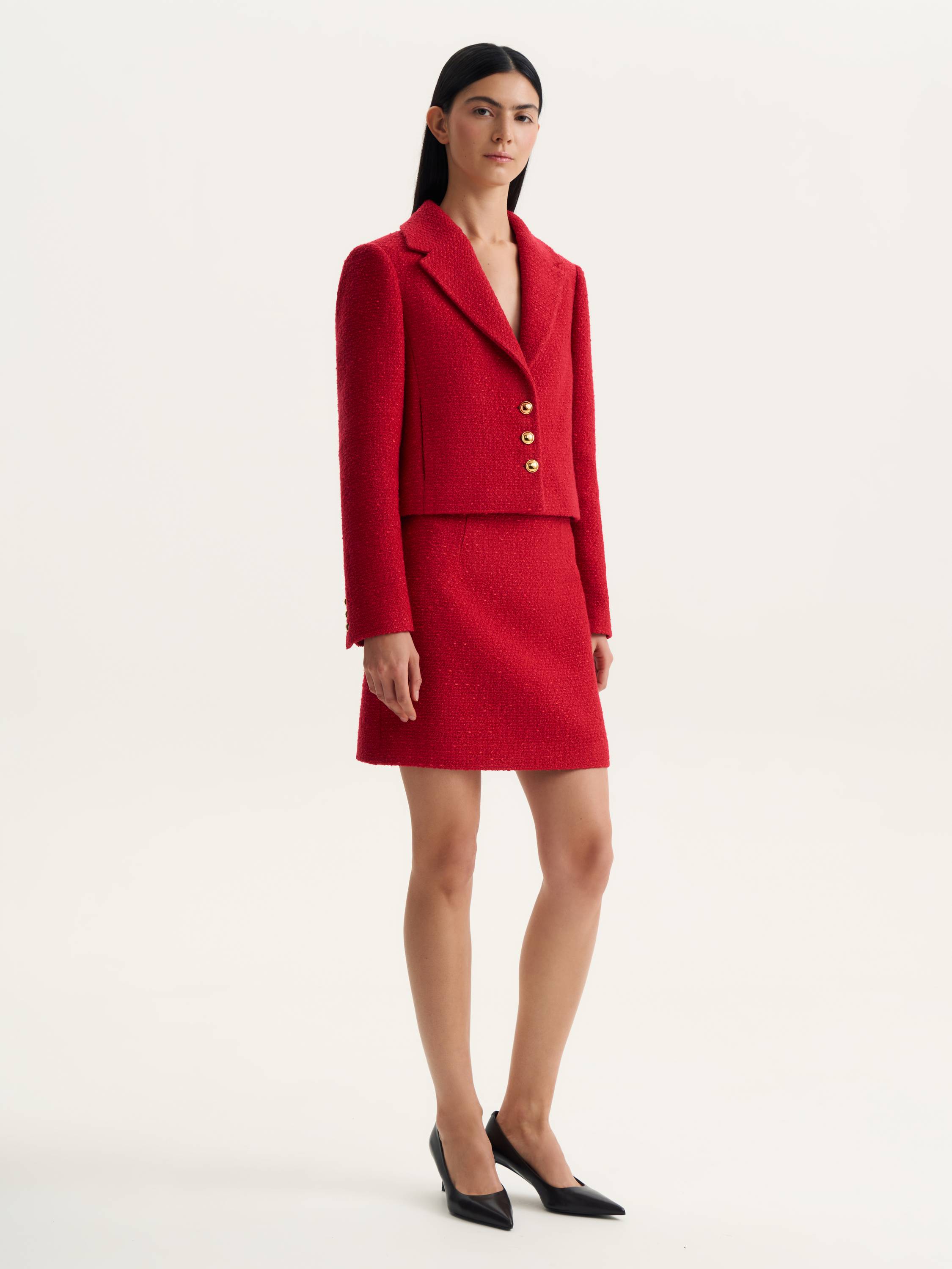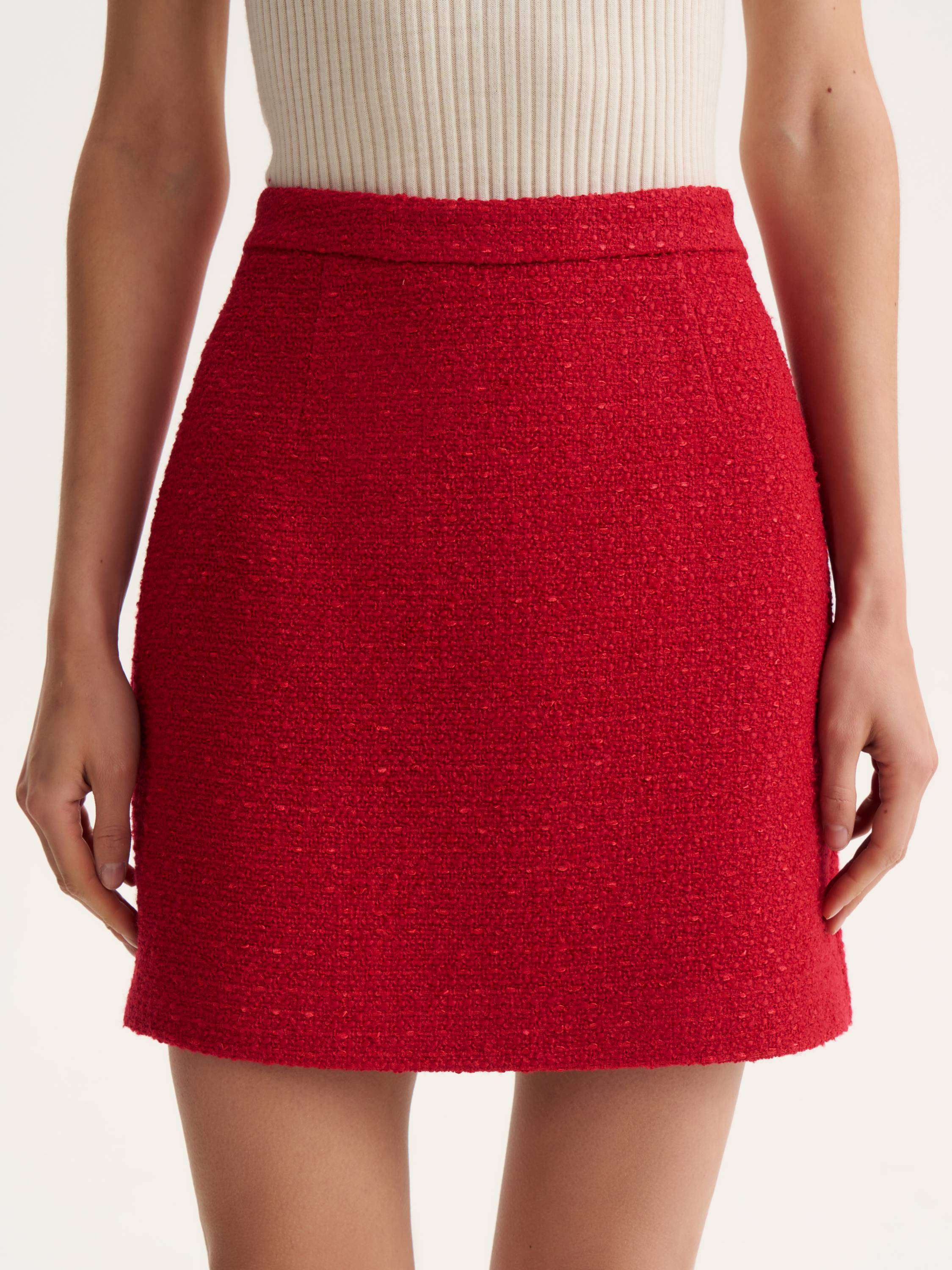 Лаконичная и элегантная модель с выразительной текстурой и насыщенным цветом, который становится акцентом в образе. Прямой силуэт подчеркивает фигуру, а плотный фактурный материал с добавлением шерсти делает изделие комфортным и приятным на ощупь. Завышенная посадка акцентирует талию, создавая сбалансированный силуэт. Лаконичный пояс и аккуратные вытачки обеспечивают безупречную посадку. Юбка станет стильным элементом гардероба, легко сочетаясь с трикотажными топами, строгими рубашками и жакетами.