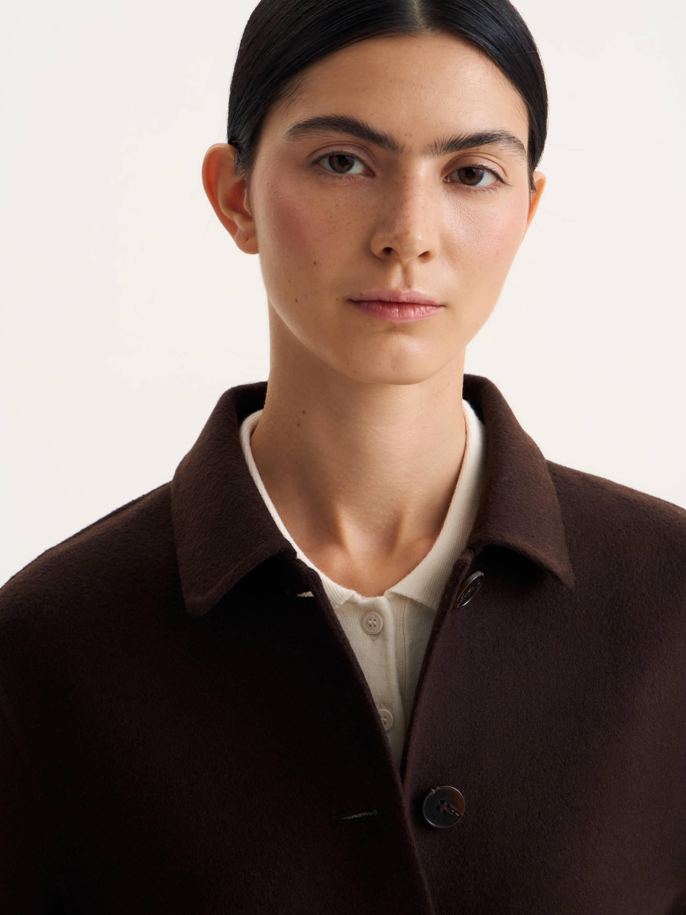 Пальто из шерсти мериноса – универсальная модель, сочетающая элегантность и функциональность. Плотная, но пластичная ткань дарит комфорт и тепло, оставаясь легкой и приятной в носке. Четкие линии и минималистичный крой подчеркивают силуэт, а накладные карманы добавляют практичности и делают образ более расслабленным. Лаконичный воротник и строгая застежка придают модели сдержанную элегантность, позволяя легко адаптировать ее под разные стили – от делового до повседневного. Долговечный материал и продуманный дизайн делают это пальто надежной основой гардероба на долгие сезоны.