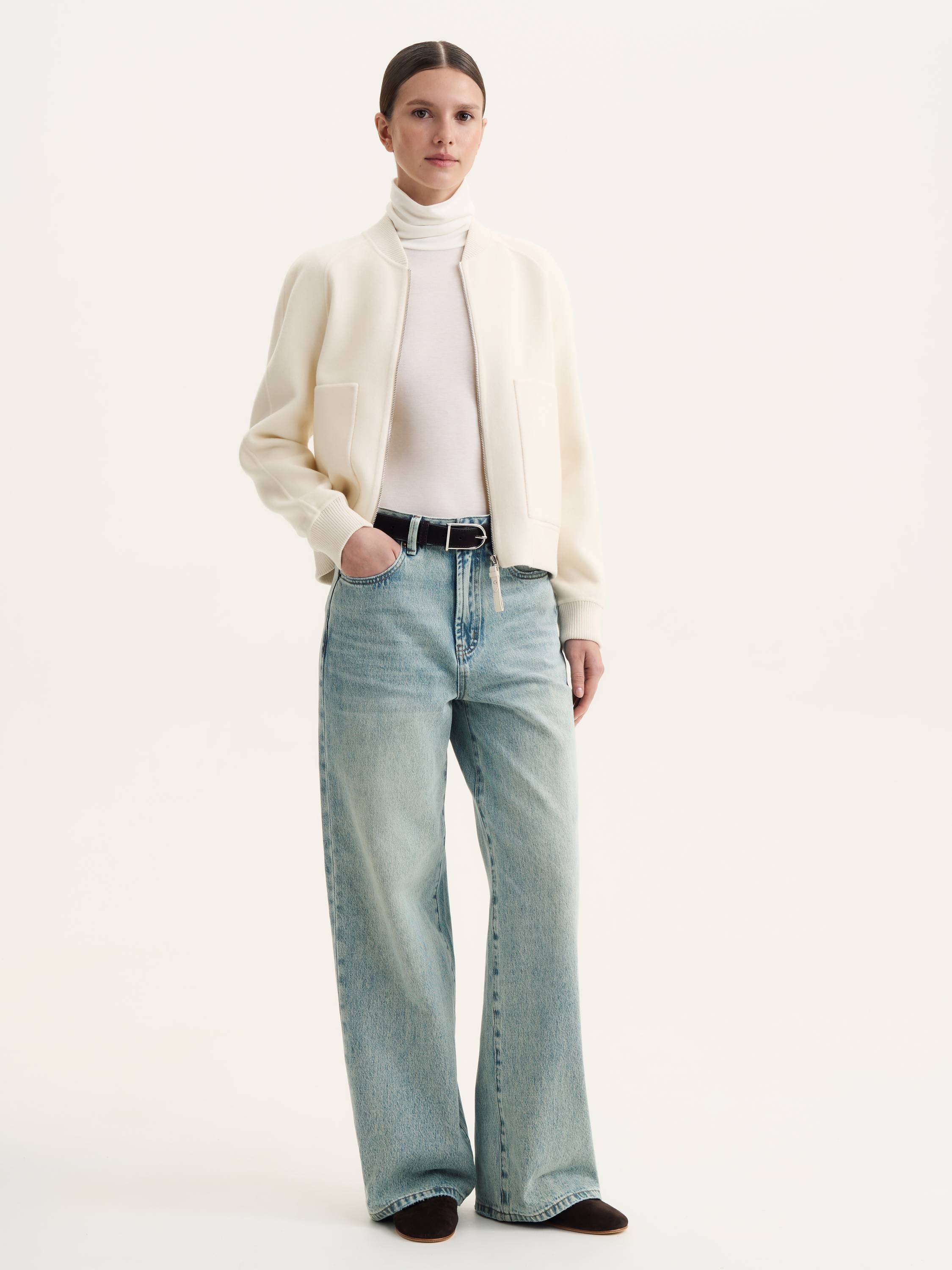 Бомбер из шерсти мериноса — сочетание современного стиля и премиального комфорта. Натуральная шерсть делает модель теплой, легкой и приятной на ощупь, а лаконичный силуэт подчеркивает универсальность дизайна. Рукава реглан обеспечивают свободу движений, трикотажная отделка манжет и воротника добавляет комфорт, а молния-застежка делает модель практичной для повседневной носки. Накладные карманы завершают образ, привнося в него баланс функциональности и минимализма. Этот бомбер станет стильной альтернативой классическим курткам и гармонично впишется в любой гардероб.