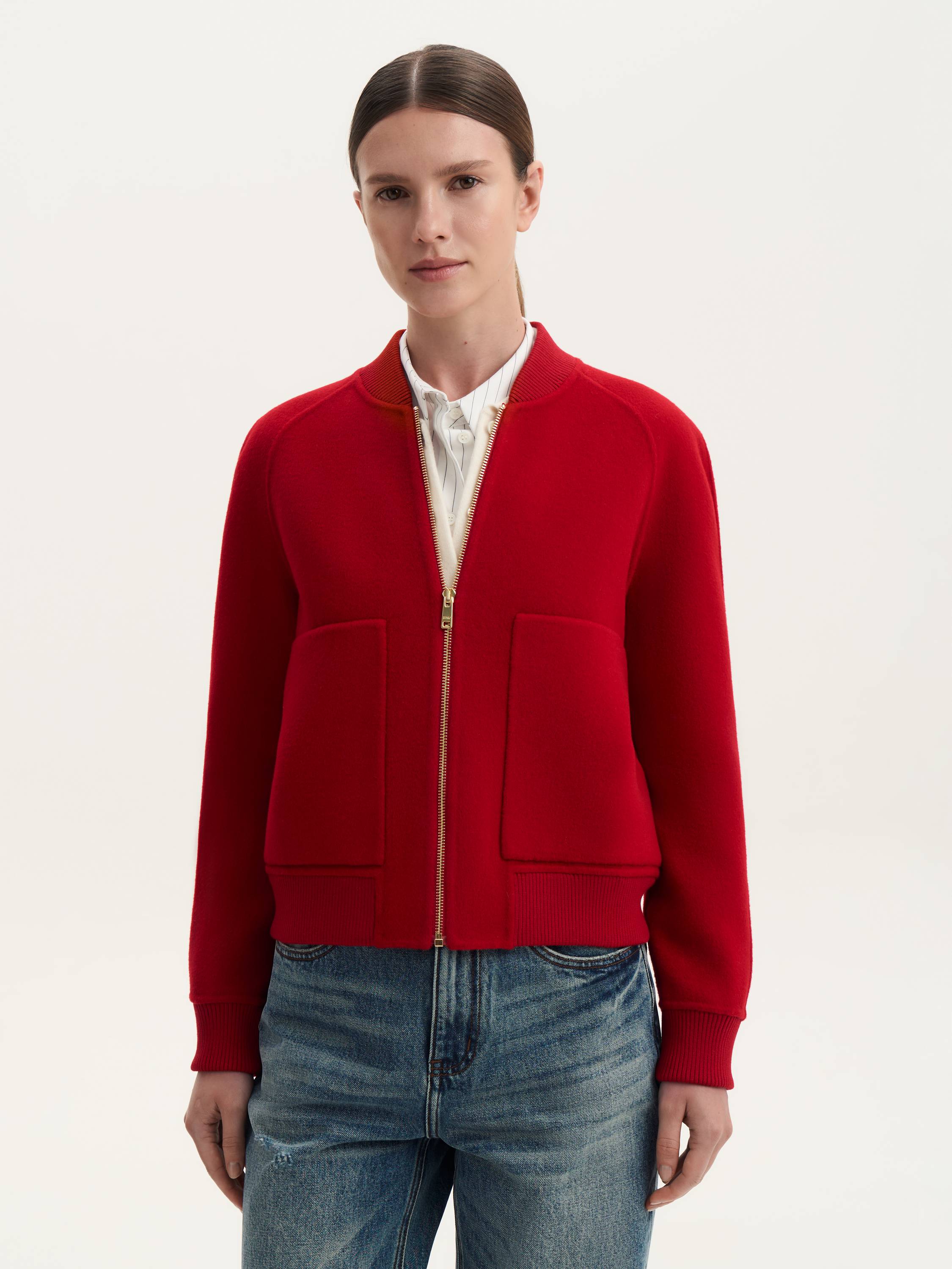 Бомбер из шерсти мериноса — сочетание современного стиля и премиального комфорта. Натуральная шерсть делает модель теплой, легкой и приятной на ощупь, а лаконичный силуэт подчеркивает универсальность дизайна. Рукава реглан обеспечивают свободу движений, трикотажная отделка манжет и воротника добавляет комфорт, а молния-застежка делает модель практичной для повседневной носки. Накладные карманы завершают образ, привнося в него баланс функциональности и минимализма. Этот бомбер станет стильной альтернативой классическим курткам и гармонично впишется в любой гардероб.