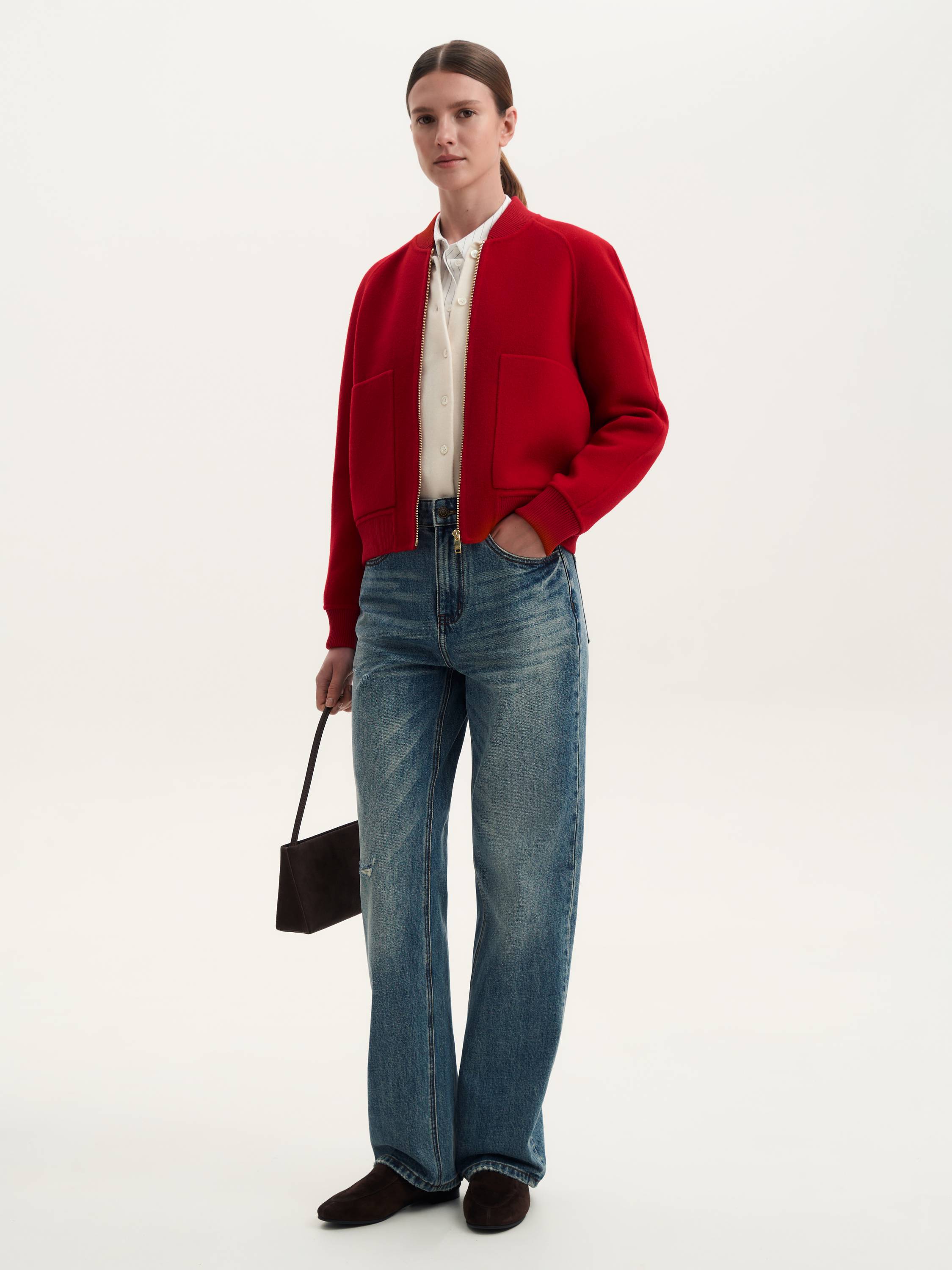 Бомбер из шерсти мериноса — сочетание современного стиля и премиального комфорта. Натуральная шерсть делает модель теплой, легкой и приятной на ощупь, а лаконичный силуэт подчеркивает универсальность дизайна. Рукава реглан обеспечивают свободу движений, трикотажная отделка манжет и воротника добавляет комфорт, а молния-застежка делает модель практичной для повседневной носки. Накладные карманы завершают образ, привнося в него баланс функциональности и минимализма. Этот бомбер станет стильной альтернативой классическим курткам и гармонично впишется в любой гардероб.