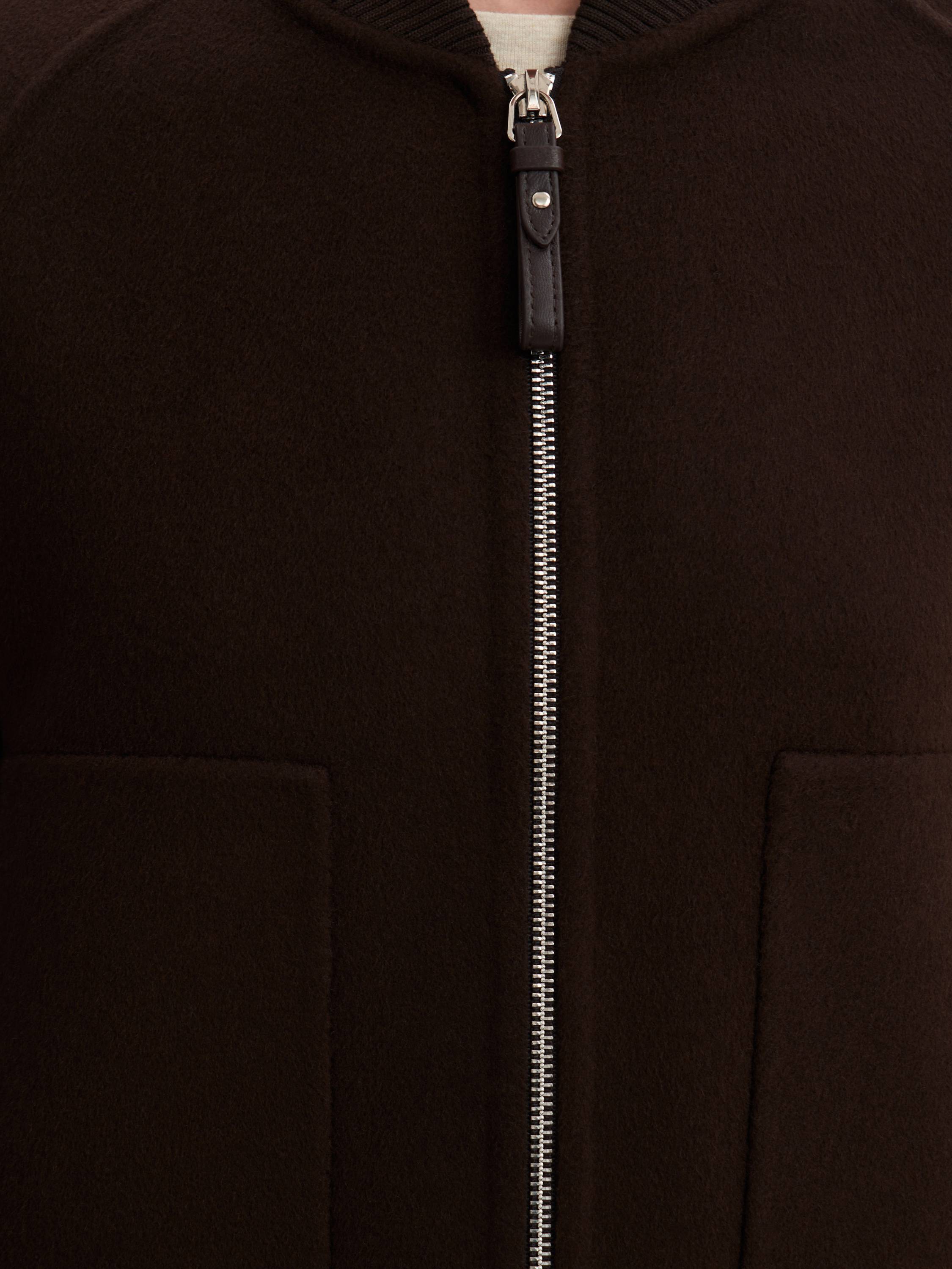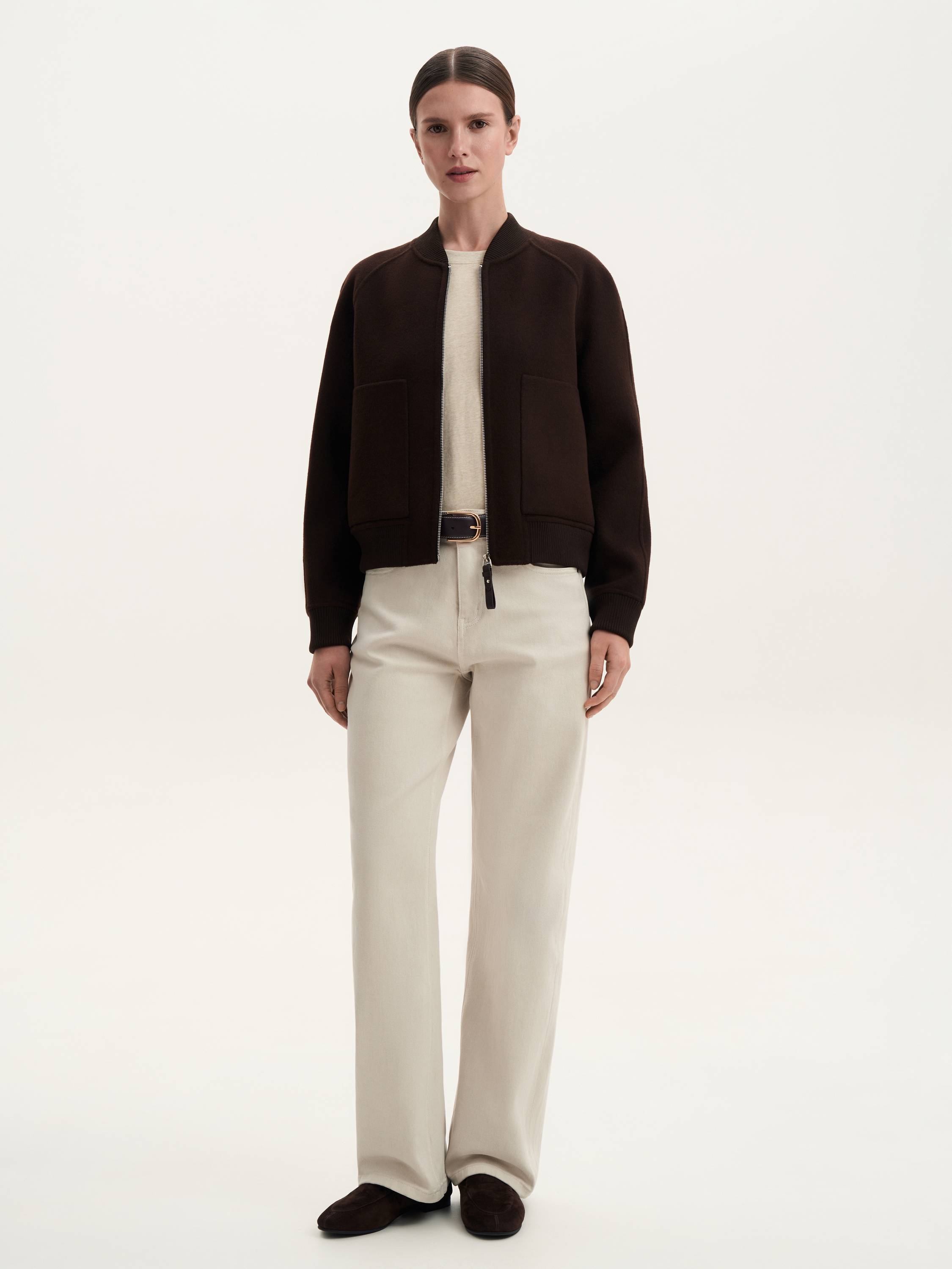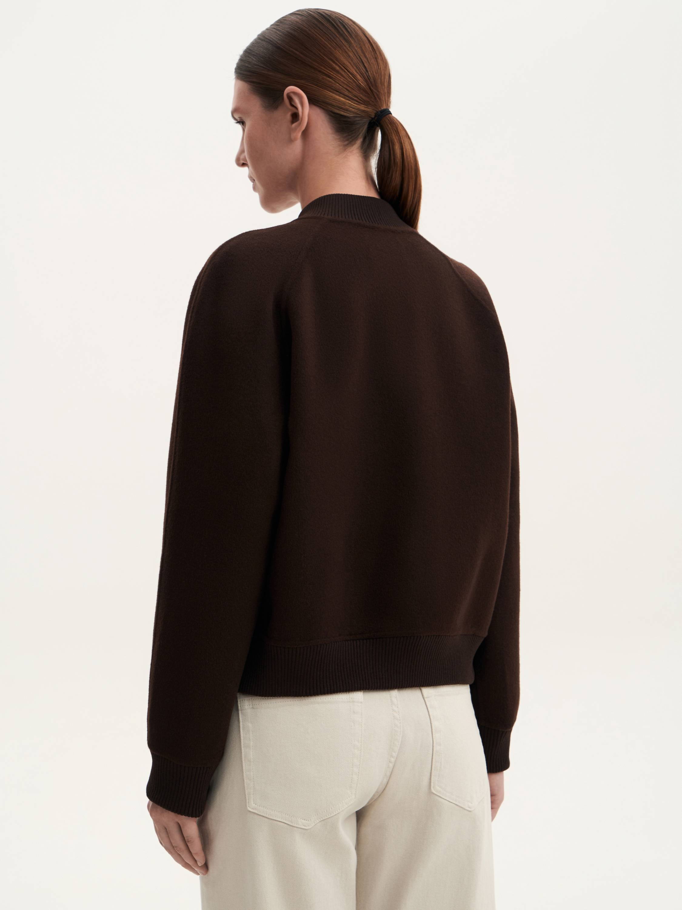 Бомбер из шерсти мериноса — сочетание современного стиля и премиального комфорта. Натуральная шерсть делает модель теплой, легкой и приятной на ощупь, а лаконичный силуэт подчеркивает универсальность дизайна. Рукава реглан обеспечивают свободу движений, трикотажная отделка манжет и воротника добавляет комфорт, а молния-застежка делает модель практичной для повседневной носки. Накладные карманы завершают образ, привнося в него баланс функциональности и минимализма. Этот бомбер станет стильной альтернативой классическим курткам и гармонично впишется в любой гардероб.
