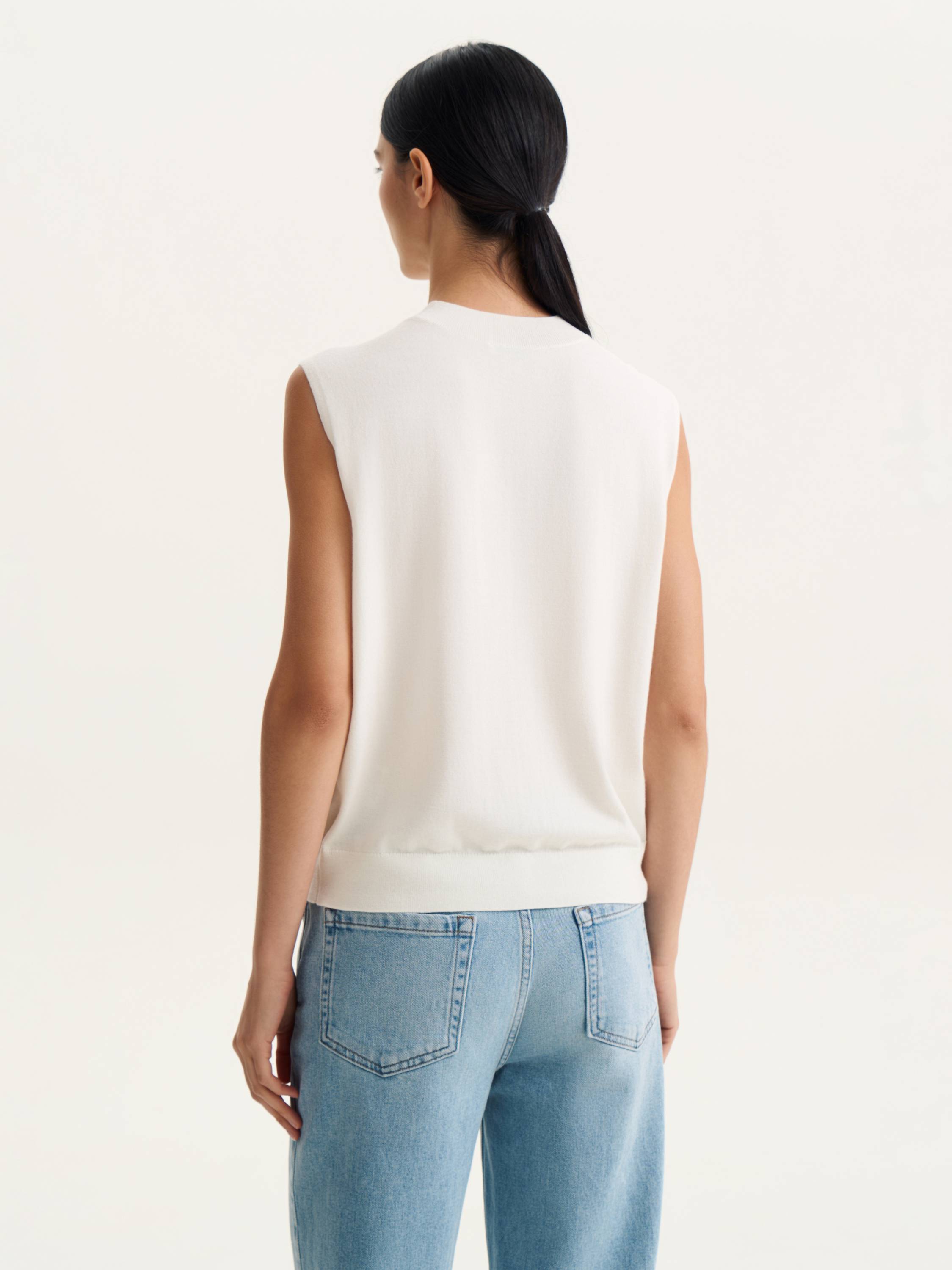 Трикотажный топ из шерсти мериноса – воплощение утонченности и комфорта в одной модели. Натуральная шерсть мериноса гарантирует исключительную мягкость, оптимальную терморегуляцию и долговечность, а легкая трикотажная структура обеспечивает превосходную посадку и свободу движений. Универсальный крой делает топ идеальным для создания как повседневных, так и более изысканных образов. Благодаря высокому качеству материала, этот топ станет незаменимой деталью гардероба, подчеркивающей индивидуальность и стиль. Он легко комбинируется с различными элементами гардероба, открывая широкие возможности для создания оригинальных и элегантных аутфитов.