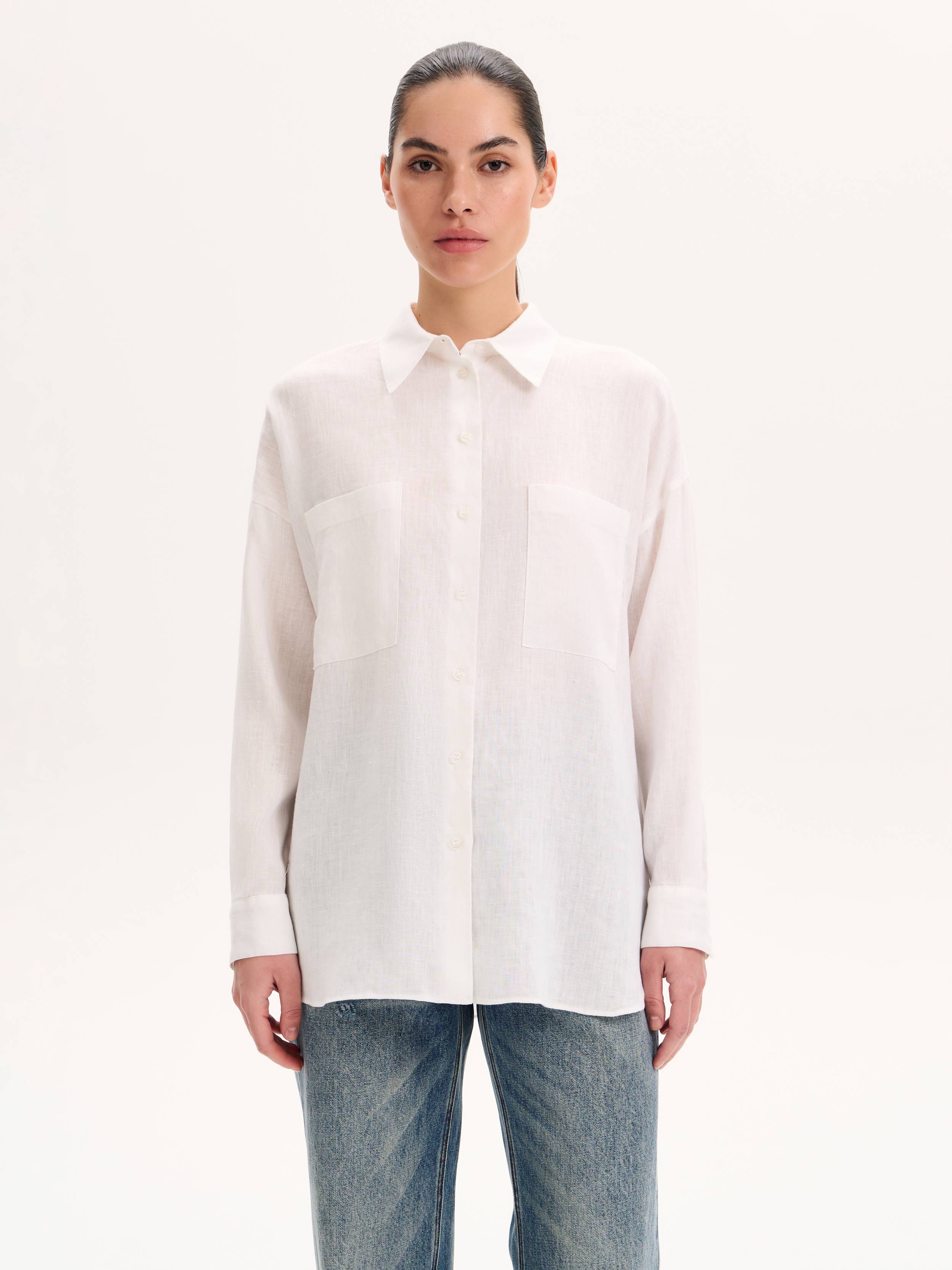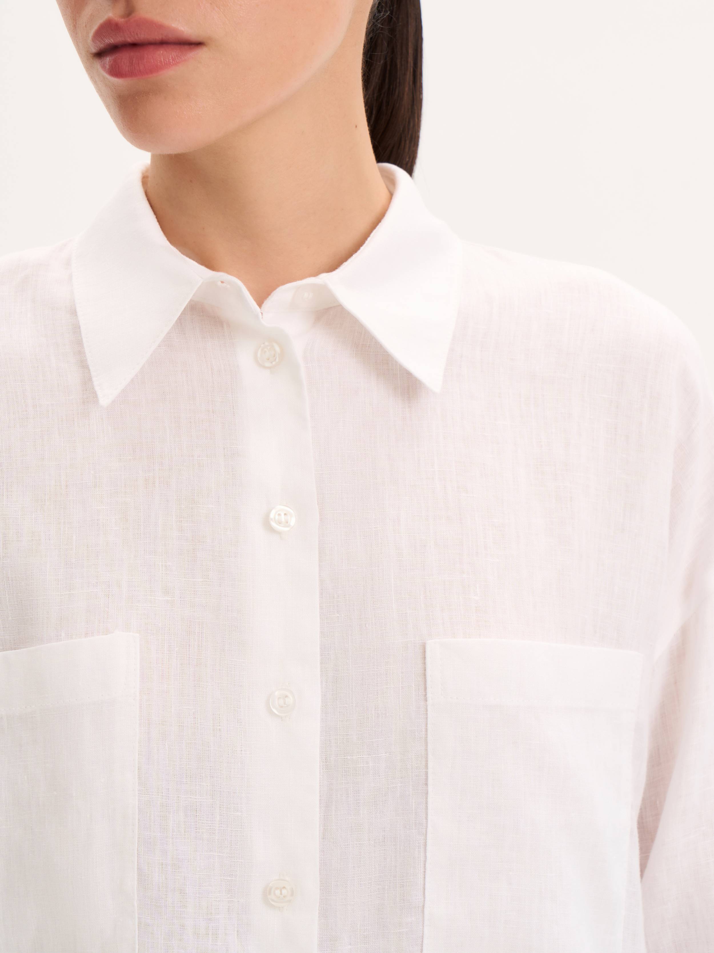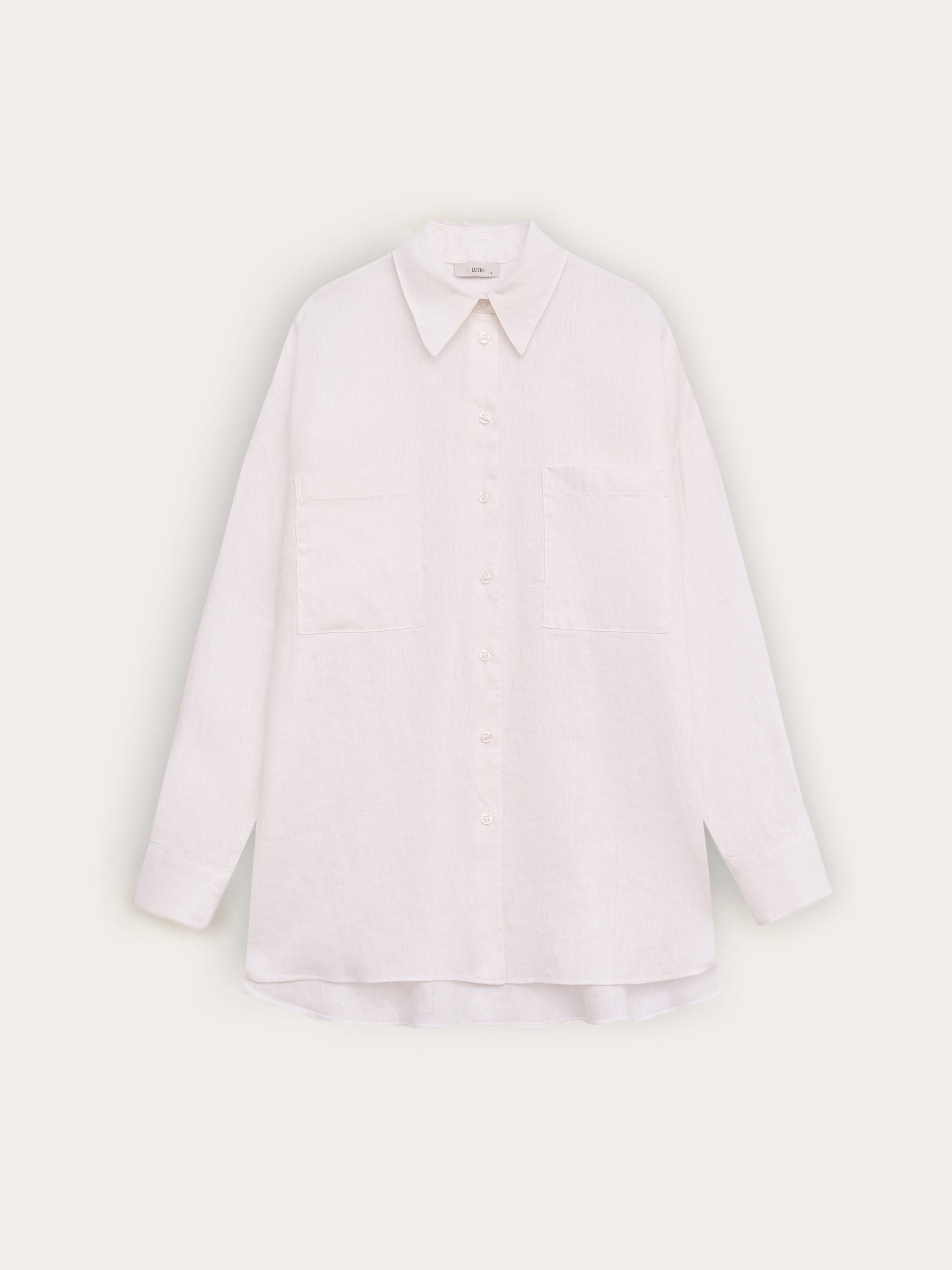 Льняная рубашка свободного силуэта с двумя нагрудными карманами — лаконичная, но выразительная база летнего гардероба. Натуральный лен обеспечивает приятную прохладу в жаркую погоду, позволяя коже дышать, а сдержанный дизайн делает модель универсальной. Классический воротник и ровная планка на пуговицах придают образу собранность, в то время как свободная посадка и удлиненная спинка поддерживают актуальный расслабленный стиль. Носите рубашку навыпуск или заправленной — в зависимости от настроения и сценария.