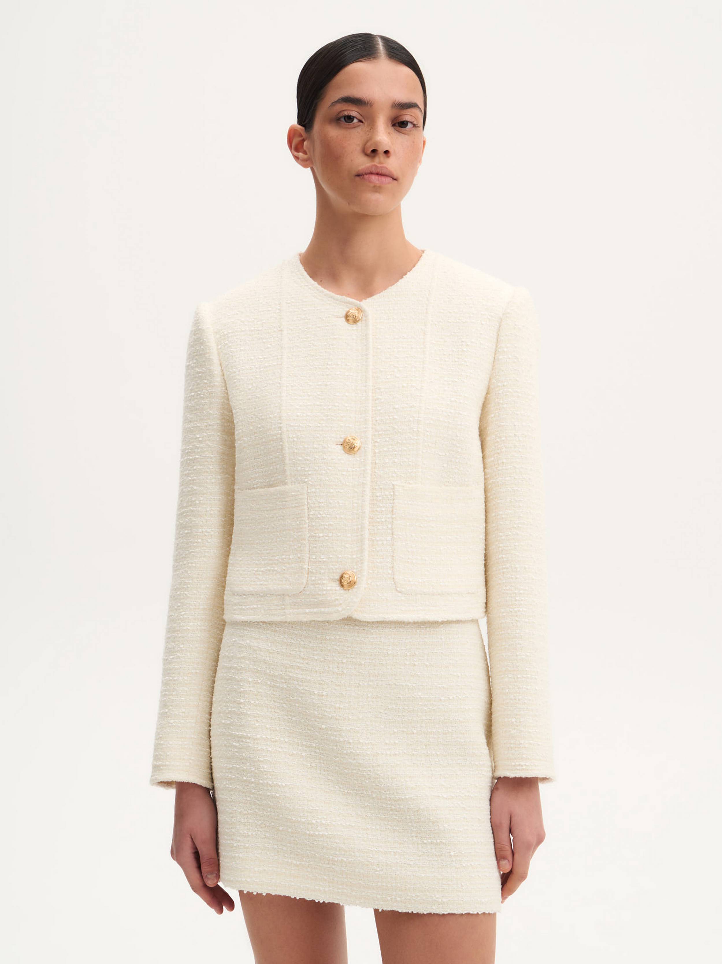 Лаконичная модель с акцентными деталями. Прямой силуэт создает аккуратный и собранный образ, а мягкая текстура ткани обеспечивает комфорт в носке. Накладные карманы с четкими линиями придают жакету выразительность и добавляют практичности. Крупные пуговицы подчеркивают геометрию кроя и становятся стильным акцентом. Длина до линии талии делает модель универсальной — жакет гармонично сочетается с брюками с высокой посадкой, юбками и платьями, создавая современные силуэты.