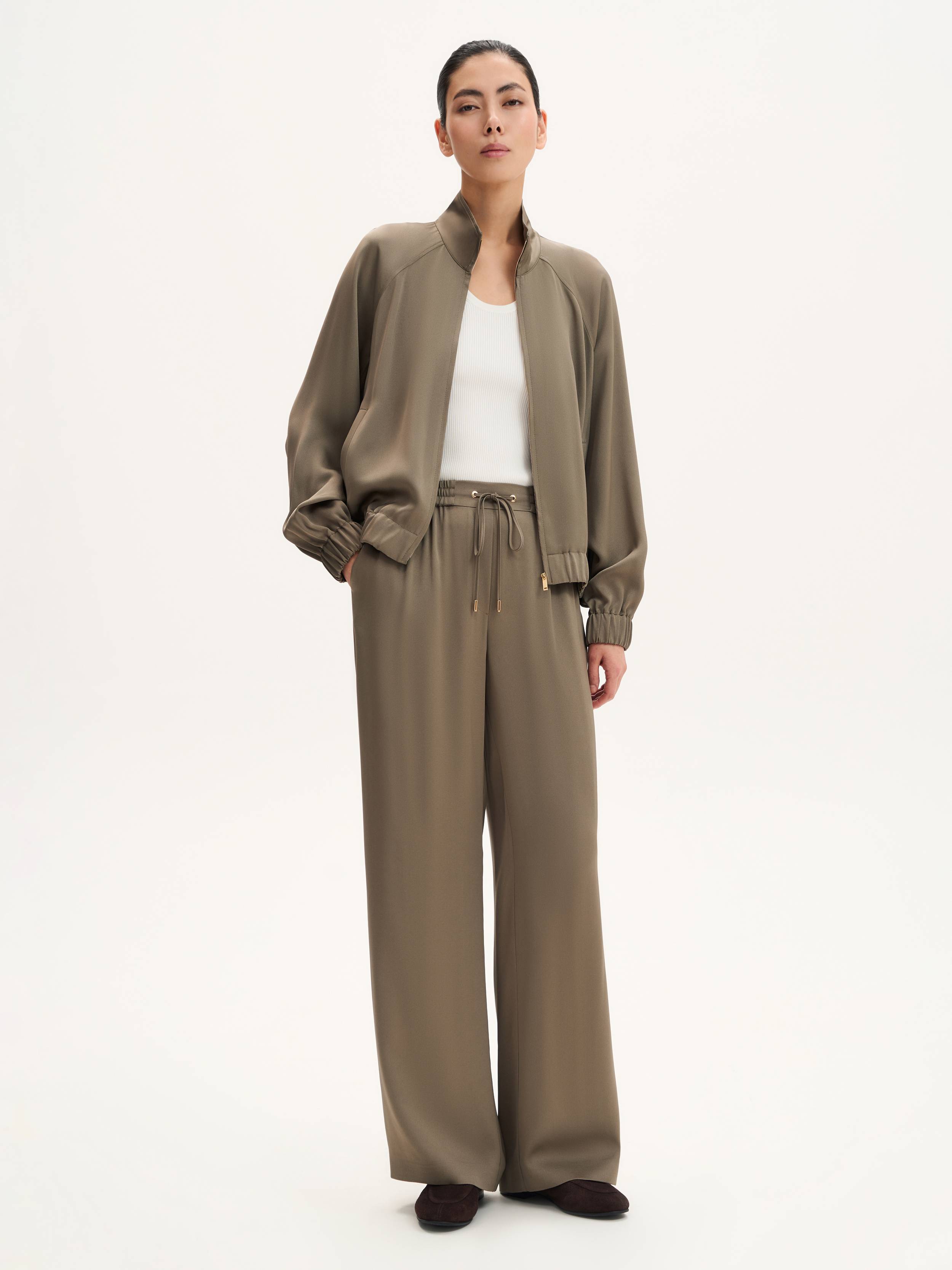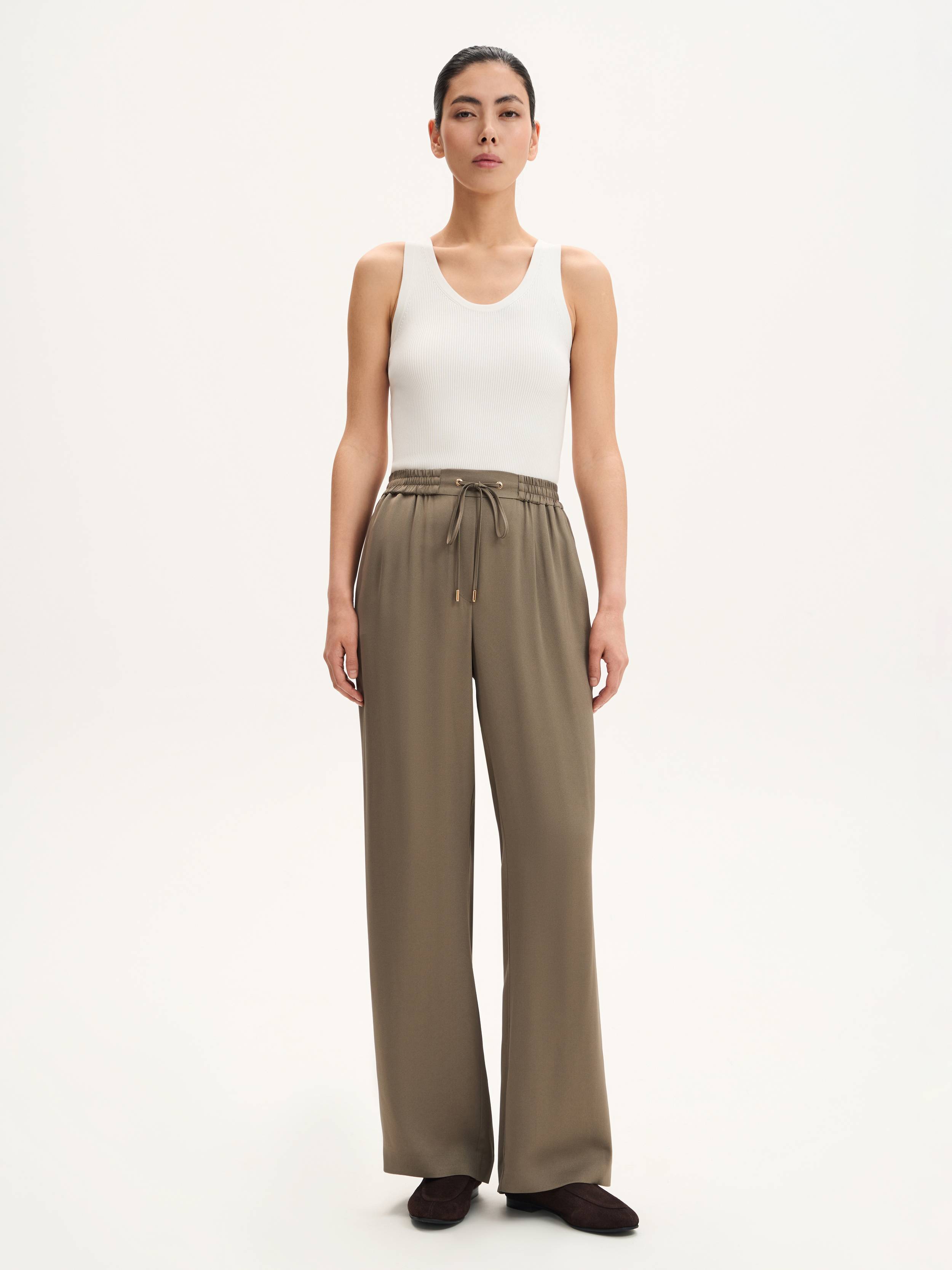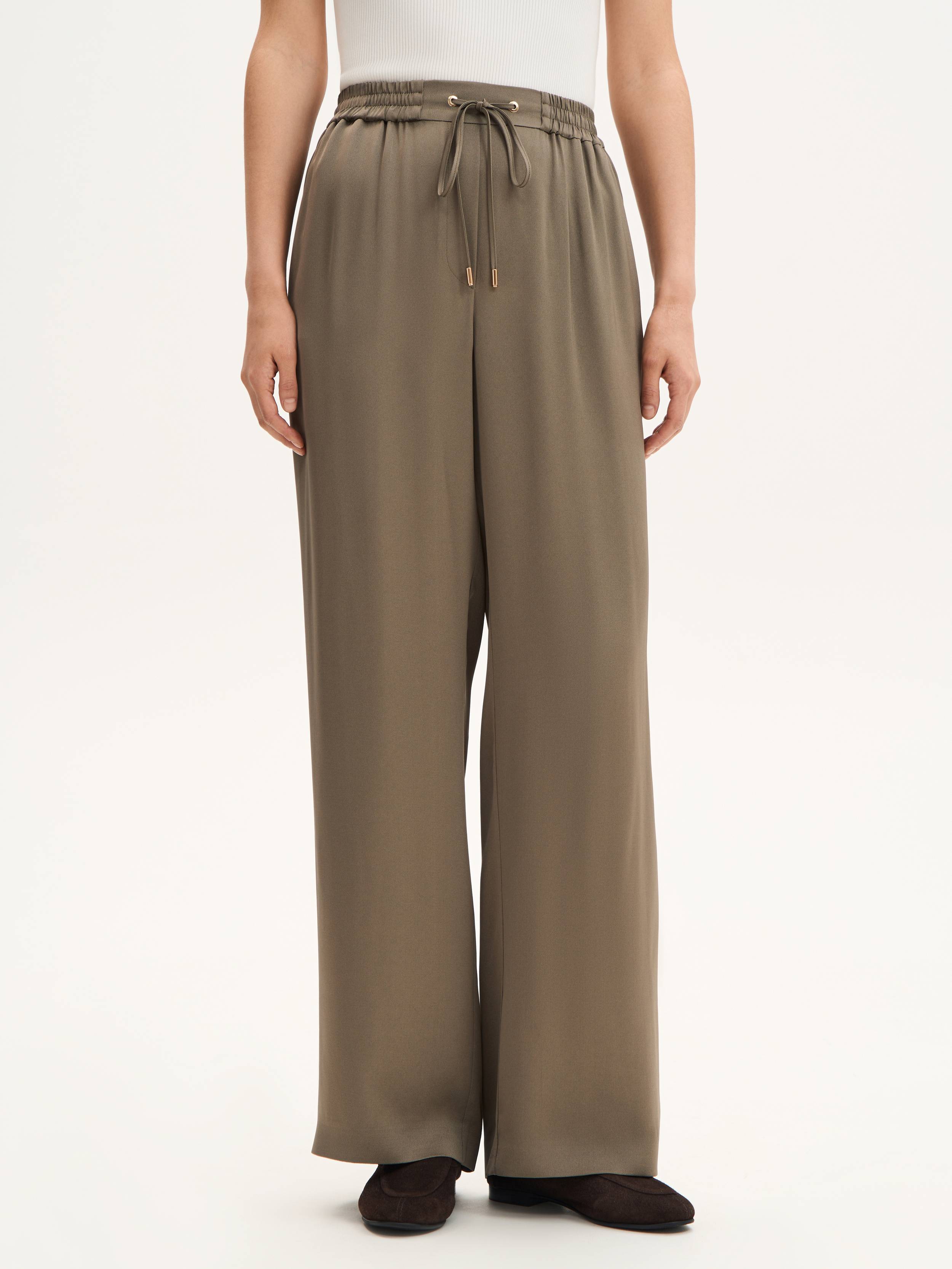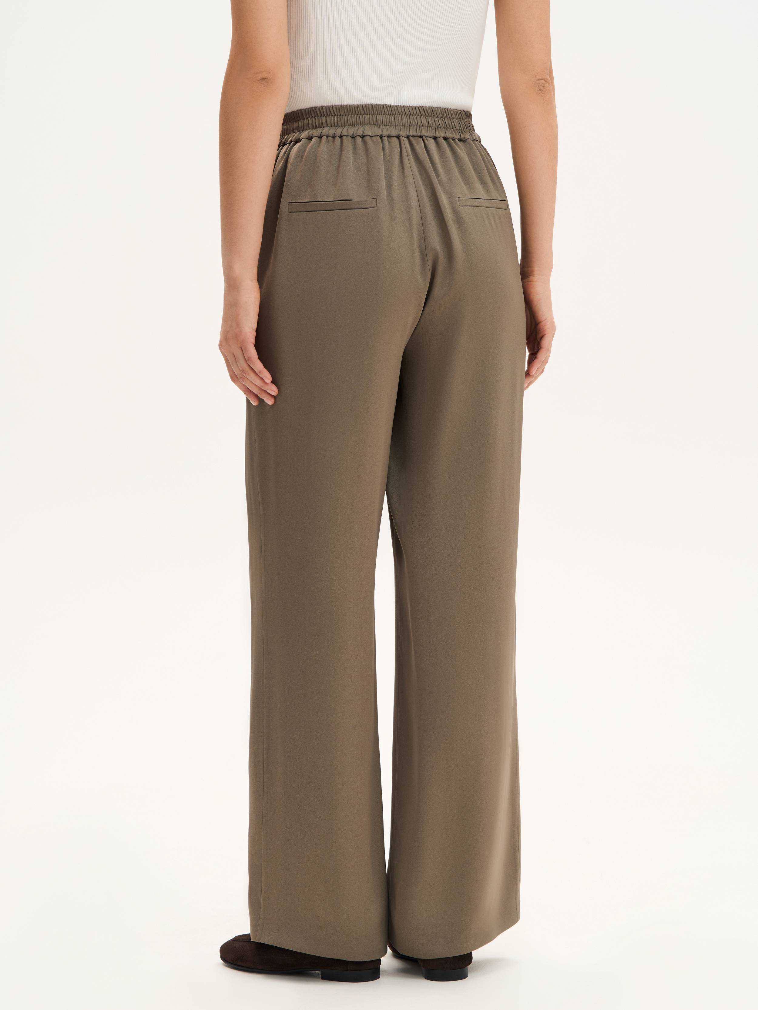 Брюки, в которых минимализм встречается с непринужденностью. Эластичный пояс с кулиской и люверсами формирует мягкую посадку, не сковывая движения, а прямой свободный силуэт визуально вытягивает линию ног. Материал сочетает в себе вискозу и ацетат — два волокна с разными, но дополняющими друг друга свойствами: вискоза делает ткань воздухопроницаемой и приятной на ощупь, ацетат добавляет мягкий перелив и устойчивость к сминанию. Такая модель легко адаптируется под ритм дня: надевайте брюки с топом, футболкой или рубашкой — и создавайте образы, которые не требуют усилий, но всегда выглядят собранно.