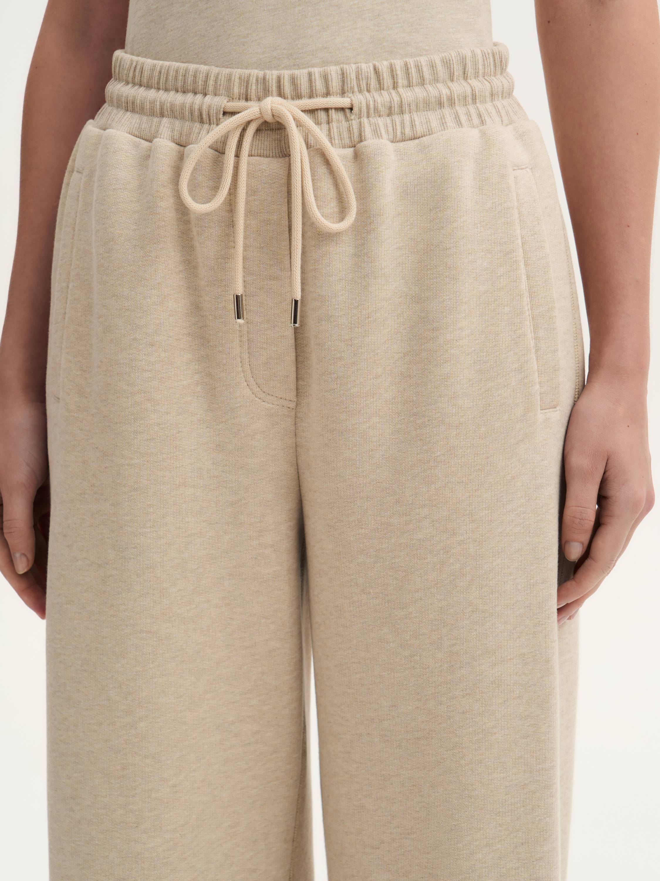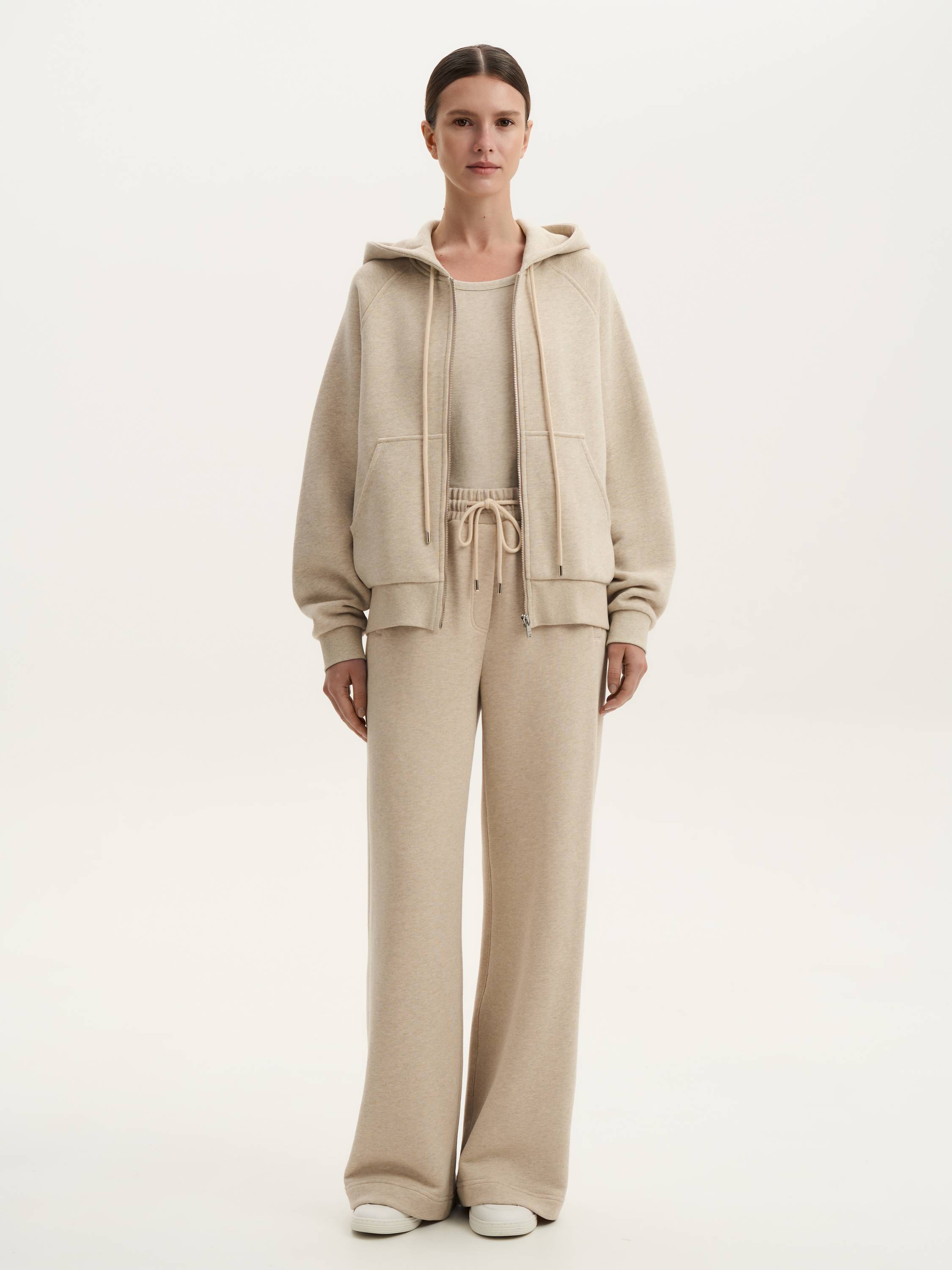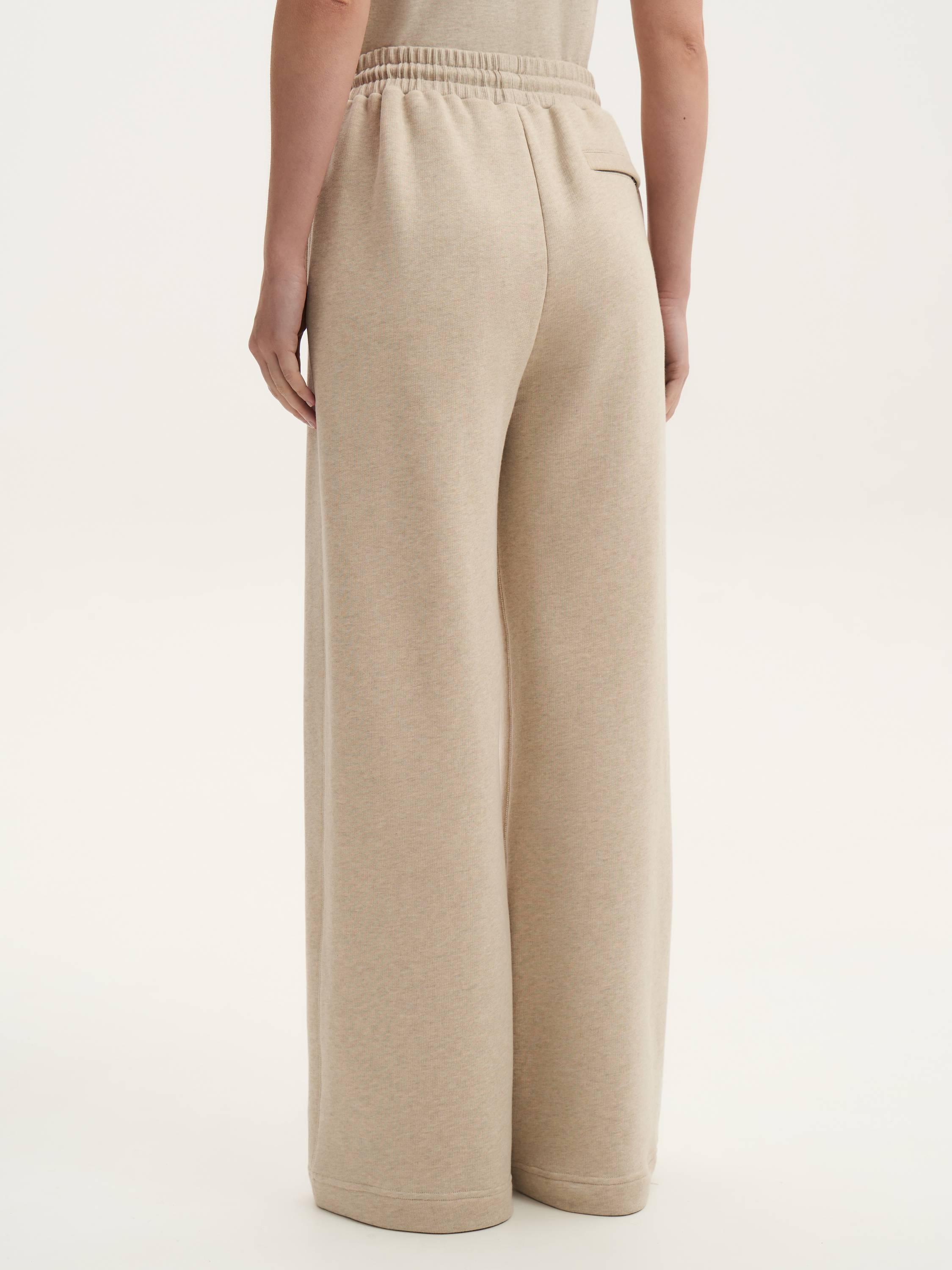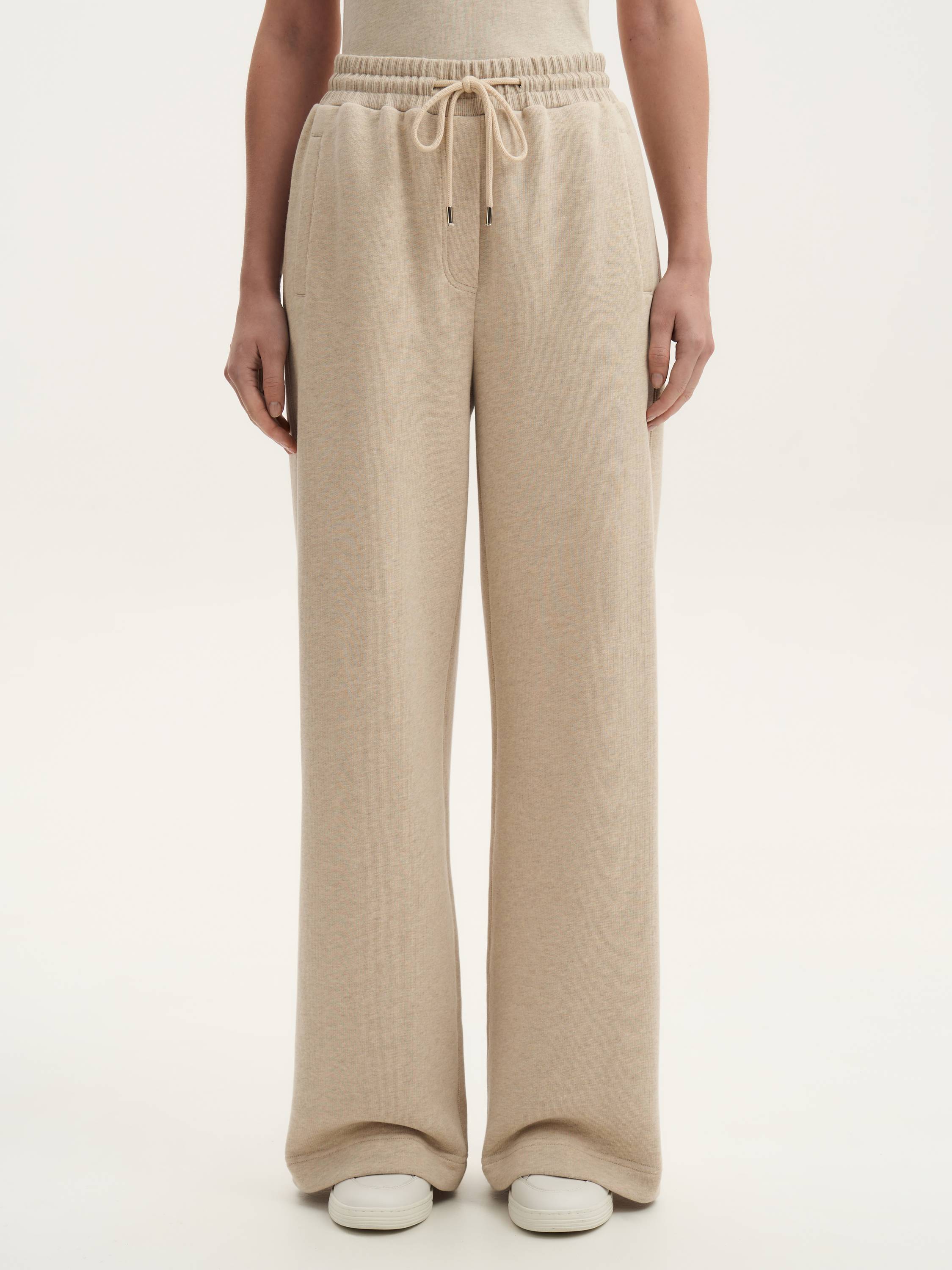 Трикотажные брюки из натурального хлопка — комфорт в каждой детали. Мягкий, дышащий материал приятно прилегает к коже, обеспечивая свободу движений и уют в течение дня. Эластичная структура трикотажа помогает сохранить форму, а расслабленный крой с прямыми линиями создает гармоничный силуэт. Завышенная посадка визуально удлиняет ноги, а лаконичный пояс добавляет завершенность образу. Универсальная модель, которая легко впишется как в расслабленный повседневный стиль, так и в более структурированные образы с жакетом или объемным трикотажем.