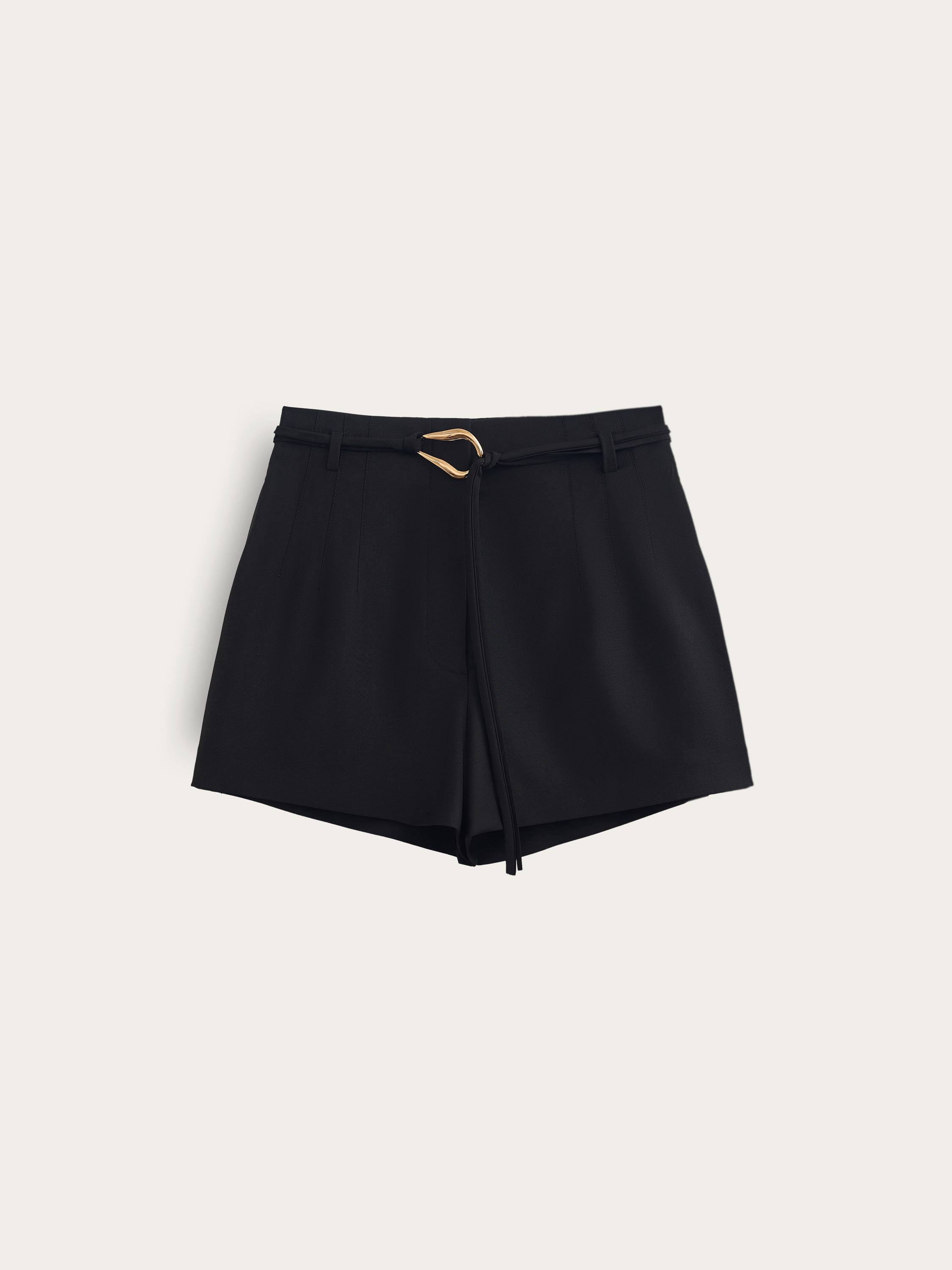 Шорты из тонкой шерсти — лаконичная модель с архитектурным акцентом. Прямой силуэт с высокой посадкой подчеркивает талию и визуально вытягивает силуэт, а мягкие складки и деликатные вытачки добавляют линии легкости. Деталь, которая сразу привлекает внимание, — декоративный ремень с фигурной пряжкой: он расставляет акценты и добавляет образу современное звучание. Благодаря натуральному составу ткань мягко ложится по телу, при этом сохраняет форму и комфорт даже в течение активного дня. Шорты легко комбинируются с топами, рубашками и жакетами — для комплектов в духе современного минимализма.