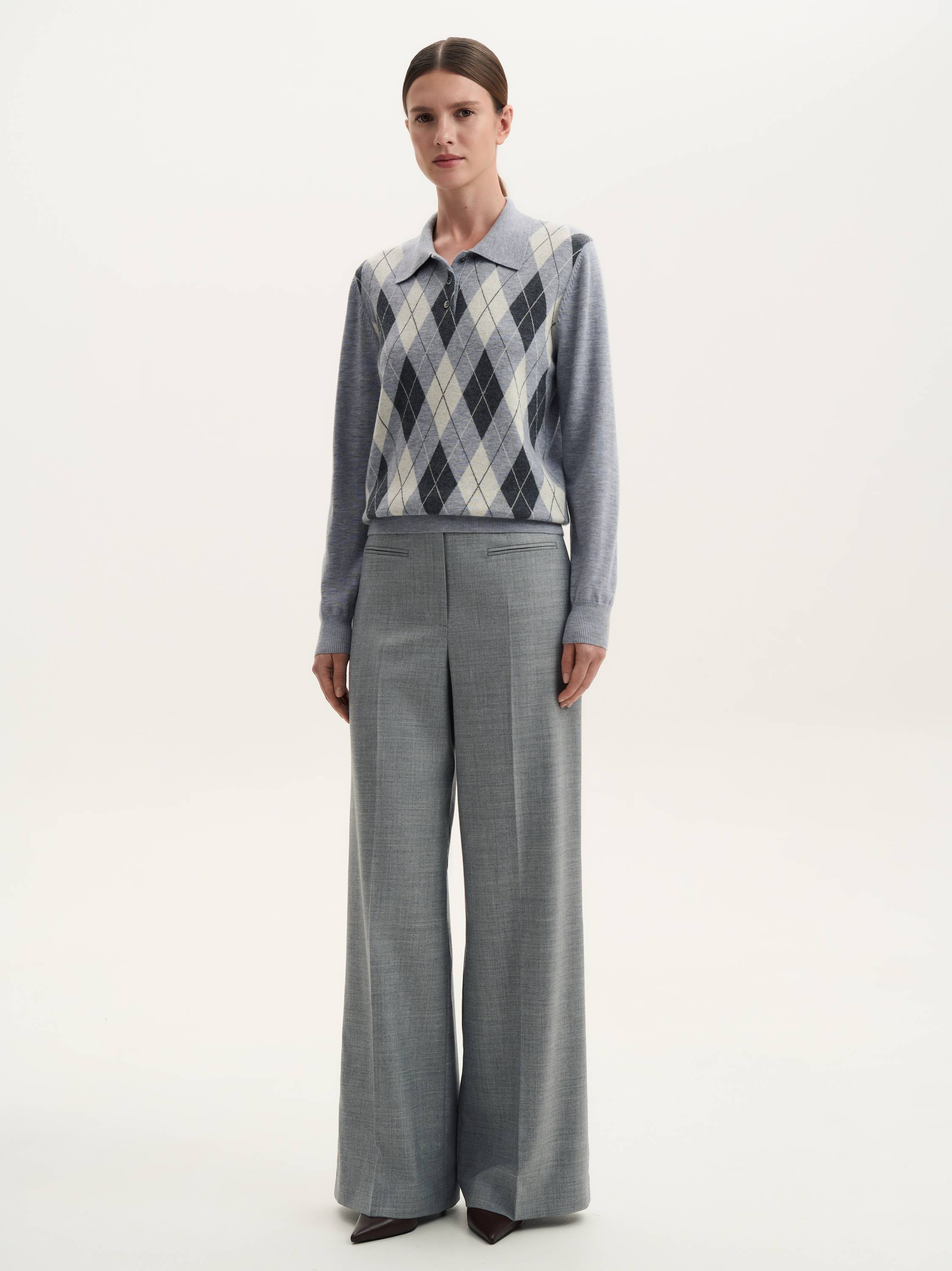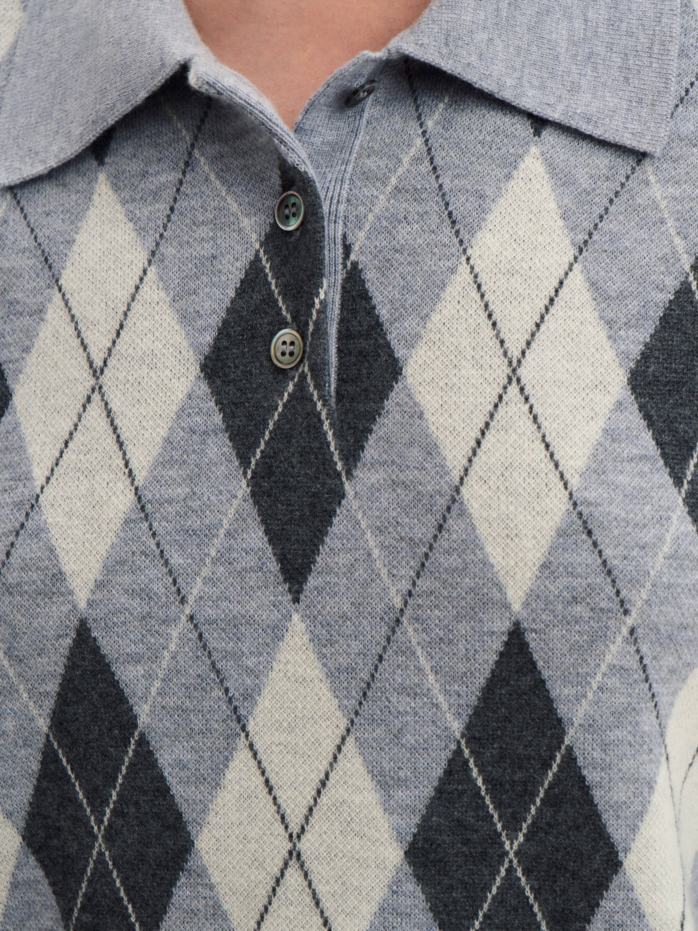 Джемпер из шерсти мериноса — сочетание уюта, элегантности и безупречного качества. Натуральная шерсть мериноса обеспечивает мягкость, тепло и комфорт, оставаясь легкой и дышащей в течение всего дня. Классический ромбовидный узор аргайл придает модели особый характер, объединяя в себе традиции британского стиля и современные тренды. Четкие линии геометрического рисунка создают выразительный визуальный эффект, делая джемпер стильным акцентом в образе. Прямой крой и аккуратная посадка обеспечивают свободу движений, а нейтральный серый оттенок делает модель универсальной. Этот джемпер гармонично сочетается как с классическими брюками и юбками, так и с повседневным денимом, создавая образы с акцентом аристократичности.