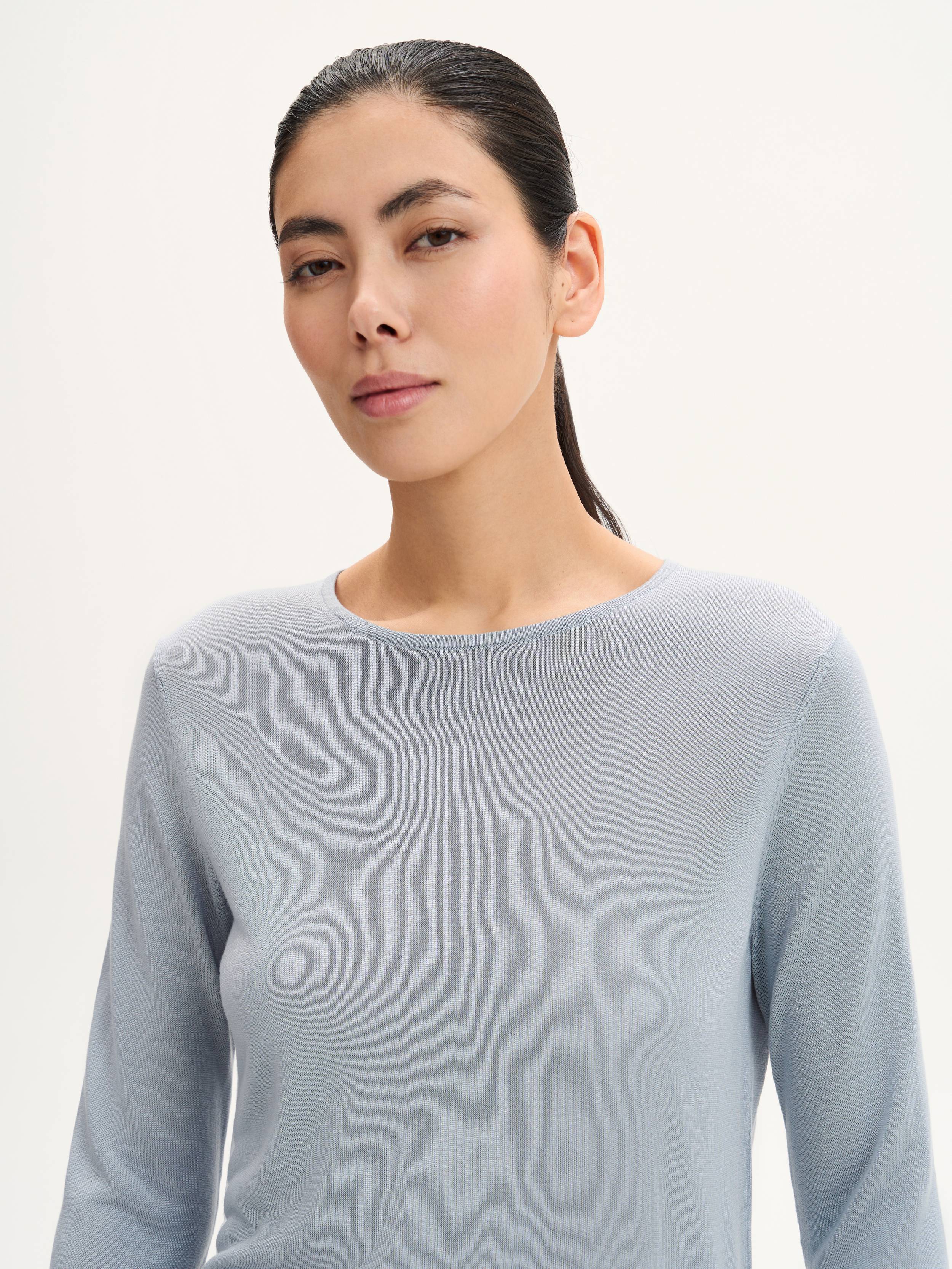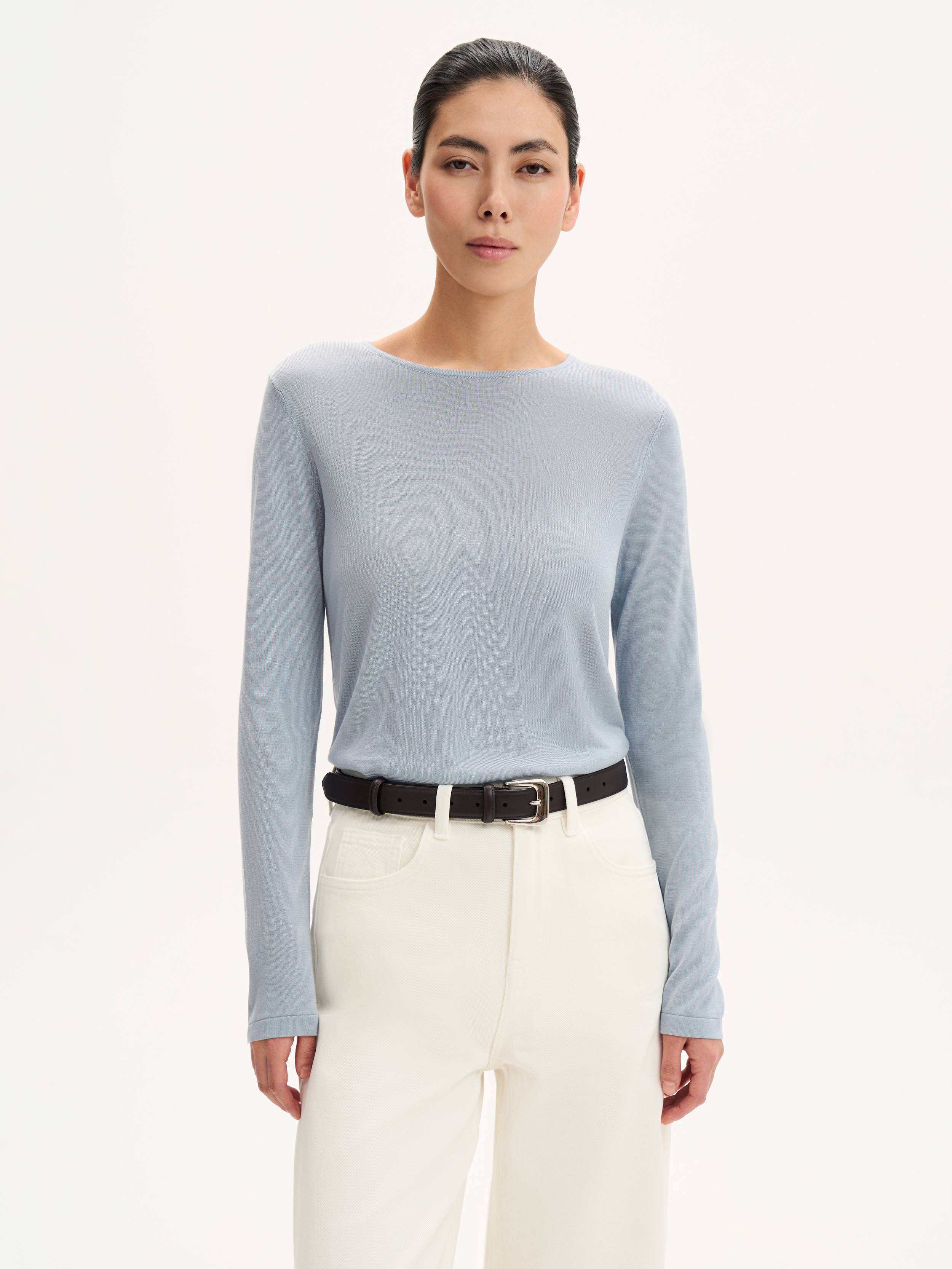 Джемпер с натуральным шелком — утонченность и комфорт в каждой детали. Легкий и мягкий материал с добавлением шелка дарит приятные тактильные ощущения, красиво драпируется и обладает благородным матовым блеском. Дышащая ткань регулирует теплообмен, обеспечивая комфорт в течение дня. Лаконичный крой с аккуратной посадкой делает модель универсальной — джемпер гармонично сочетается с классическими брюками, денимом или юбками, легко адаптируясь к разным стилям.