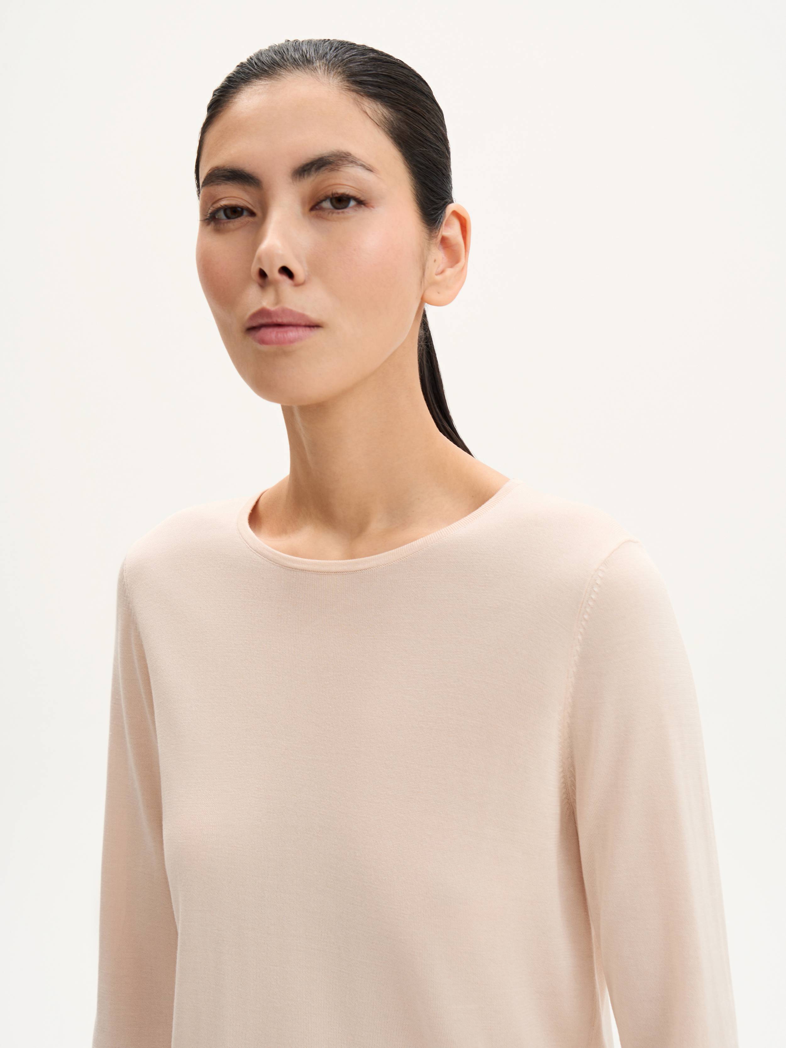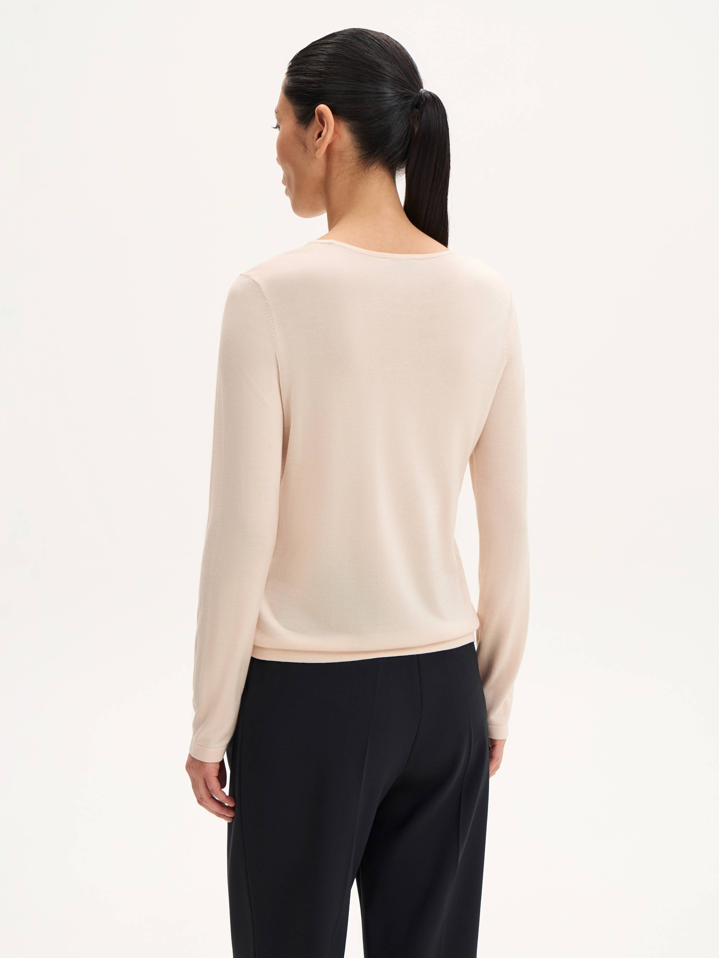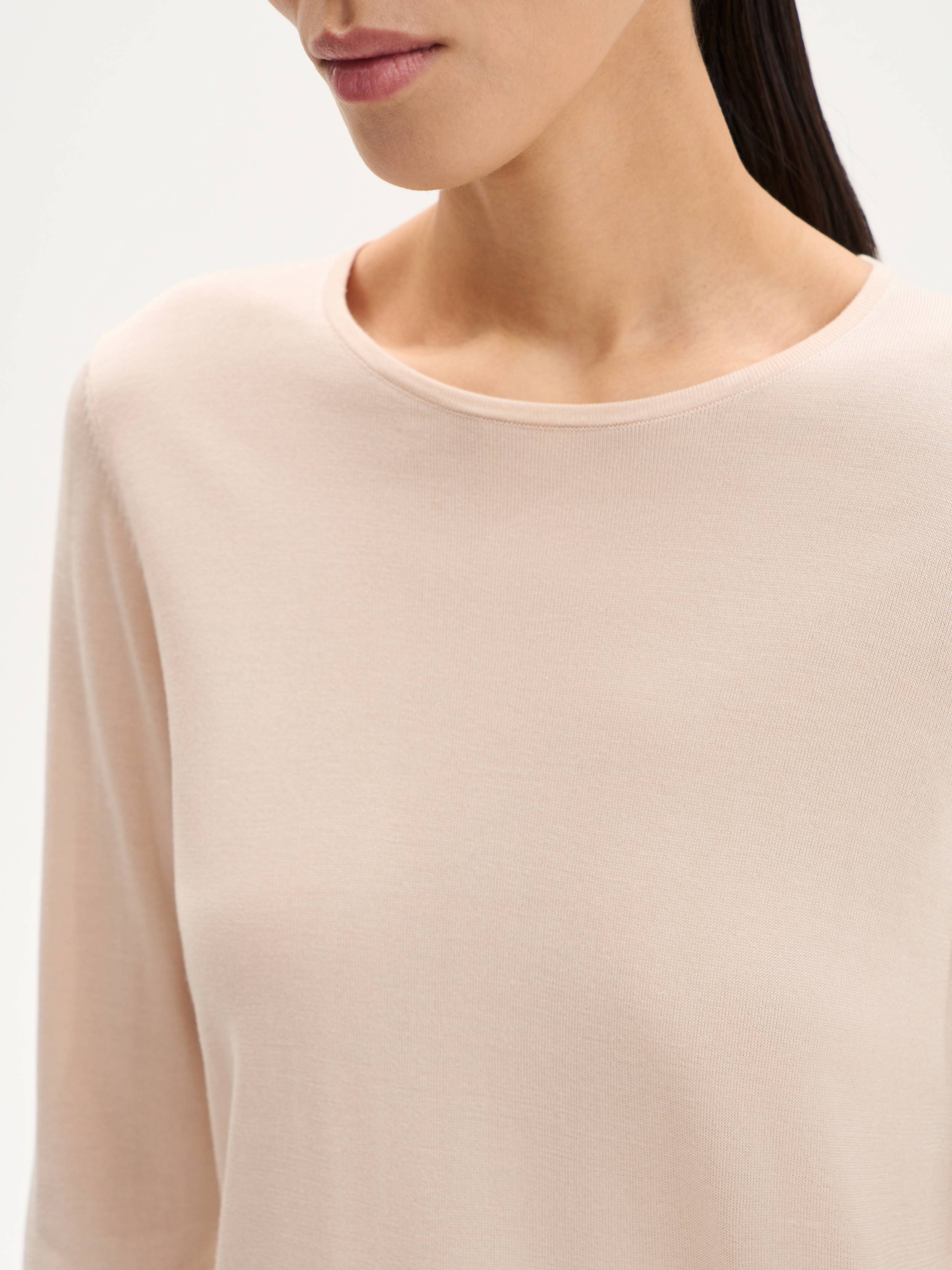 Джемпер с натуральным шелком — утонченность и комфорт в каждой детали. Легкий и мягкий материал с добавлением шелка дарит приятные тактильные ощущения, красиво драпируется и обладает благородным матовым блеском. Дышащая ткань регулирует теплообмен, обеспечивая комфорт в течение дня. Лаконичный крой с аккуратной посадкой делает модель универсальной — джемпер гармонично сочетается с классическими брюками, денимом или юбками, легко адаптируясь к разным стилям.