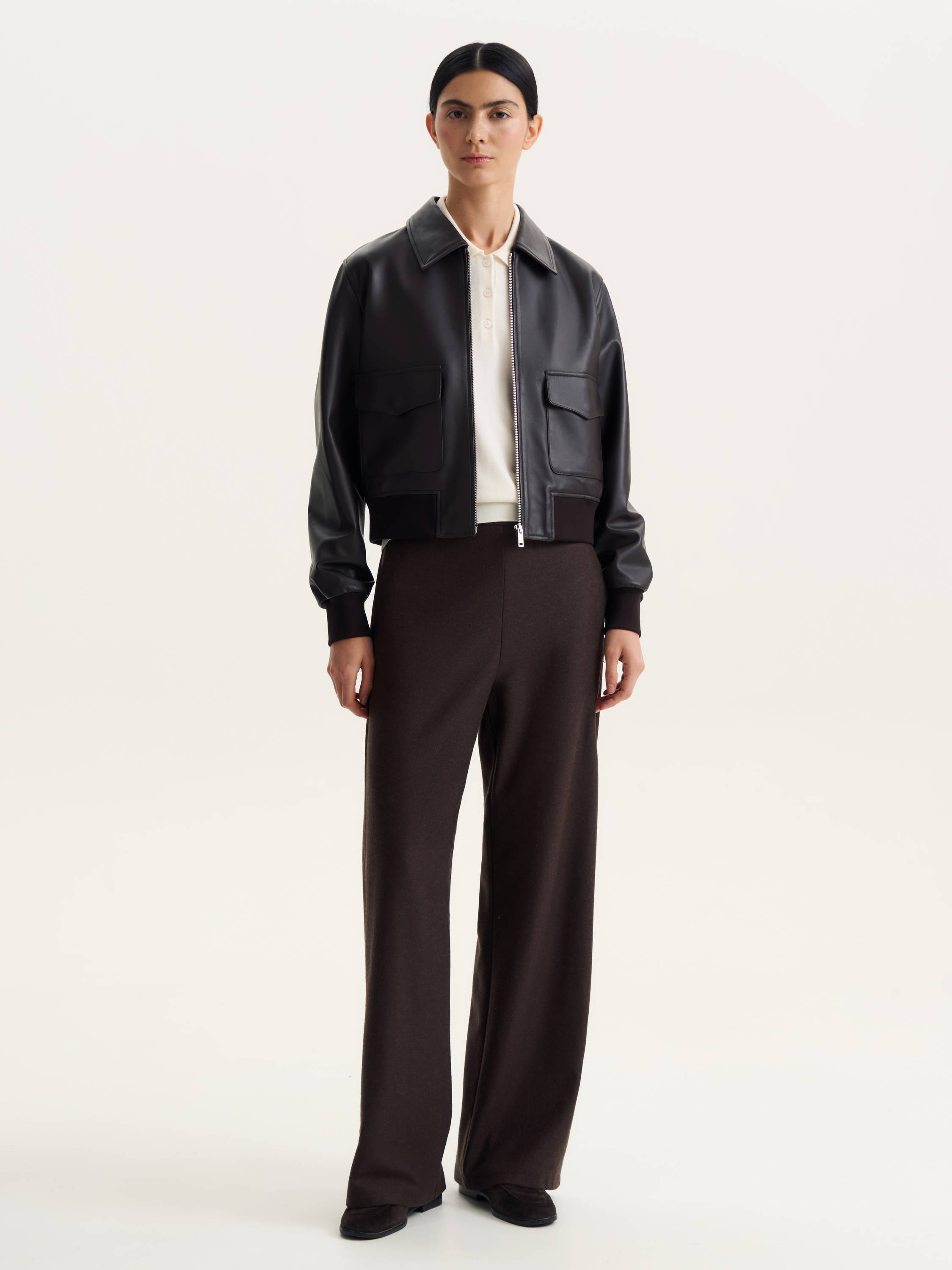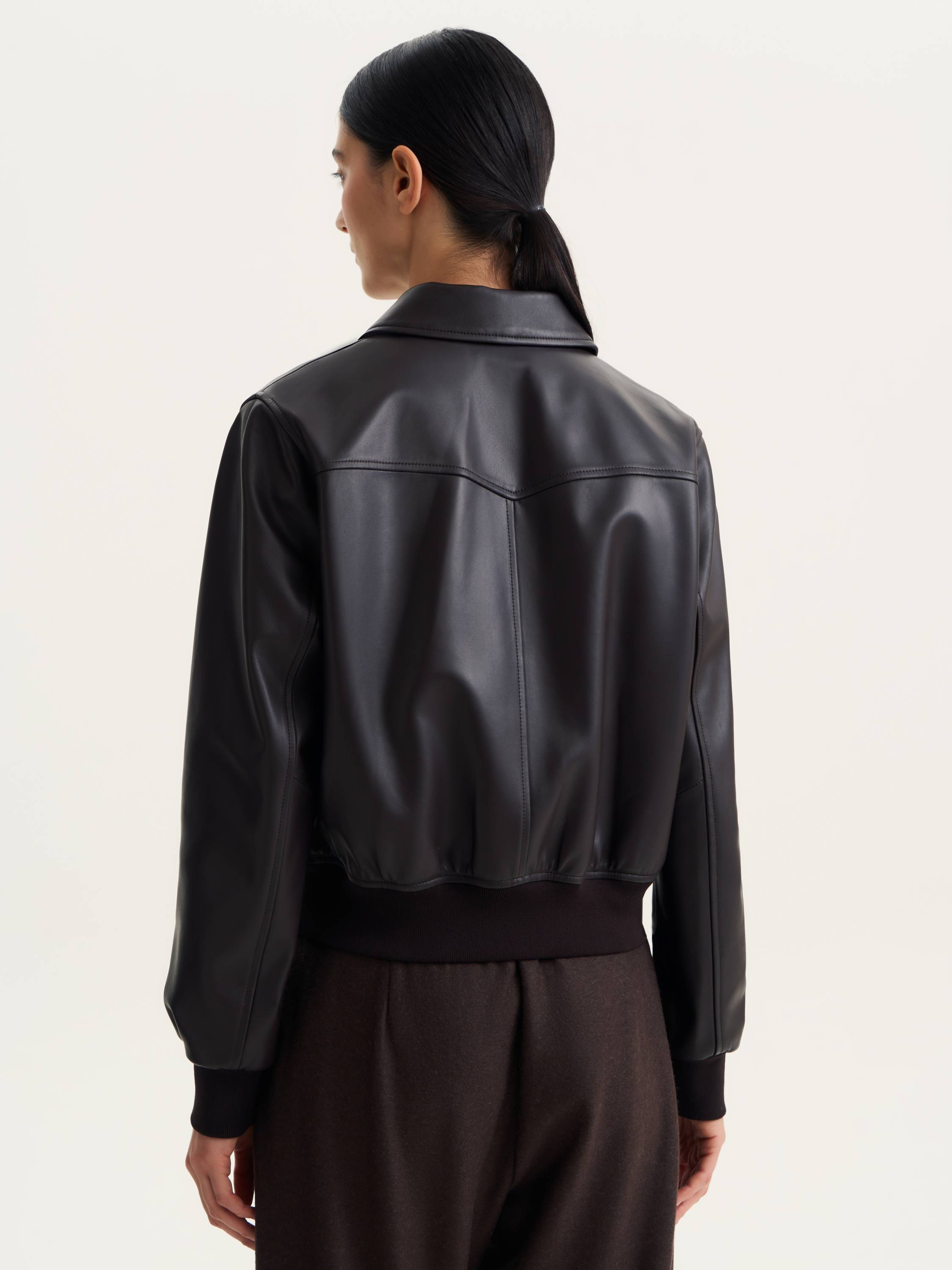 Куртка из натуральной кожи – стильный акцент гардероба, сочетающий актуальный дизайн и практичность. Премиальная кожа с благородной текстурой комфортно прилегает к телу, создавая выразительный силуэт, а четкие линии кроя придают модели современный характер. Минималистичный дизайн делает куртку универсальной: она легко вписывается как в расслабленные повседневные образы с джинсами и трикотажем, так и в более элегантные сочетания с брюками, юбками и классическими рубашками. Функциональные детали, такие как аккуратный воротник и застежка на молнию, завершают образ, делая его лаконичным и собранным. Это инвестиция в стиль, которая останется актуальной на долгие годы.
