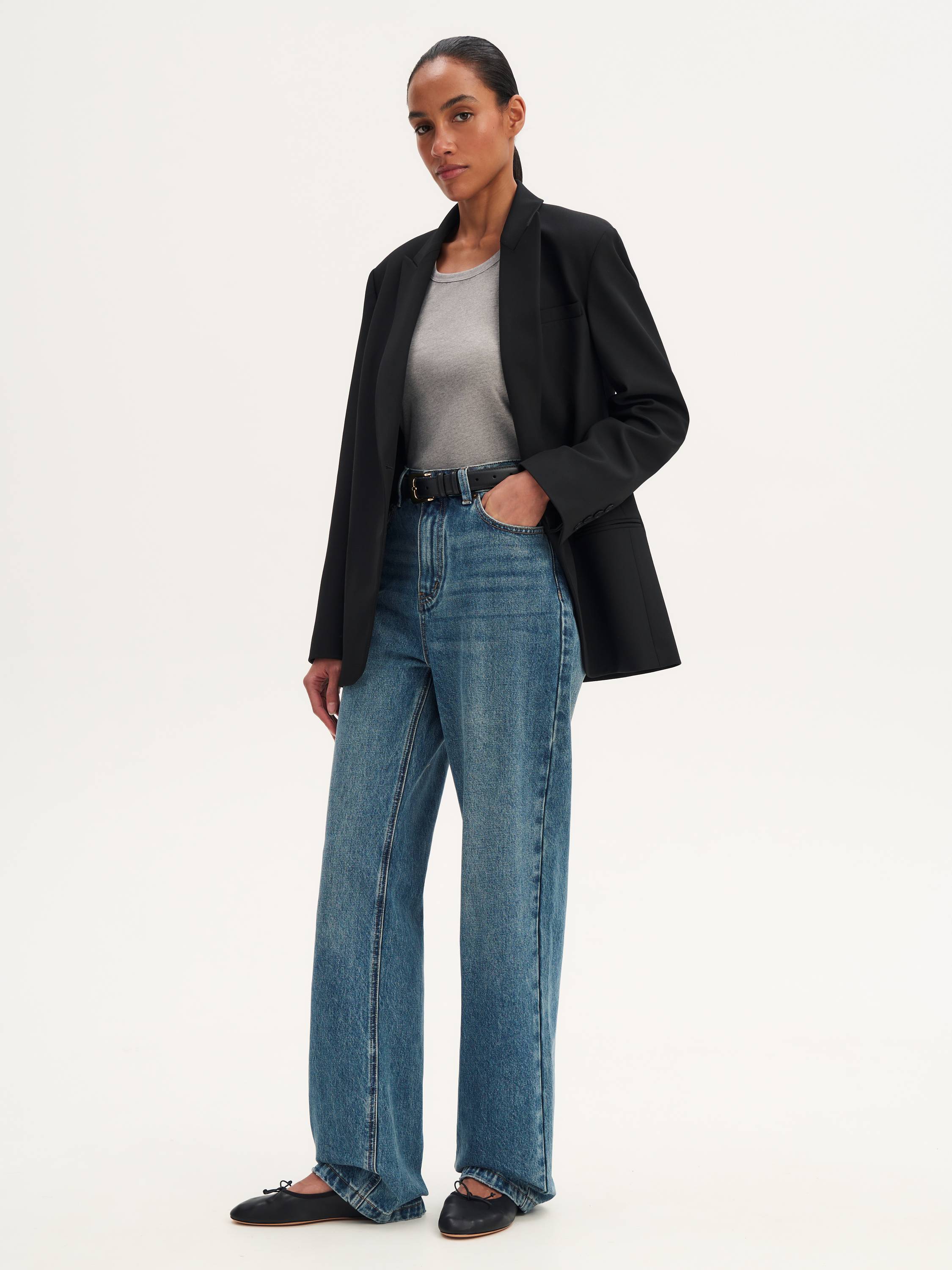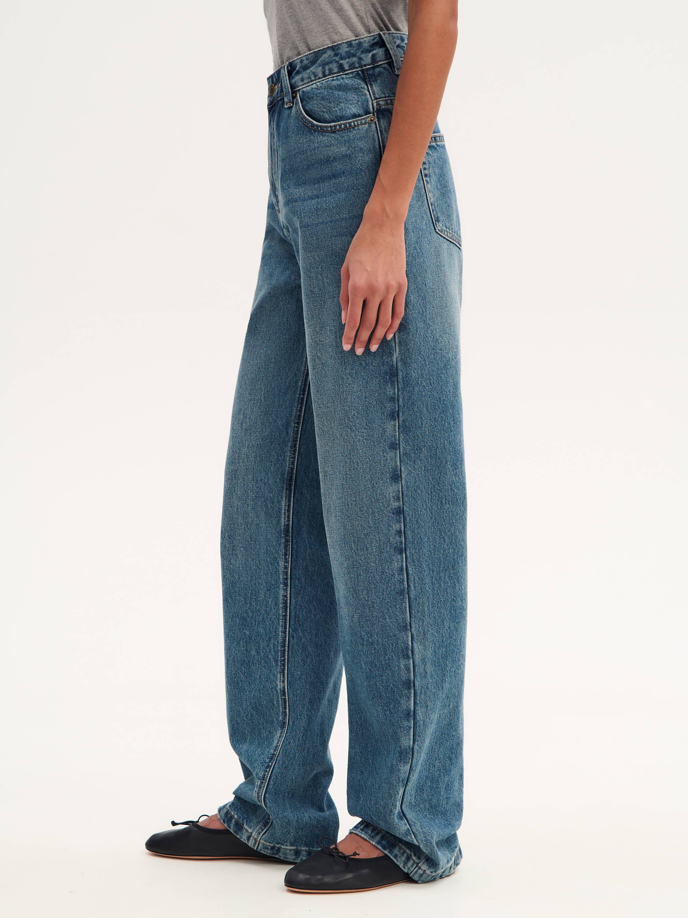 Джинсы, которые создают выразительный силуэт и подчеркивают осанку. Модель с высокой посадкой визуально вытягивает силуэт, придавая образу элегантную расслабленность. Джинсы выполнены из хлопкового денима плотностью 14,5 Oz, который сохраняет форму и обеспечивает комфорт в течение дня. Минималистичный крой делает эту модель универсальной: она легко сочетается как с объемными жакетами и жилетами, так и с лаконичными топами и блузами, создавая стильные комбинации в духе smart casual.
