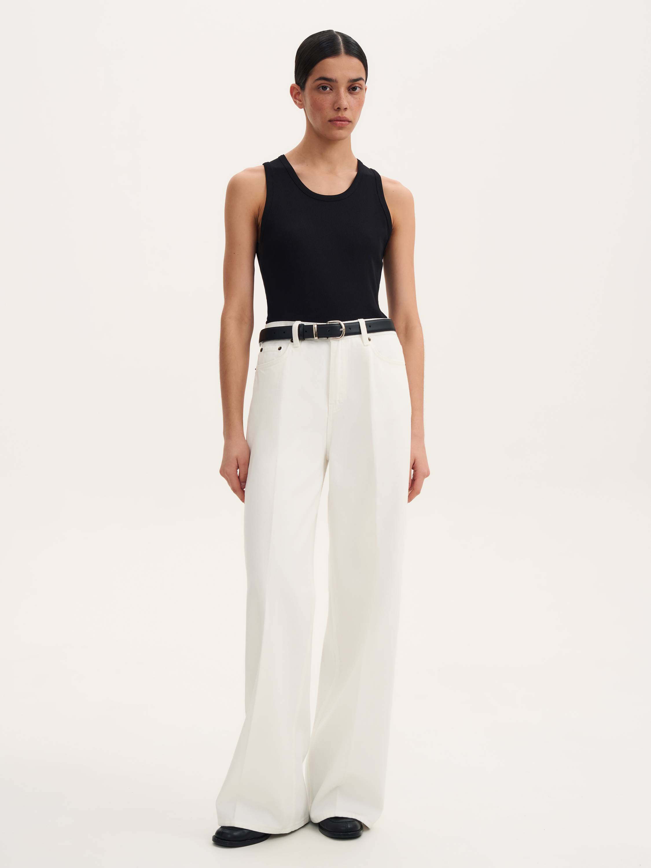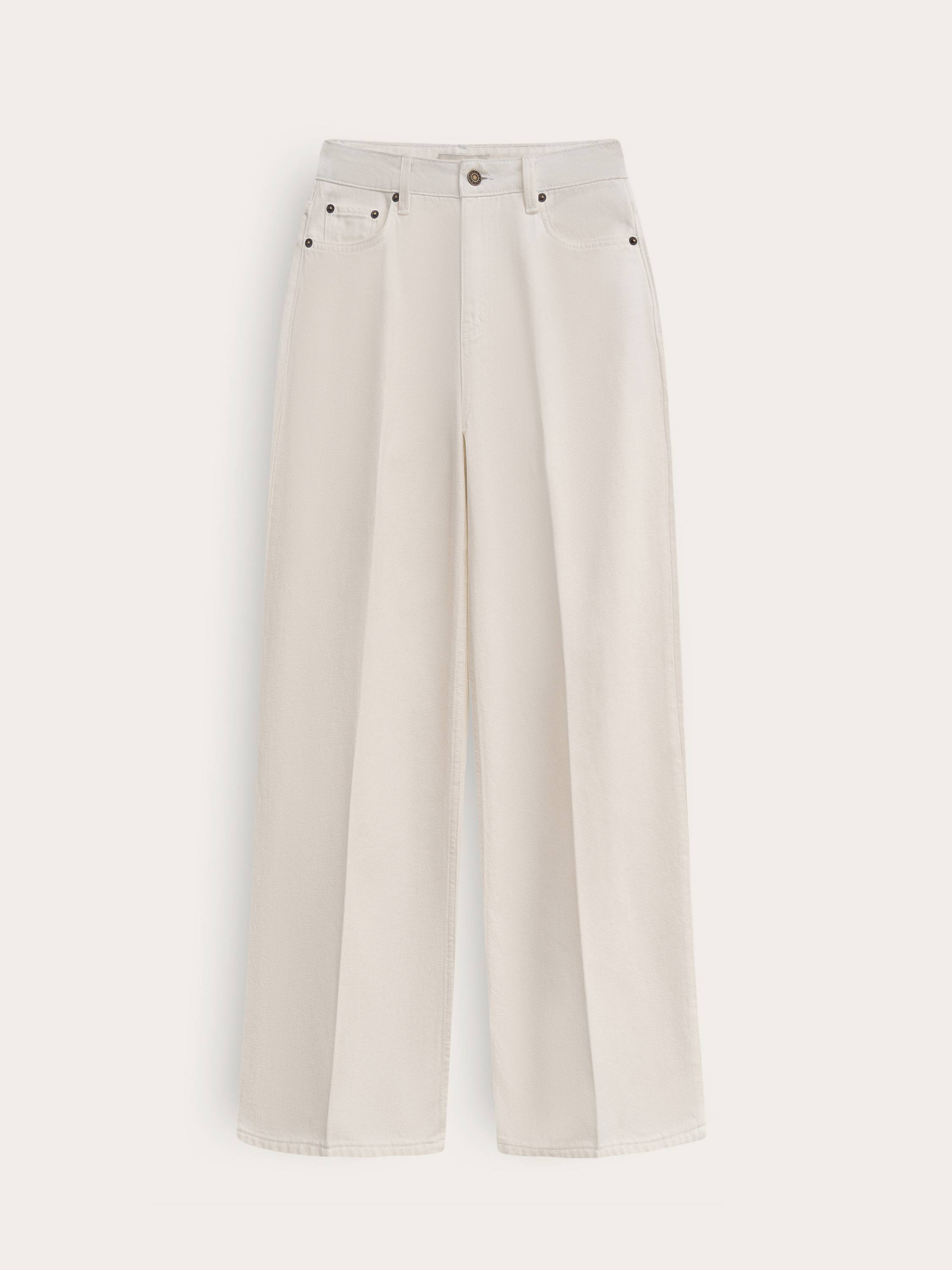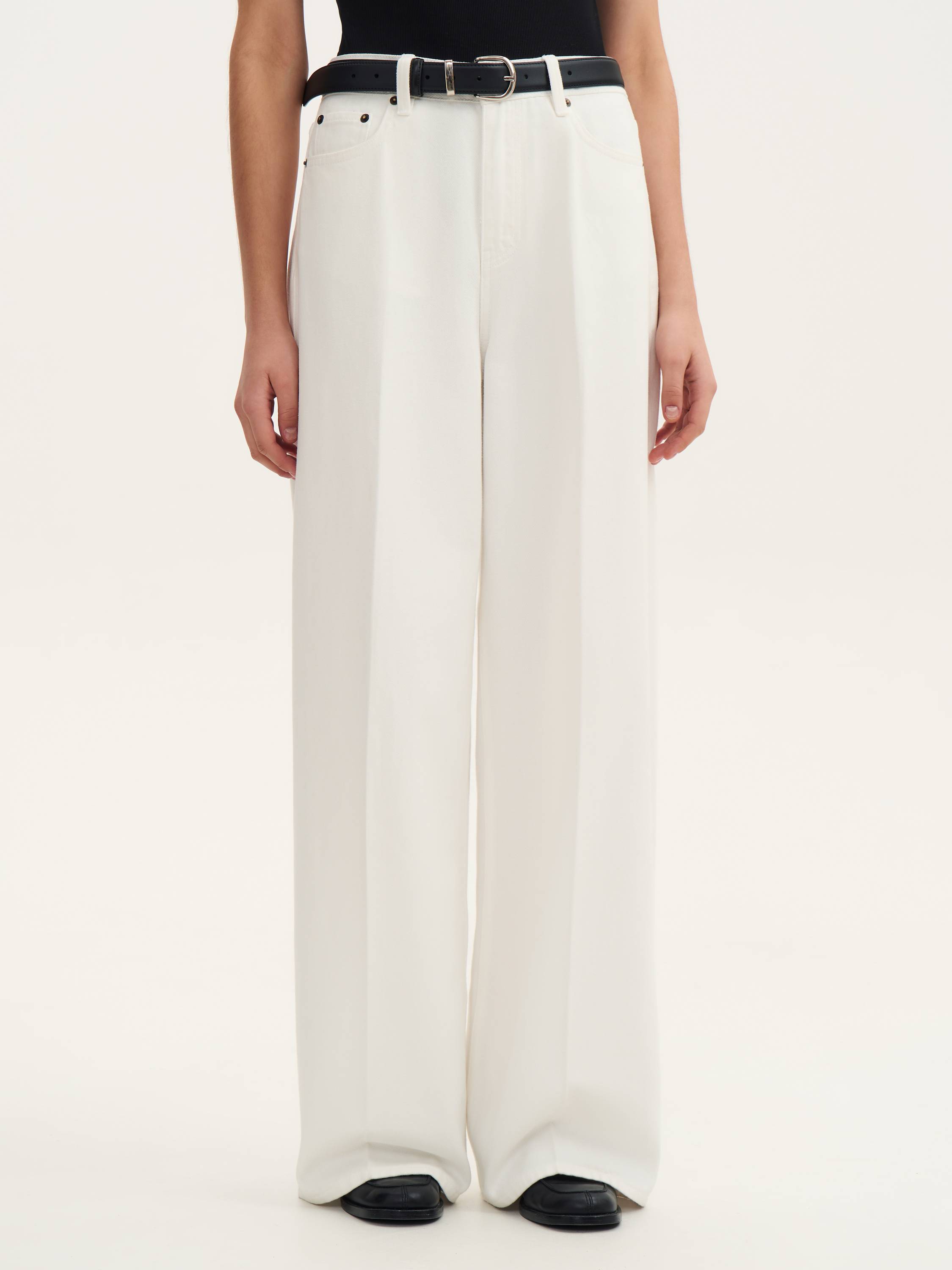 Джинсы из хлопка со стрелками — элегантная интерпретация классического денима. Легкая хлопковая ткань плотностью 11,2 Oz обеспечивает комфорт и свободу движений, сохраняя безупречный внешний вид в течение дня. Прямой крой визуально вытягивает силуэт, а средняя посадка подчеркивает талию и создает сбалансированные пропорции. Стрелки добавляют образу строгости и делают модель подходящей не только для casual-гардероба, но и для более элегантных сочетаний. Чистый белый оттенок придает свежесть и универсальность, позволяя легко комбинировать джинсы с рубашками, топами, жакетами и трикотажем. Функциональные карманы и пояс с петлями для ремня дополняют практичный дизайн, делая эту модель стильной основой гардероба.