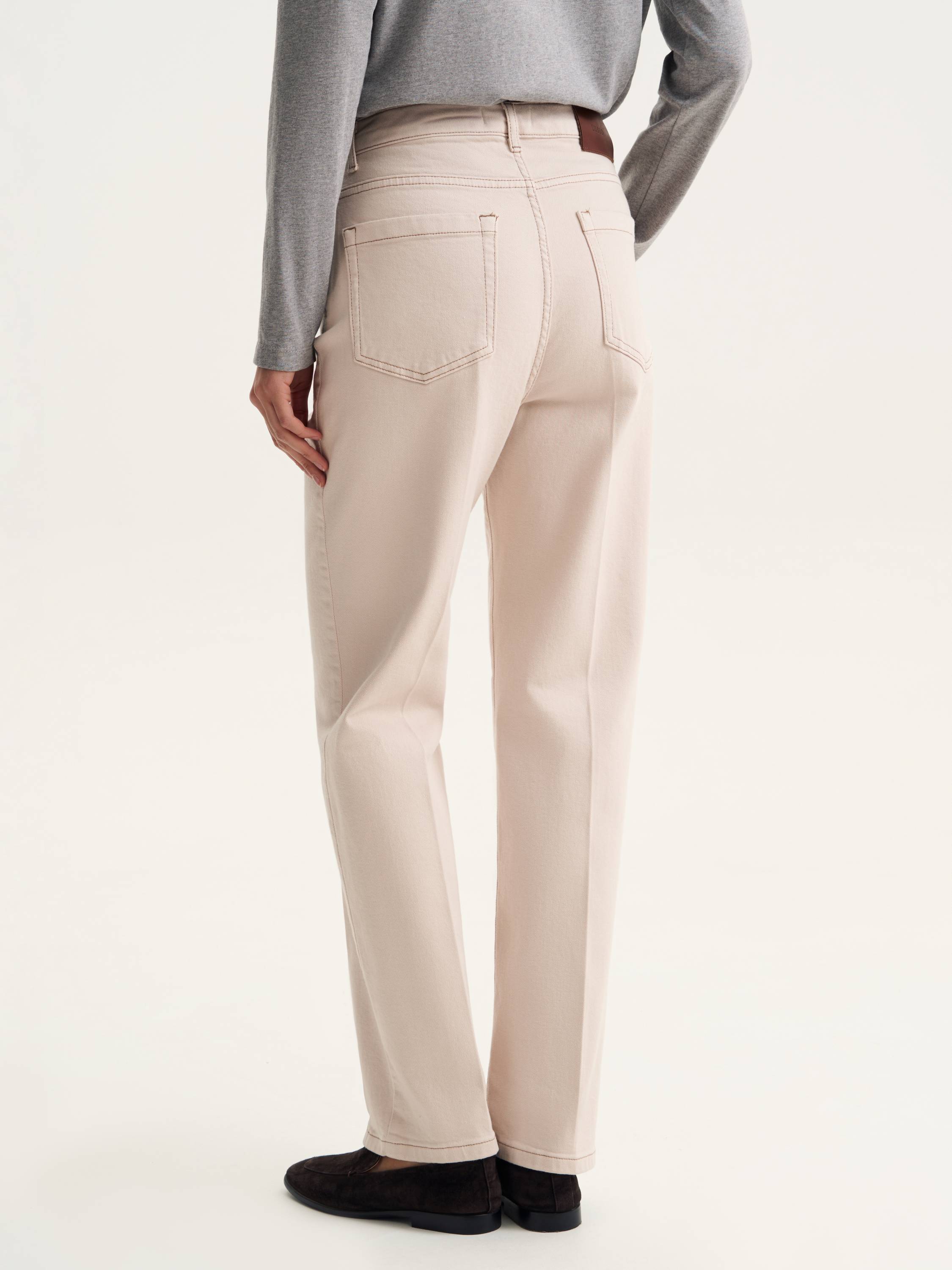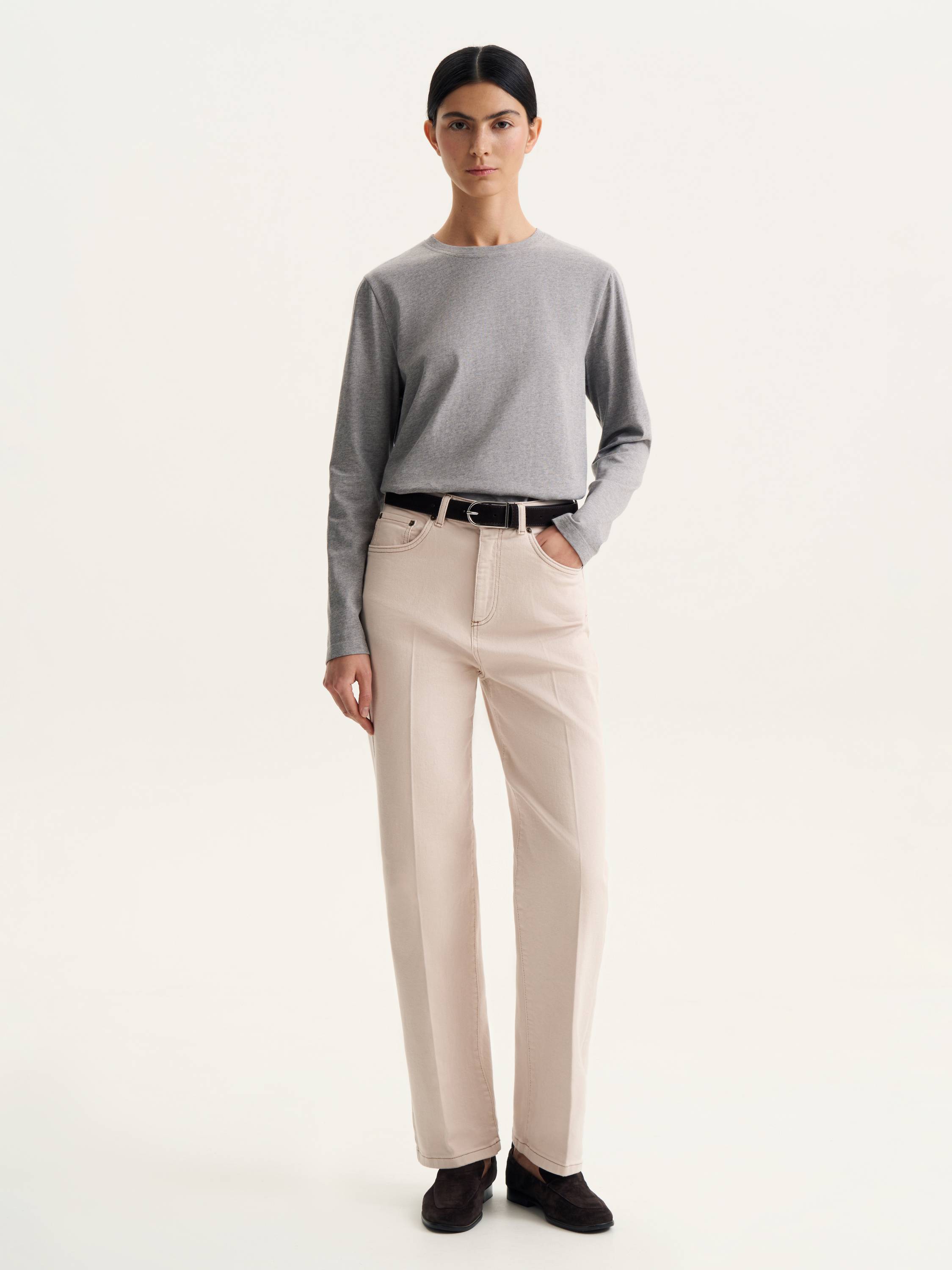 Джинсы из хлопка со стрелками – идеальное сочетание классического дизайна и современного комфорта. Высококачественный хлопок плотностью 11,2 Oz обеспечивает длительную носку и натуральное ощущение мягкости, а акцентные стрелки придают модели изысканный вид. Универсальный крой позволяет легко комбинировать эти джинсы с любыми элементами гардероба, создавая как повседневные, так и более утонченные образы. Это незаменимая вещь для тех, кто ценит качество, стиль и комфорт в каждой детали.