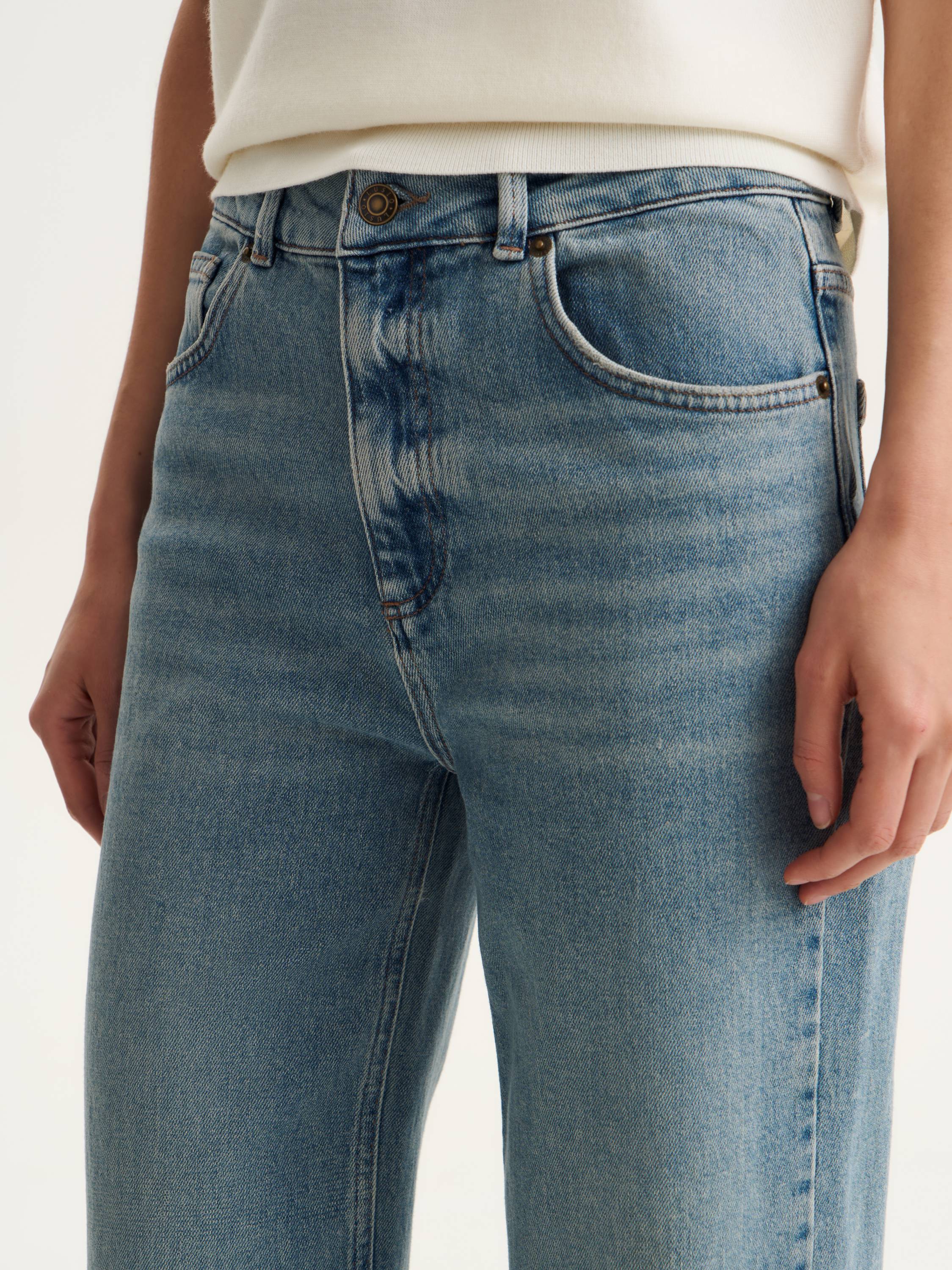 Джинсы из хлопка прямого кроя — идеальное сочетание стиля и комфорта. Прямой силуэт визуально вытягивает фигуру, создавая чистые линии и акцентируя лаконичность образа. Натуральный хлопок плотностью 12,2 Oz обеспечивает мягкость и удобную посадку, позволяя чувствовать себя комфортно в течение всего дня. Дизайн с классической посадкой и минималистичными деталями делает джинсы универсальной основой гардероба. Они легко дополняют образы с рубашками, трикотажными топами или жакетами, идеально подходя как для повседневных дел, так и для расслабленных прогулок.