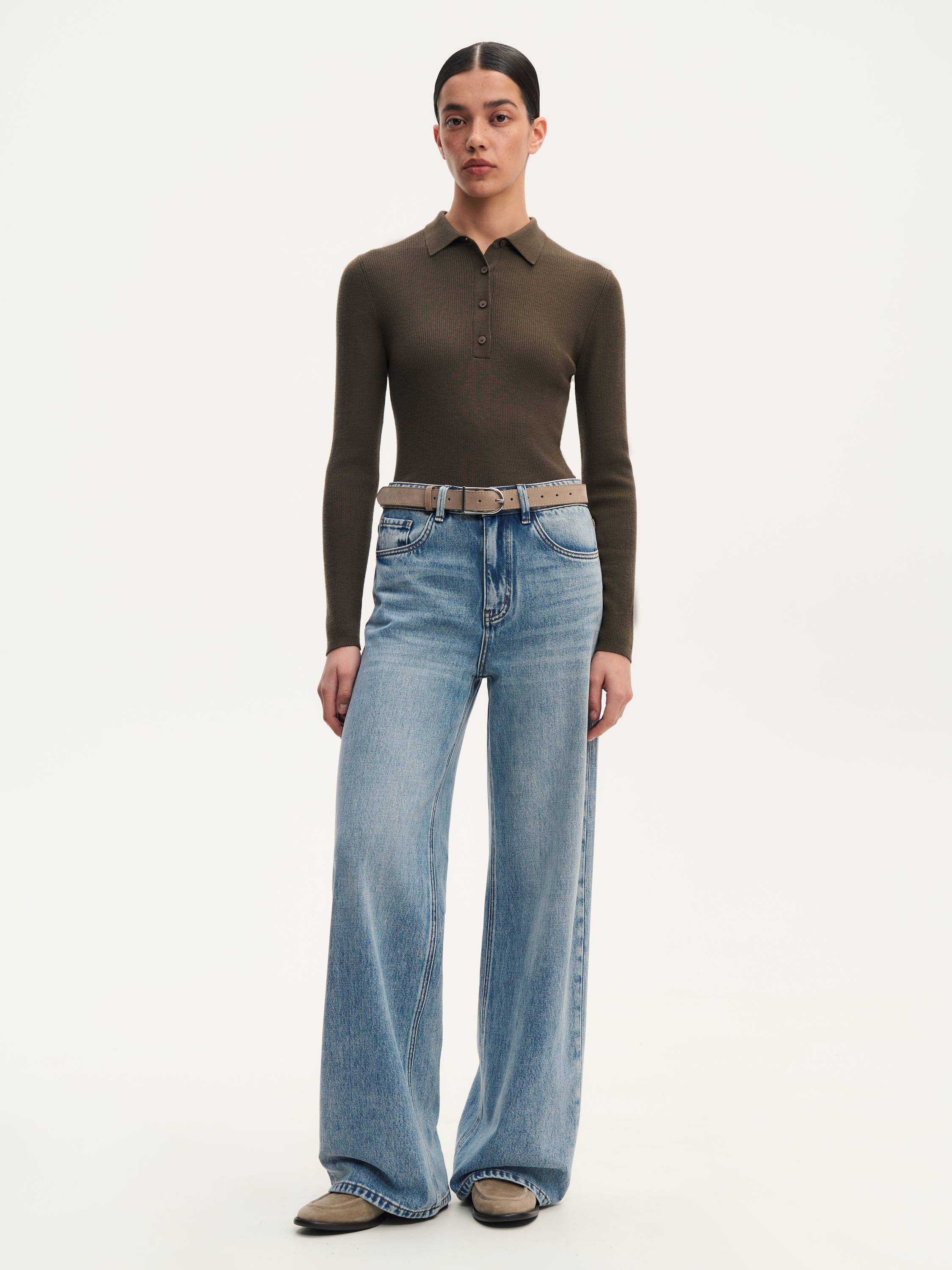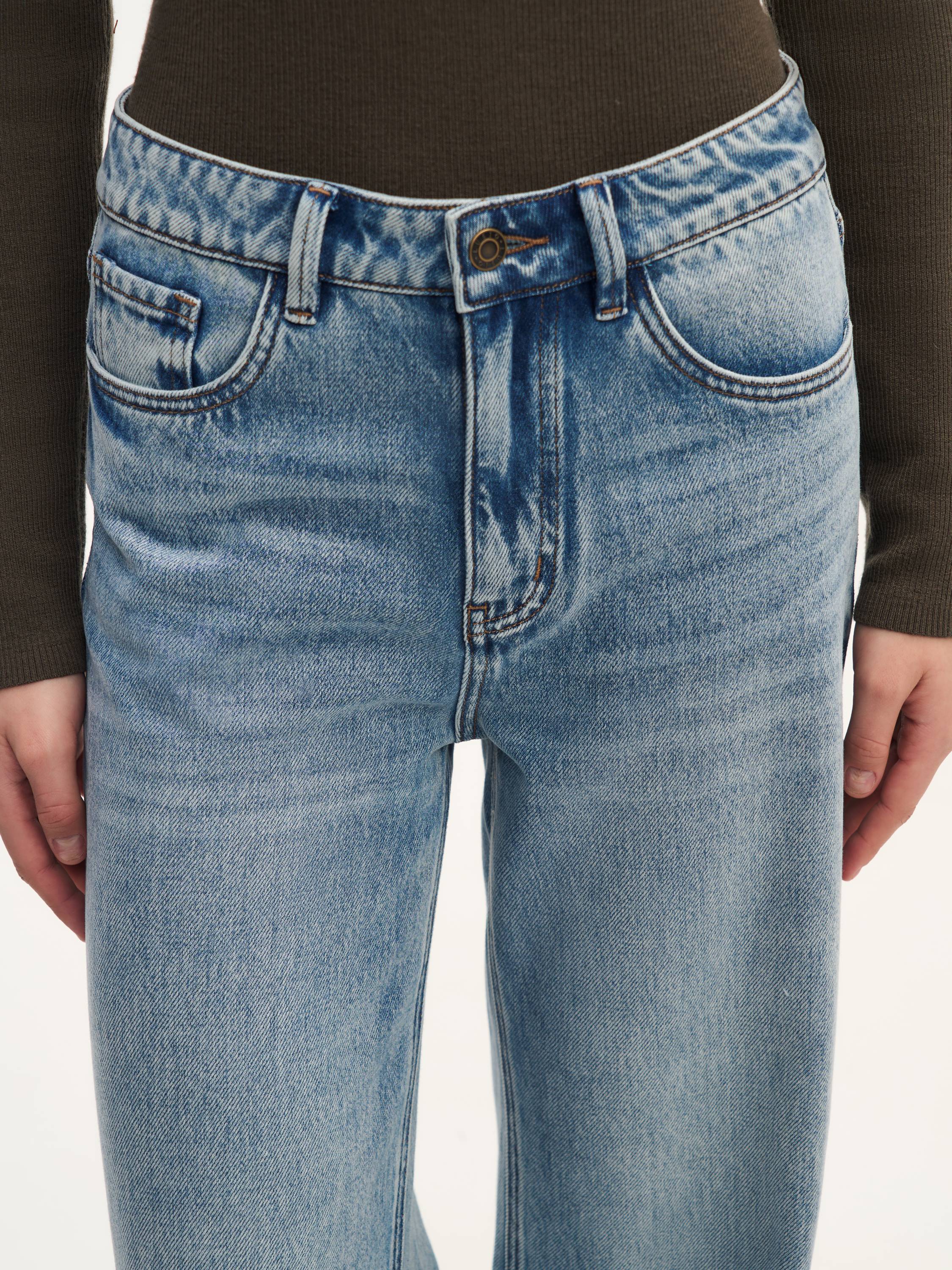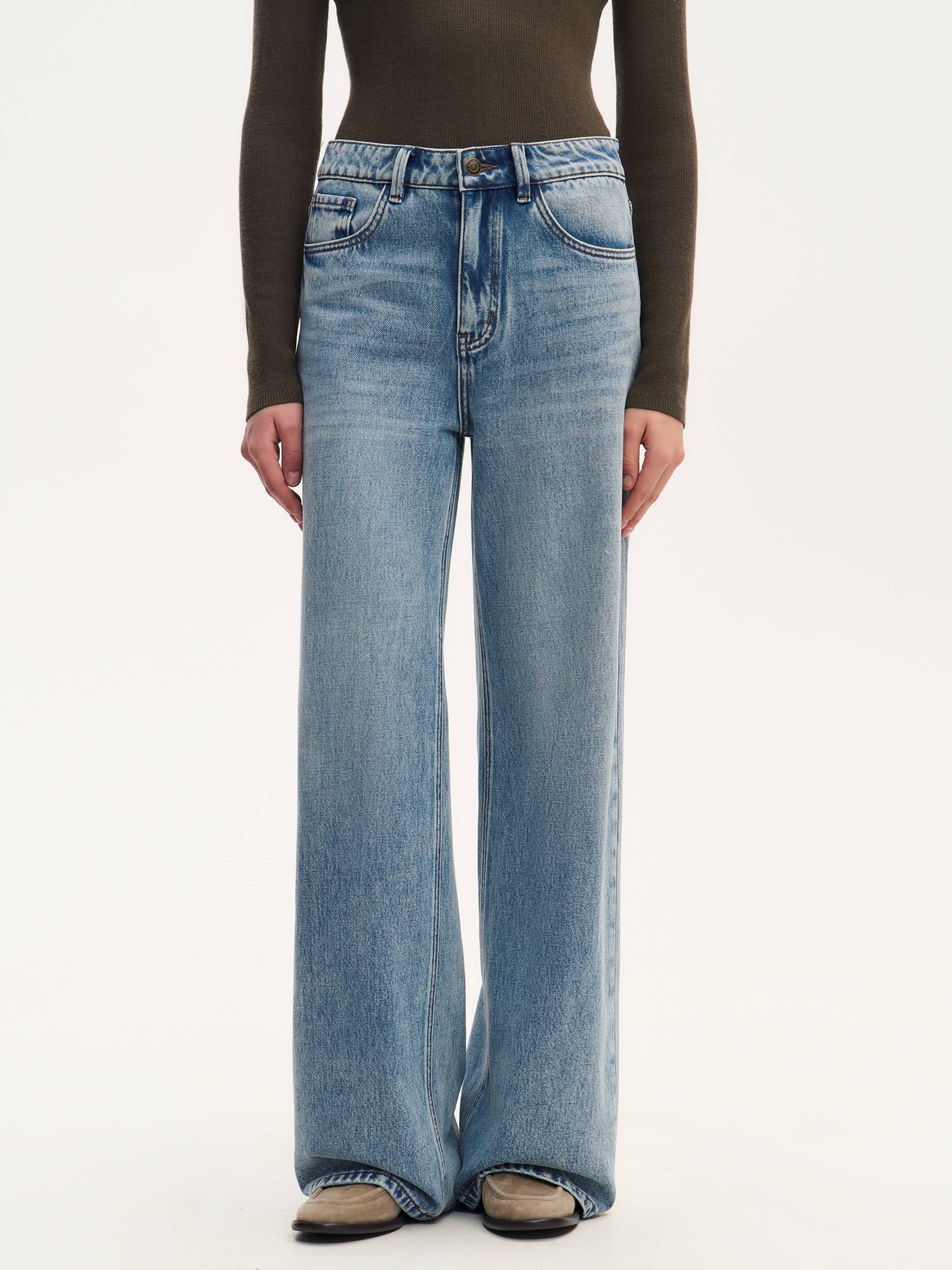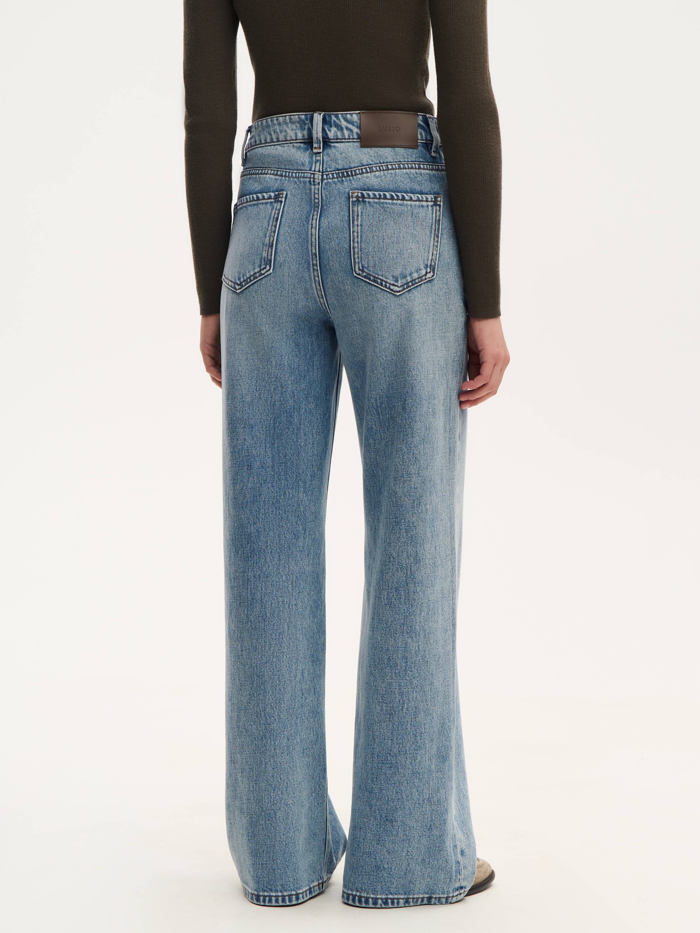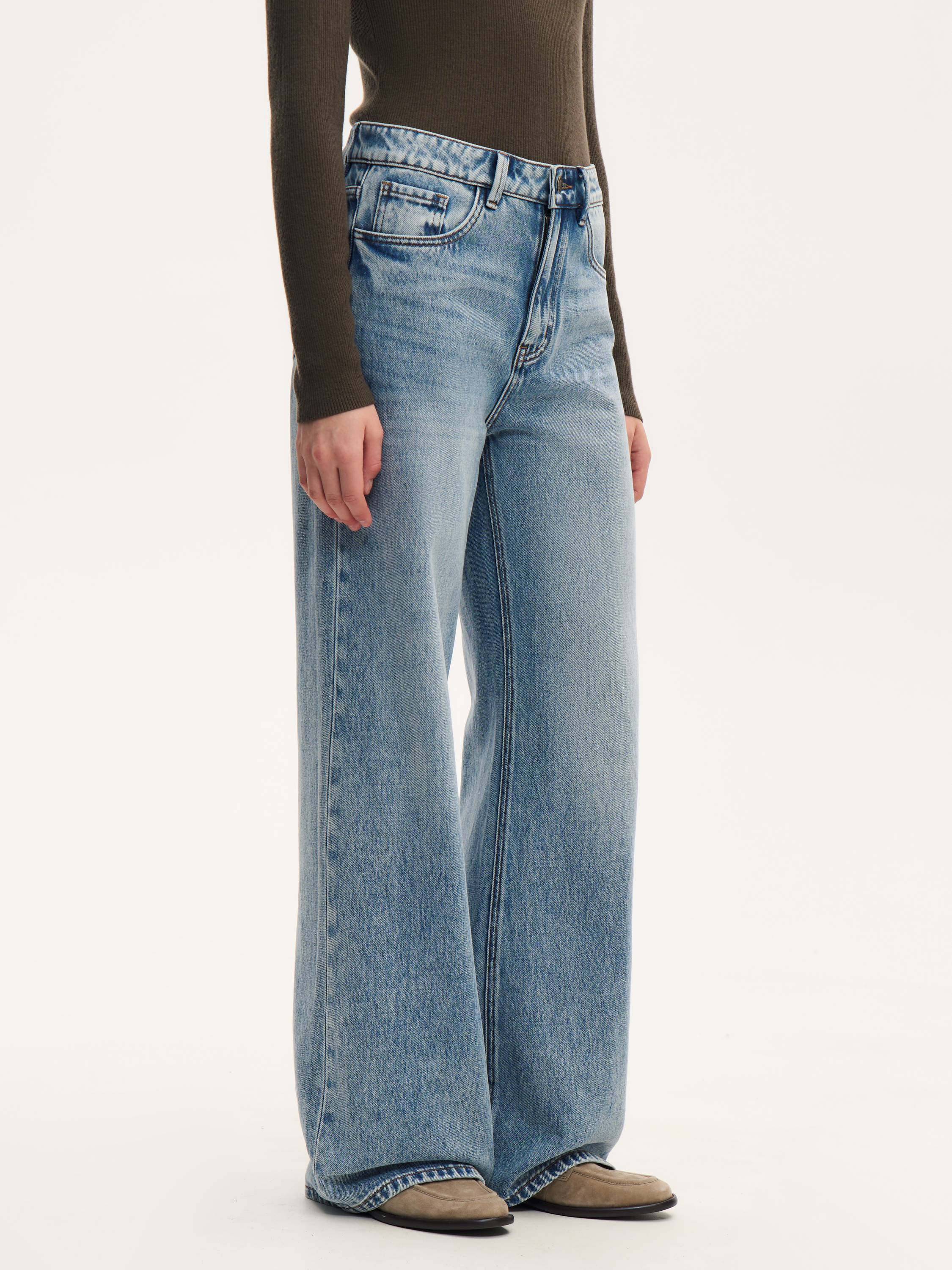 Идеальная база для современного гардероба — универсальные джинсы с силуэтом, который остается актуальным вне времени. Джинсы Wide Leg из хлопкового денима плотностью 13,8 Oz создают эффект вытянутого силуэта, визуально добавляя роста и подчеркивая талию. Высокая посадка комфортно садится по фигуре, а свободный крой дарит ощущение лёгкости и свободы движения. Плотная, но пластичная ткань держит форму и делает модель практичной в носке. Эти джинсы гармонично впишутся в гардероб, дополняя как расслабленные повседневные образы, так и элегантные сочетания с жакетом и обувью на каблуке. Посадка: Mid Rise Длина : Full Length