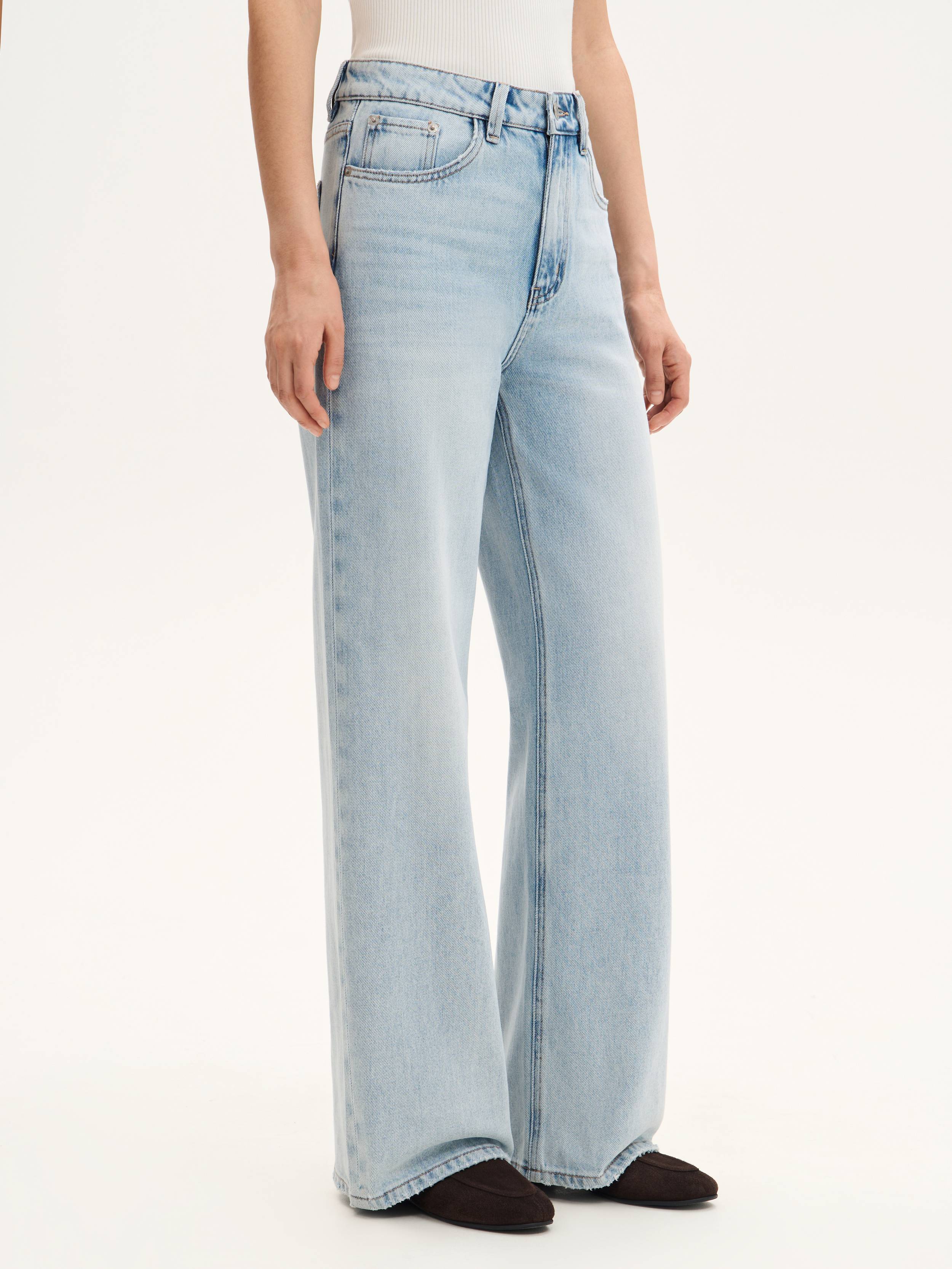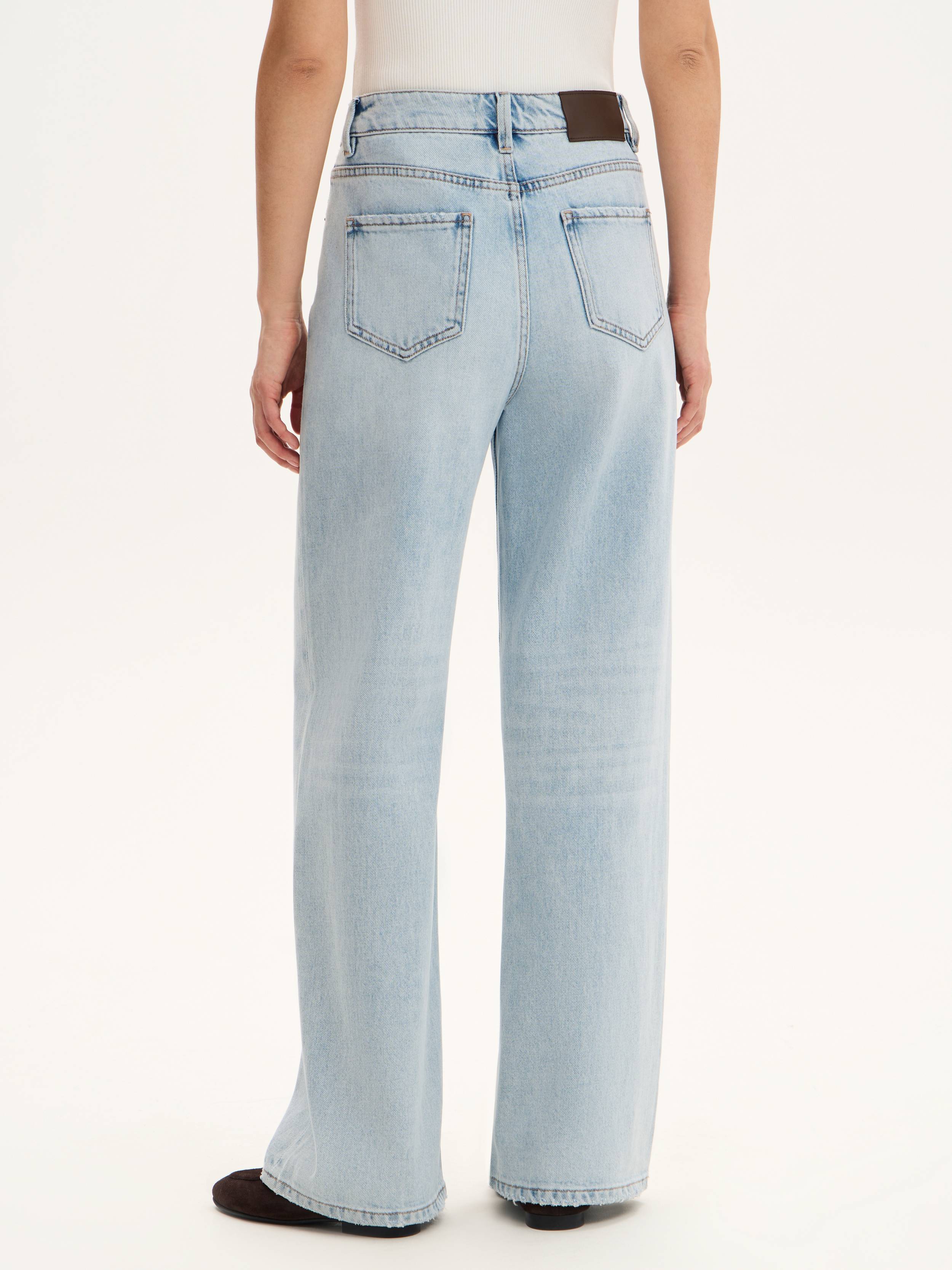 Джинсы с акцентом на архитектуру силуэта. Модель с высокой посадкой и широкими прямыми штанинами создает выразительную вертикаль, визуально удлиняя ноги. Плотный деним весом 13 Oz обеспечивает четкость формы и комфортную посадку без излишней жесткости — ткань мягко адаптируется к фигуре и сохраняет структуру. Классические элементы — кокетка на спинке, шлевки, пять карманов и варка — отсылают к традиционной джинсовой эстетике, но в современном прочтении. Эти джинсы легко впишутся в повседневный гардероб, сочетаясь как с лаконичными топами и футболками, так и с жакетами и обувью на каблуке. Посадка: High Rise. Длина: Full Length.