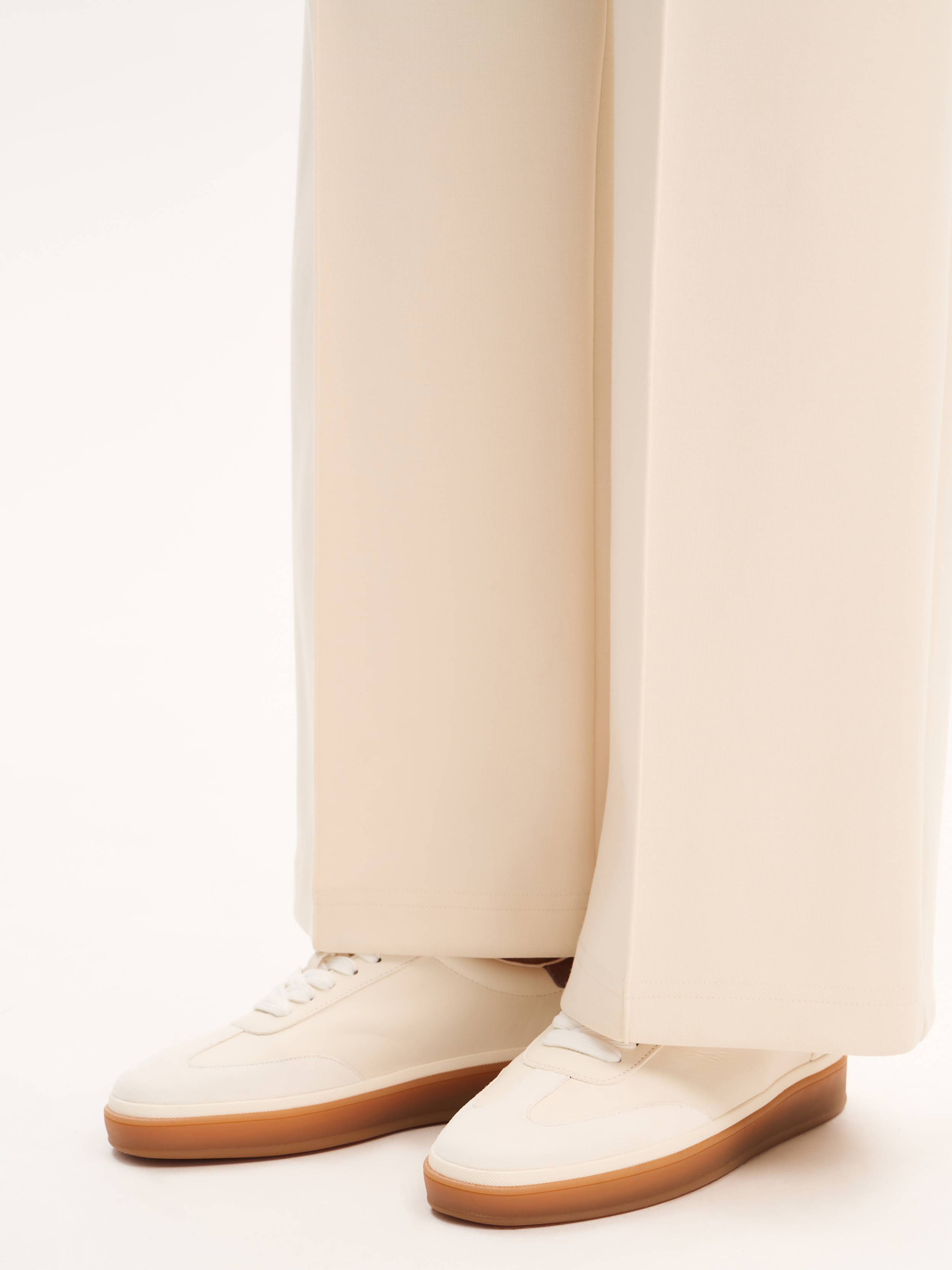 Кожаные кроссовки с минималистичным дизайном и ровной линией мыска — базовая пара с современной эстетикой. Верх выполнен из 100% натуральной кожи, которая отличается мягкостью и прочностью, внутреннее пространство также отделано кожей, обеспечивая комфорт при носке. Контрастная резиновая подошва высотой 2,8 см визуально утяжеляет низ, добавляя образу графичность. Универсальная пара на каждый день — легко адаптируется к образам в разных стилях: от брючных костюмов до расслабленных комплектов с денимом.