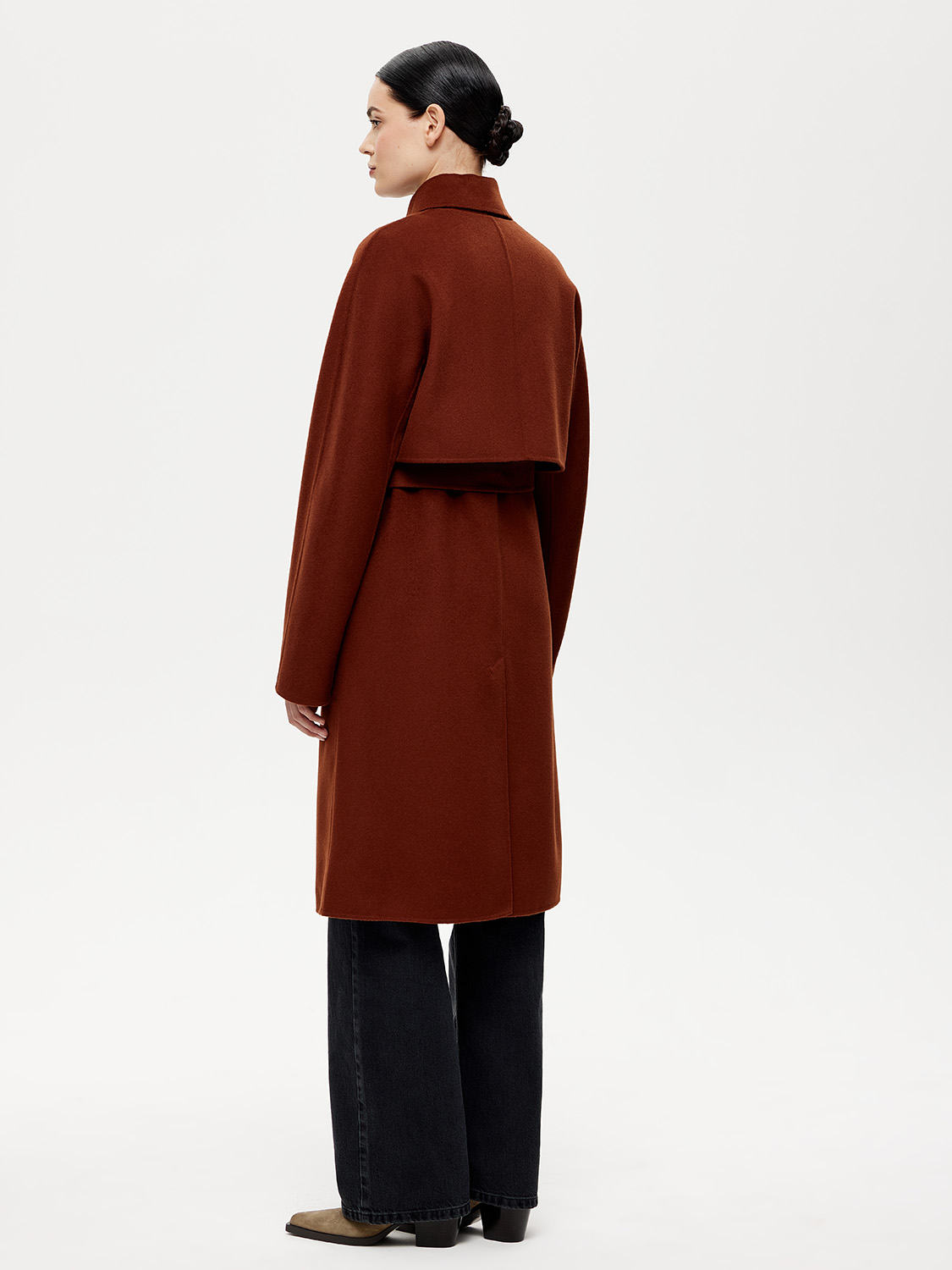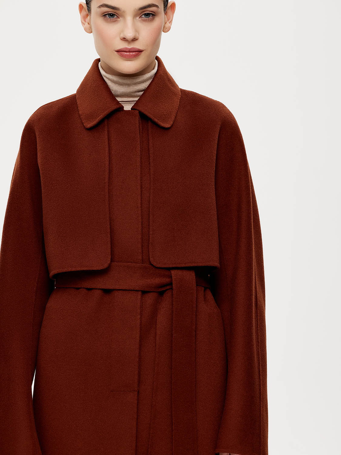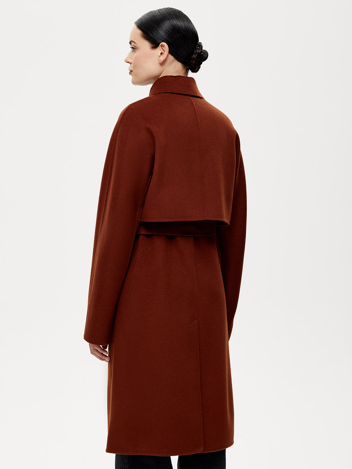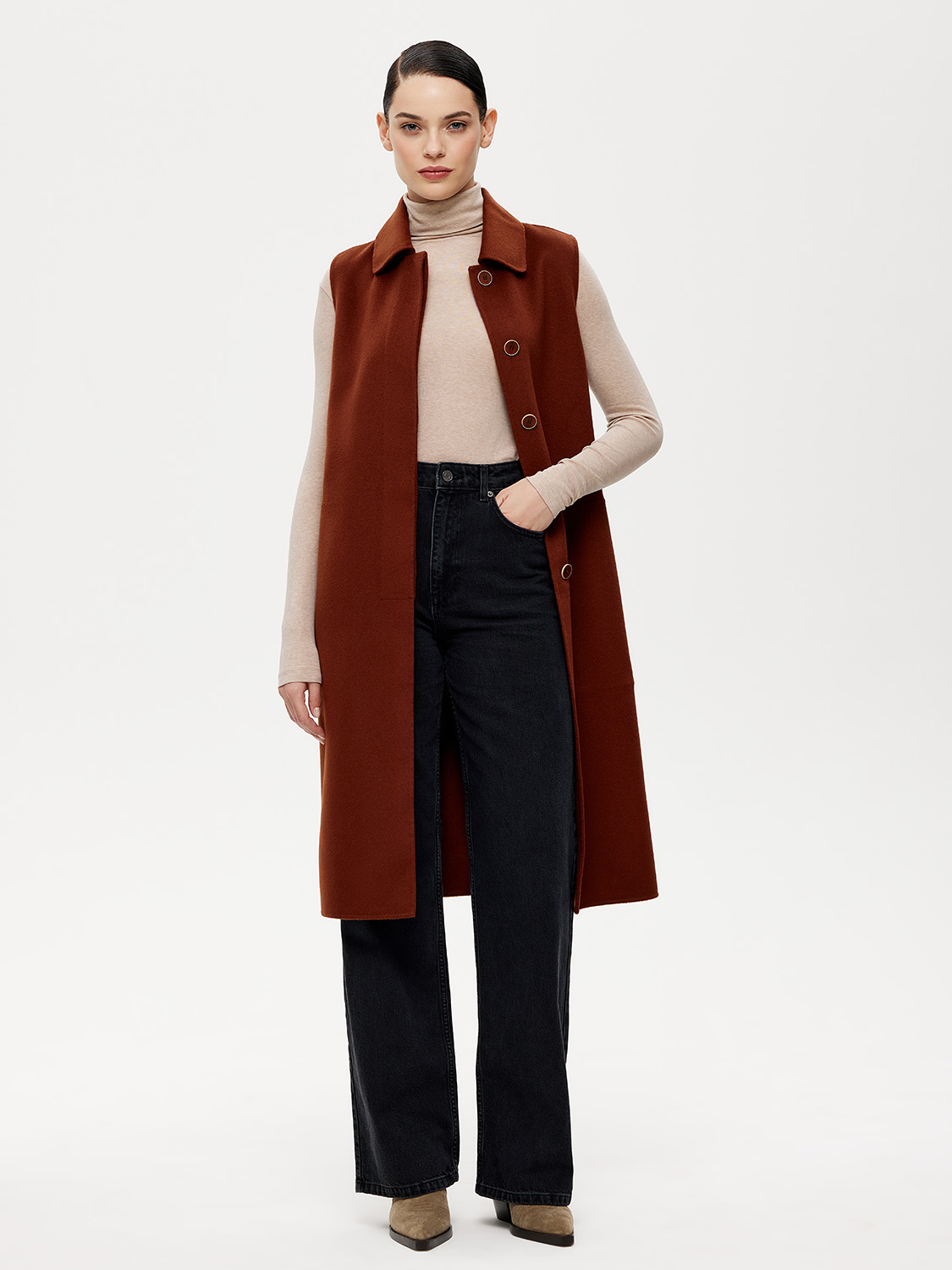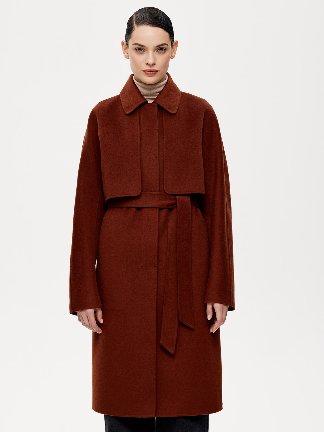 Пальто из мягкой смесовой ткани - шерсти и кашемира, благодаря чему оно хорошо удерживает тепло и комфортно садится по фигуре, не утяжеляя силуэт. Отложной воротник, застежка на крупные пуговицы, съемный пояс. Внутренние и часть внешних швов выполнены вручную. Пальто без подкладки, но два слоя ткани, соединенные невидимой строчкой по технологии double face, позволяют модели быть невероятно теплой и при этом очень легкой. Пальто-трансформер: оно с легкостью превращается в удлиненный жилет и укороченный жакет. На модели размер S. Параметры модели: рост 172, 81-58-87.