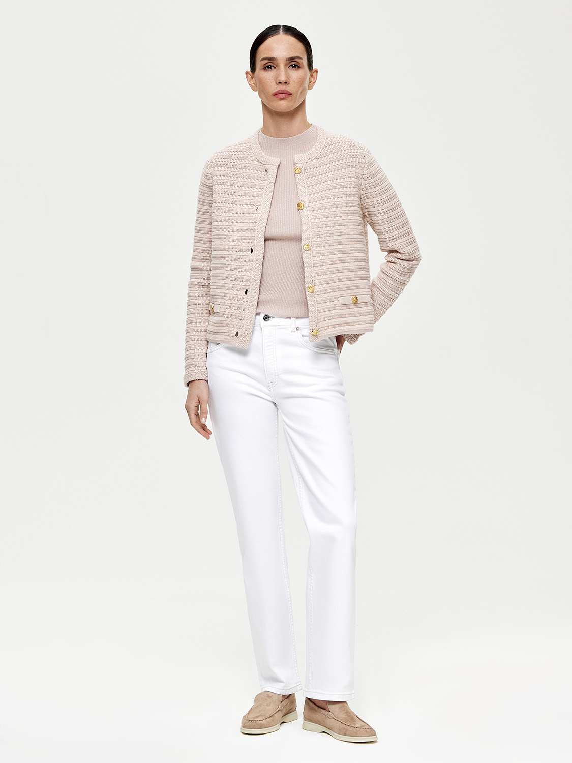 Облегающий трикотажный топ добавит деликатного сияния даже простому образу. За это отвечают мерцающие волокна люрекса, добавленные к мягкой и тонкой шерстяной пряже. У топа округлая горловина и втачной короткий рукав. Эффектно подчеркивает изгибы фигуры и легко вписывается в любой гардероб. Надевайте с джинсами, если хочется комфорта и уюта, и с костюмными юбками, брюками и жакетами, если нужно сбалансировать и структурировать мягкость трикотажа. На модели размер S. Параметры модели: рост 177, 83-61-89.