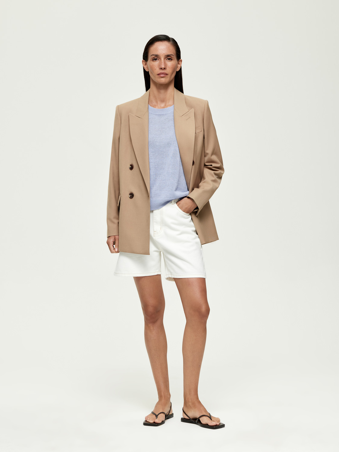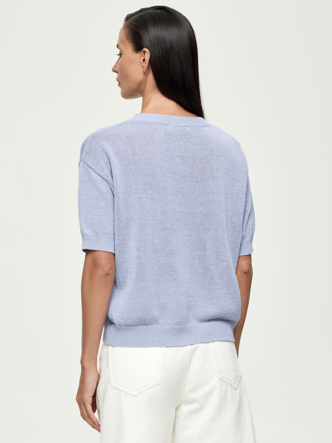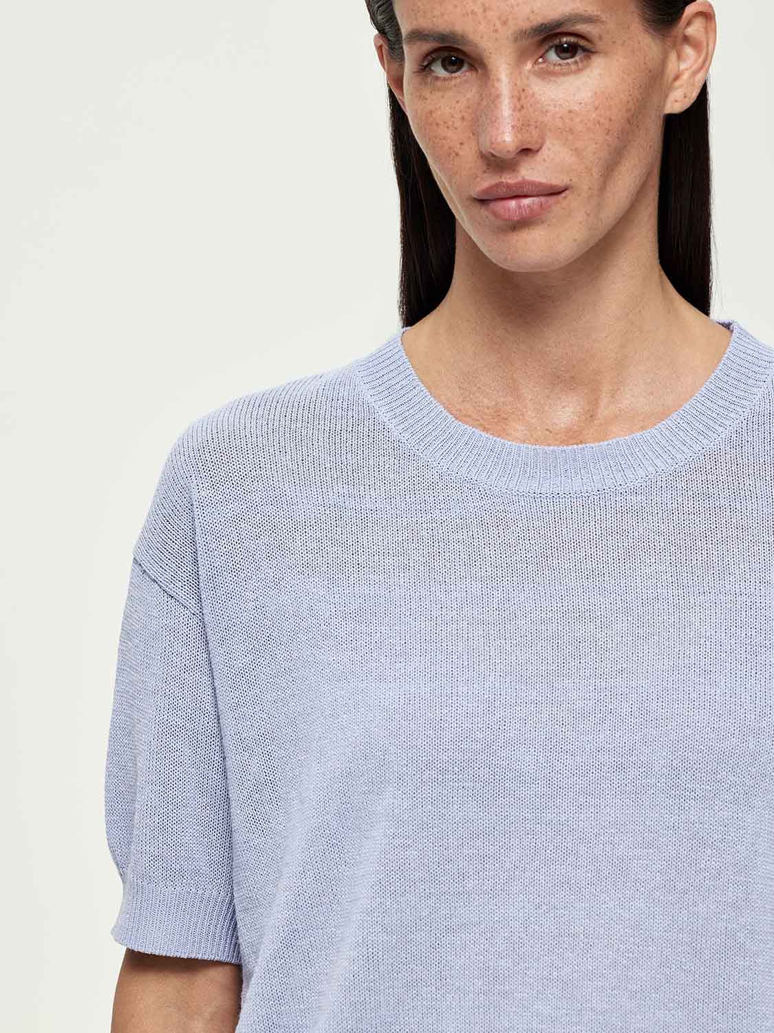 Полоска — вневременной прием, который всегда работает. Трикотажный топ в морском стиле с укороченным рукавом и мягким округлым вырезом — универсальный элемент летнего гардероба. Полотно сочетает хлопок и район: оно дышит, приятно ощущается на коже и сохраняет форму в течение дня. Лаконичный крой позволяет носить топ навыпуск или заправленным, а классический мотив делает его идеальным для сочетаний с денимом, льняными брюками и юбками.