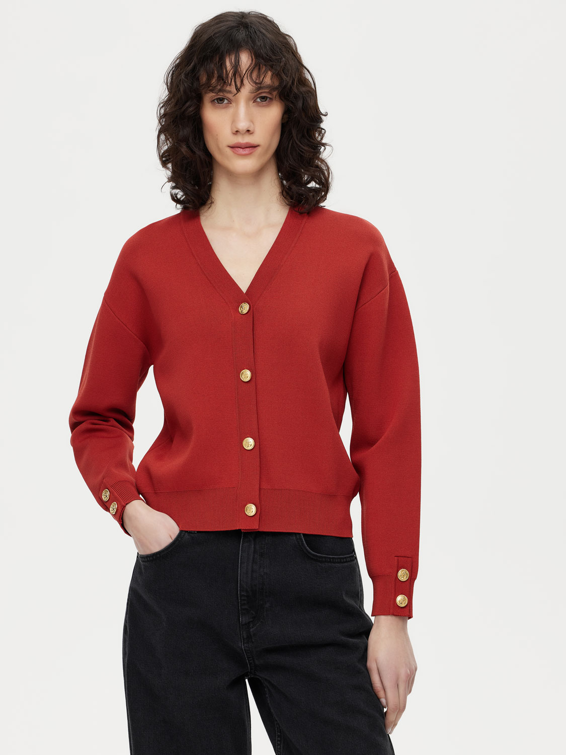 Классический кардиган из мягкой трикотажной ткани с добавлением нейлона для упругости. У кардигана прямой крой, V-образный вырез, застежка на изящные пуговицы. Кардиган – базовый вариант верхней части кэжуал образа с джинсами или брюками, а также это уютный второй слой к топу или рубашке. На модели размер S. Параметры модели: рост 177, 72-57-87.