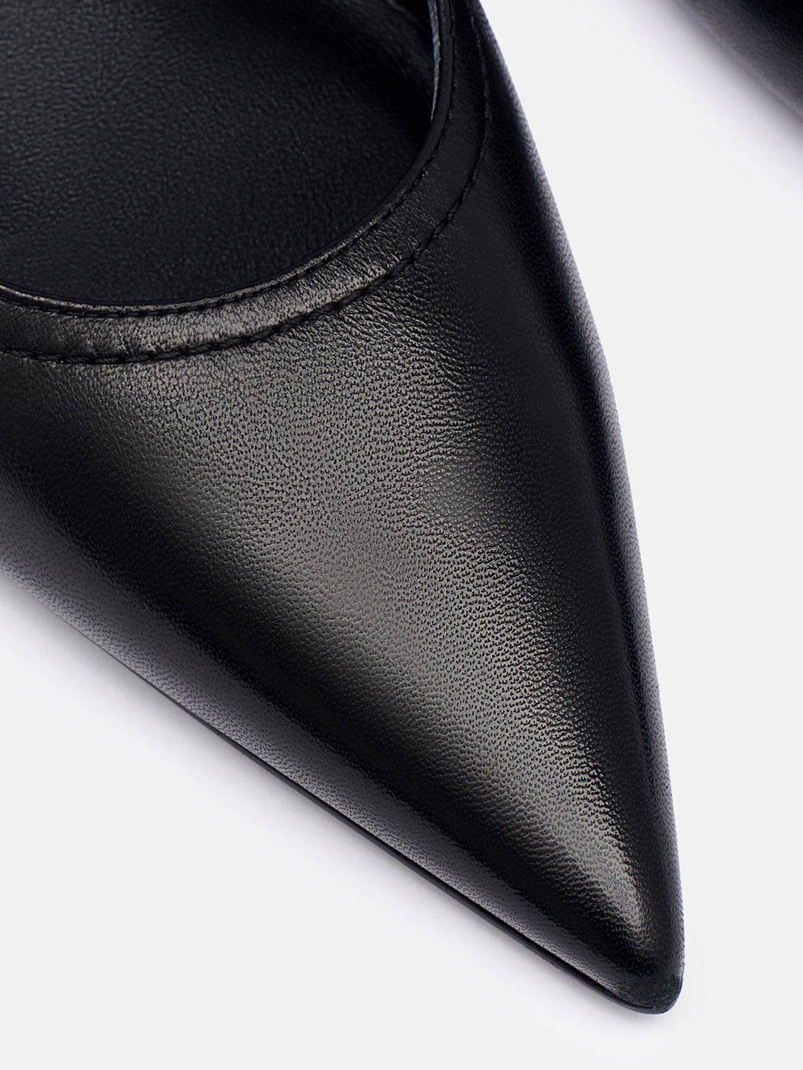 Лаконичные и стильные туфли слингбэки с заостренным мысом из натуральной гладкой кожи. Острая носочная часть и глубокое декольте удлиняют ноги. Стелька из натуральной кожи, каблук обтянут кожей. Высота видимой части каблука 5 см. Изящная пряжка хорошо фиксирует ногу. Минималистичный дизайн в сочетании с комфортом делают пару универсальной. Модель будет актуальна с вечерним платьем на праздничном ужине и в офисе с брючным костюмом.