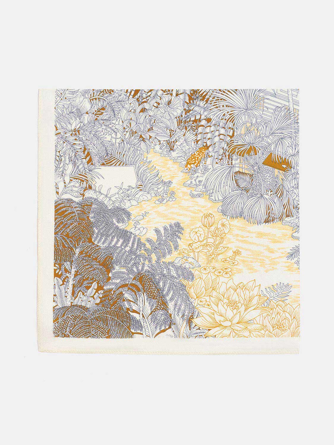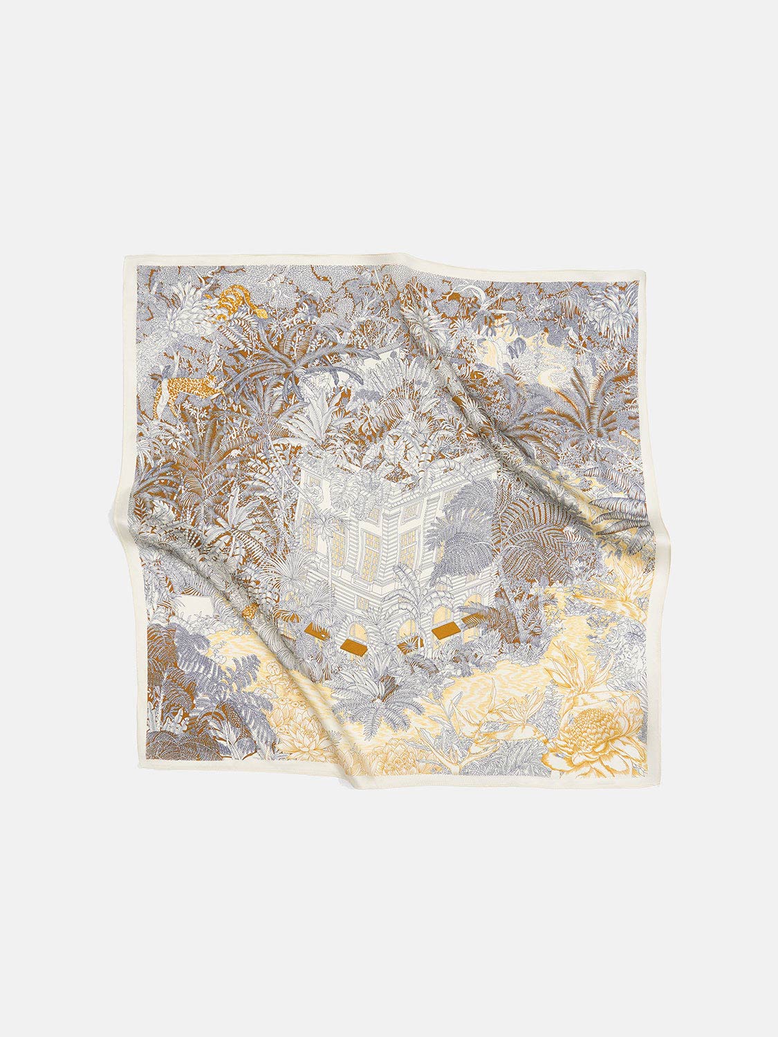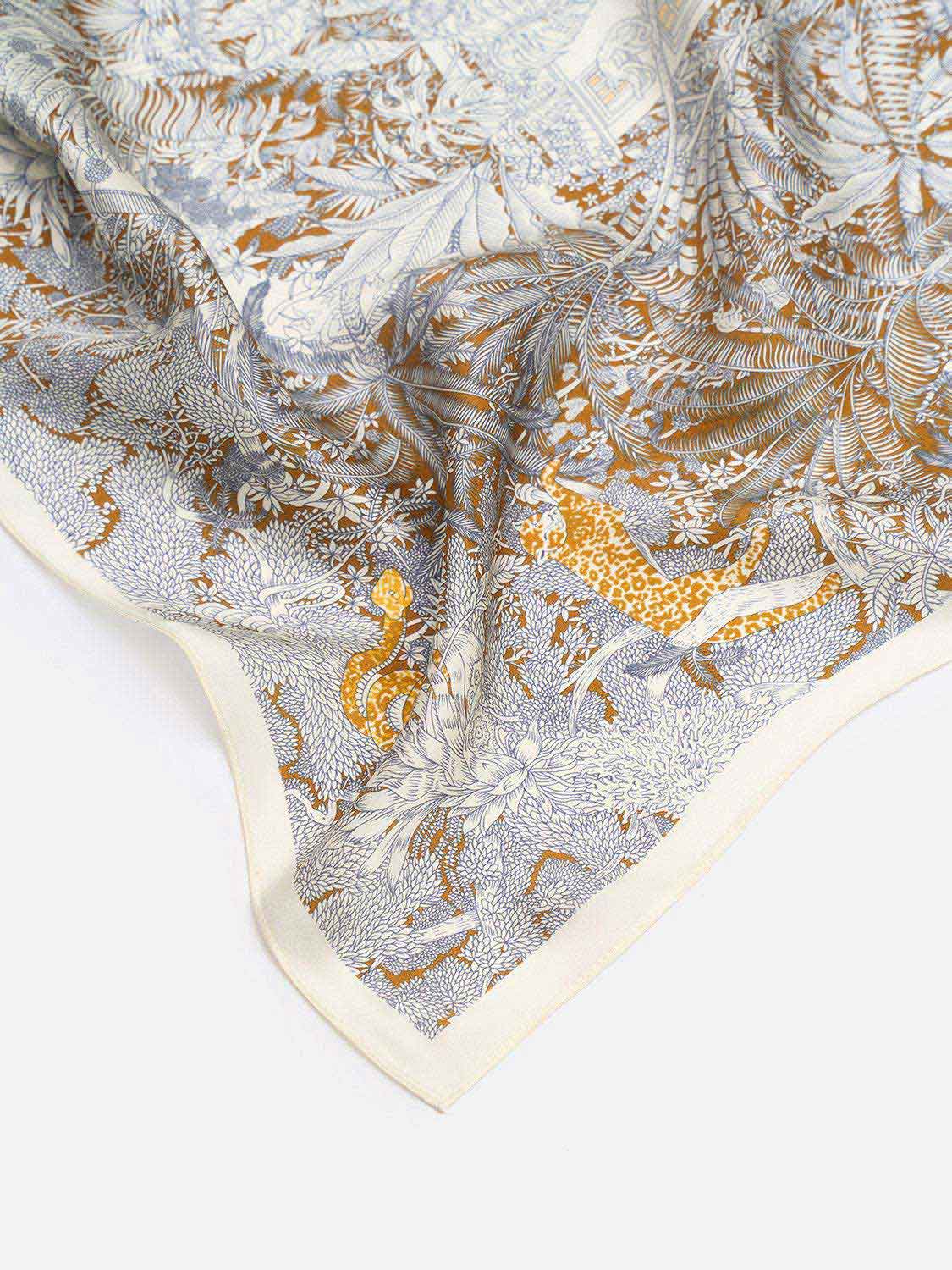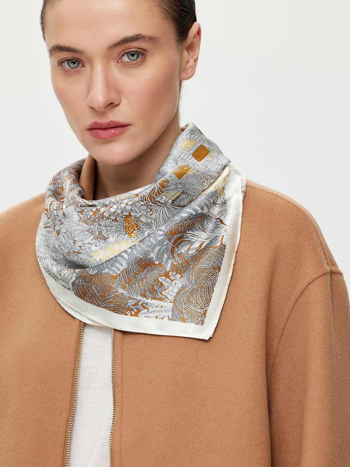 Роскошный шелковый платок базовых цветов. Для этого платка выбрали 100% шелк Mulberry – натуральный, самый тонкий и ценный вид. Такой шелк гладкий и блестящий, с ровной текстурой. Шикарно переливается при разном освещении. Платок украшен авторским принтом с растительным орнаментом и имеет бработанные края. Изящно драпируется и делает даже минималистичный комплект особенным. Повязывайте на шею, волосы или украшайте сумку. Деликатный материал требует бережного обращения - обходитесь внимательно с фурнитурой и аксессуарами, которые могут оставить затяжки и пилли. Размер платка: 70 см х 70 см.