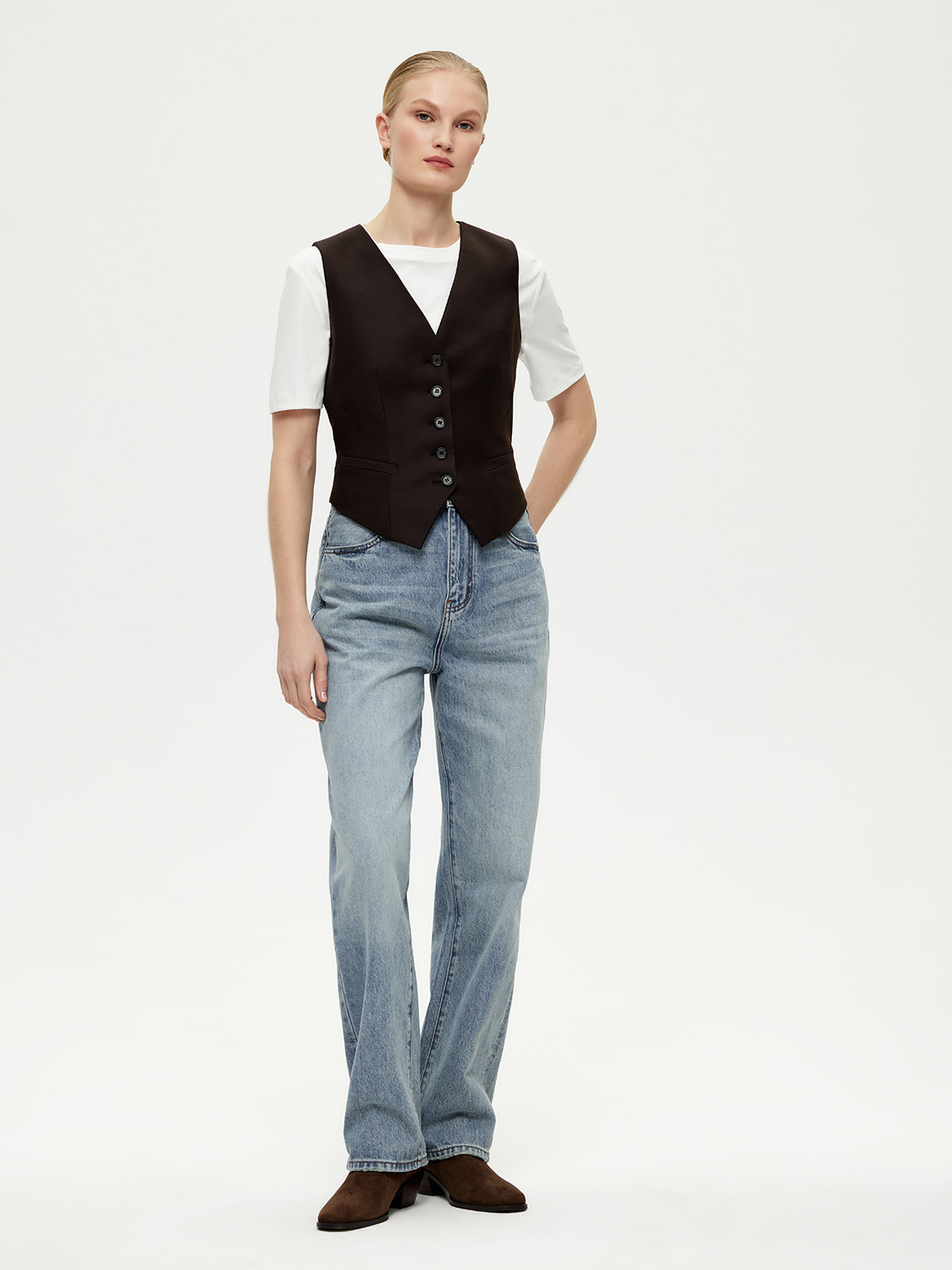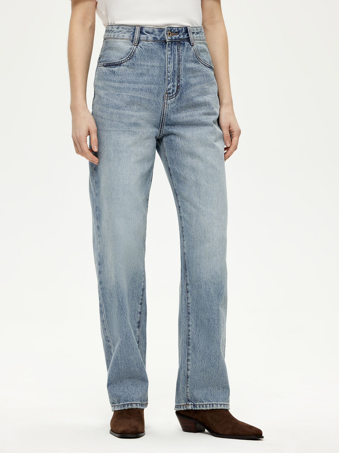Прямые базовые джинсы дополнят повседневные образы. Сшиты из плотного натурального хлопка с потертостями и выбеленным эффектом как у винтажных. Джинсы не вытягваются и долго сохраняют форму. Удобны и практичны в носке. Высокая посадка и полная длина визуально вытягивают фигуру и делают ноги стройнее. Утрированно свободный крой добавляет расслабленности и непринужденности. Носите с любимым верхом и дополняйте казаками, туфлями или лоферами. На модели размер 26. Параметры модели: рост 175, 80-63-89.