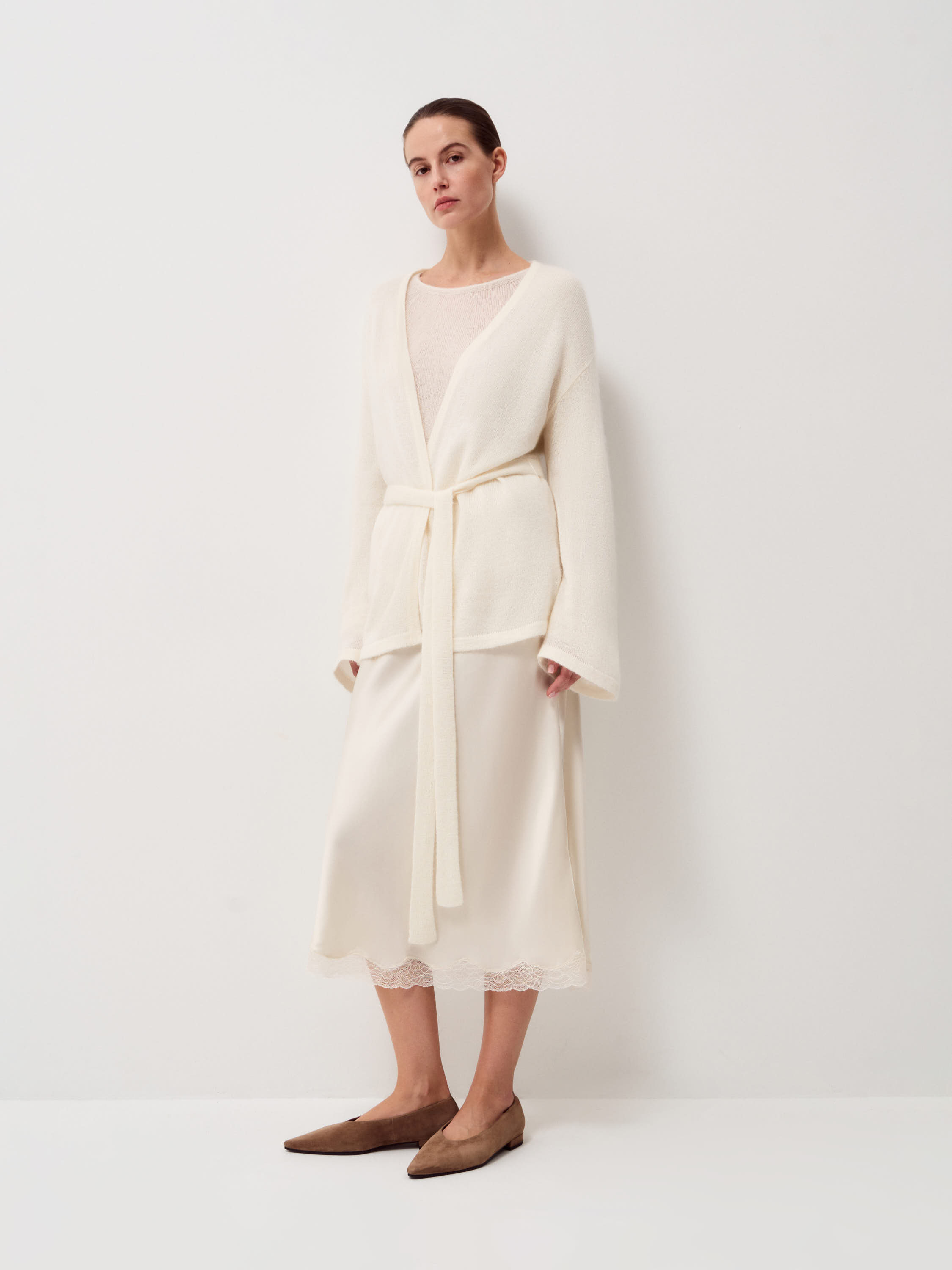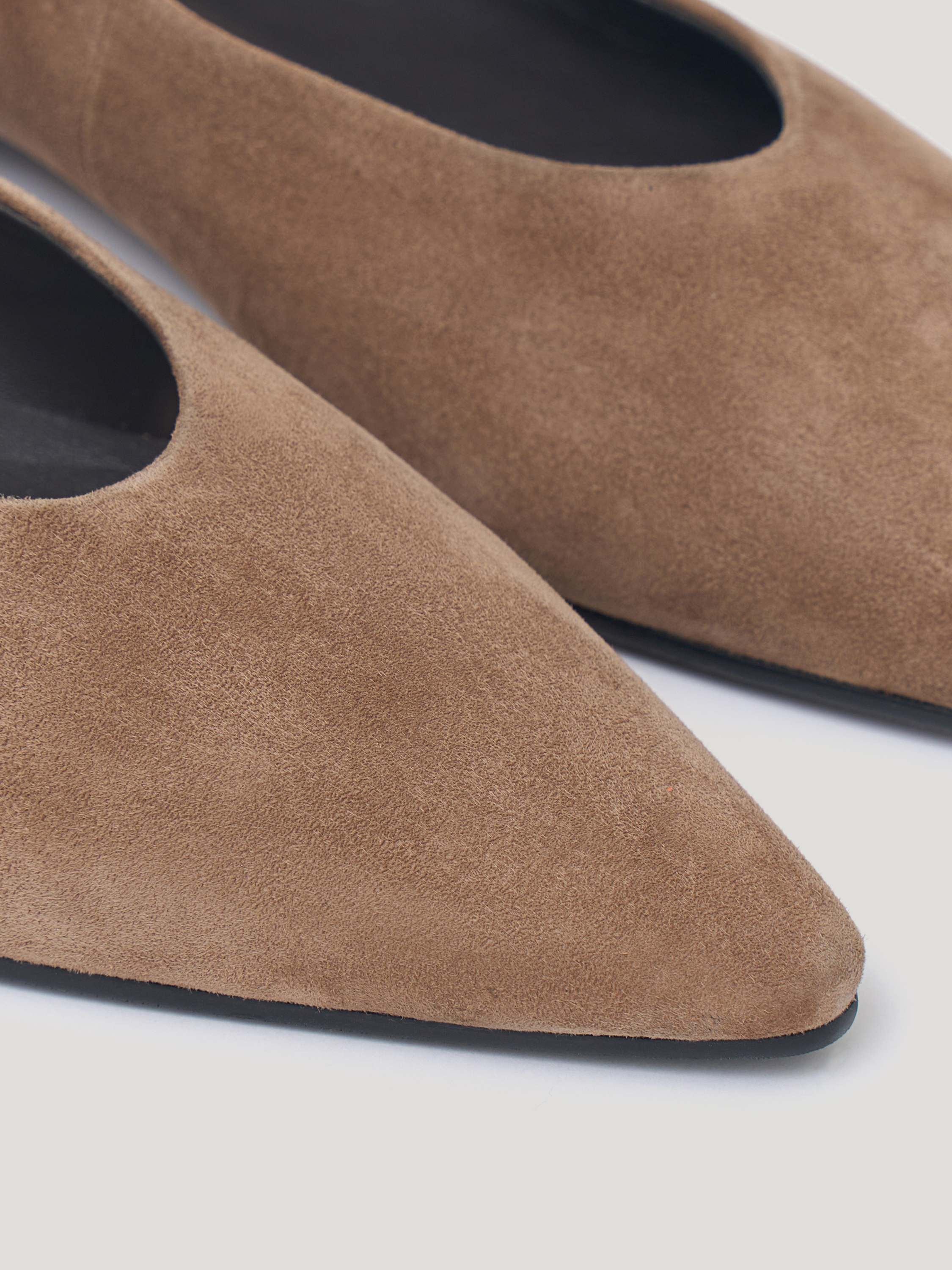 Туфли выполнены из натуральной замши с бархатистой, ровной поверхностью и мягкой текстурой. Материал пластичный, комфортно адаптируется к стопе и сохраняет аккуратный внешний вид при носке. Внутренняя часть из натуральной кожи обеспечивает комфорт и снижает риск перегрева, подошва из резины добавляет устойчивость и износостойкость. Форма лаконичная, с вытянутым мысом и низким каблуком, линия верха мягкая, без жестких акцентов. Теплый коричневый оттенок выглядит благородно и универсально, подходит для сочетаний с брюками, юбками и платьями.