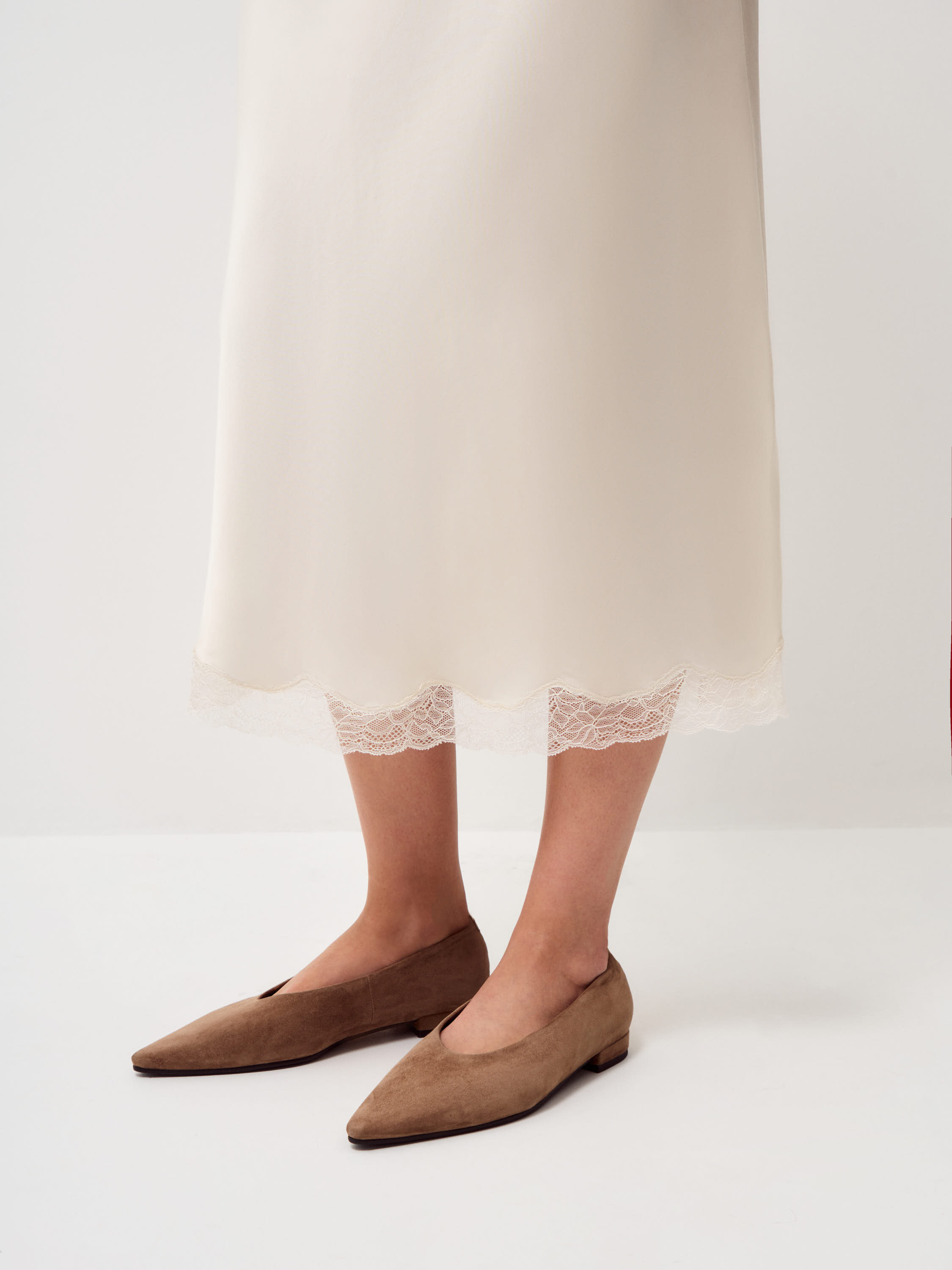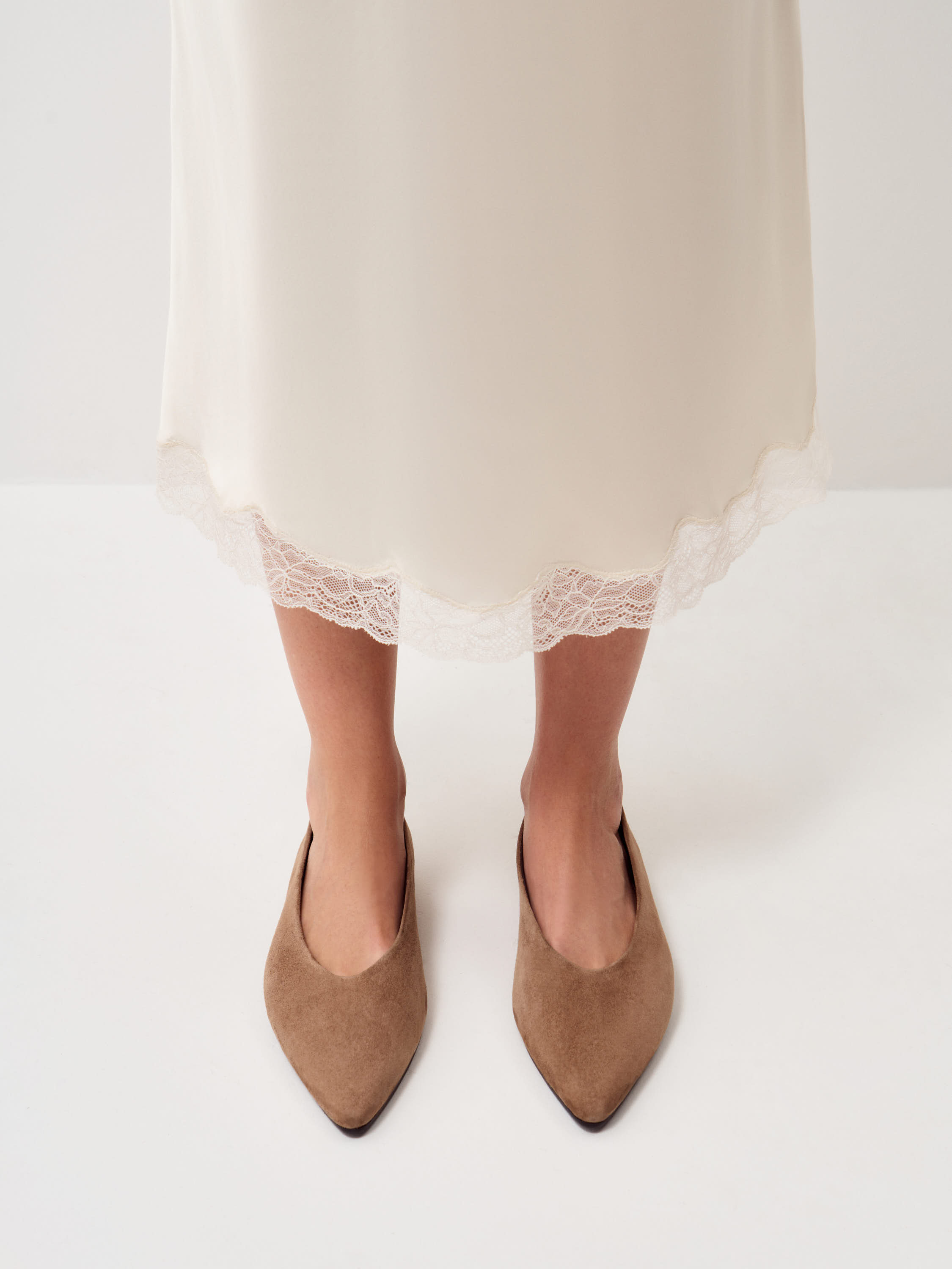 Туфли выполнены из натуральной замши с бархатистой, ровной поверхностью и мягкой текстурой. Материал пластичный, комфортно адаптируется к стопе и сохраняет аккуратный внешний вид при носке. Внутренняя часть из натуральной кожи обеспечивает комфорт и снижает риск перегрева, подошва из резины добавляет устойчивость и износостойкость. Форма лаконичная, с вытянутым мысом и низким каблуком, линия верха мягкая, без жестких акцентов. Теплый коричневый оттенок выглядит благородно и универсально, подходит для сочетаний с брюками, юбками и платьями.