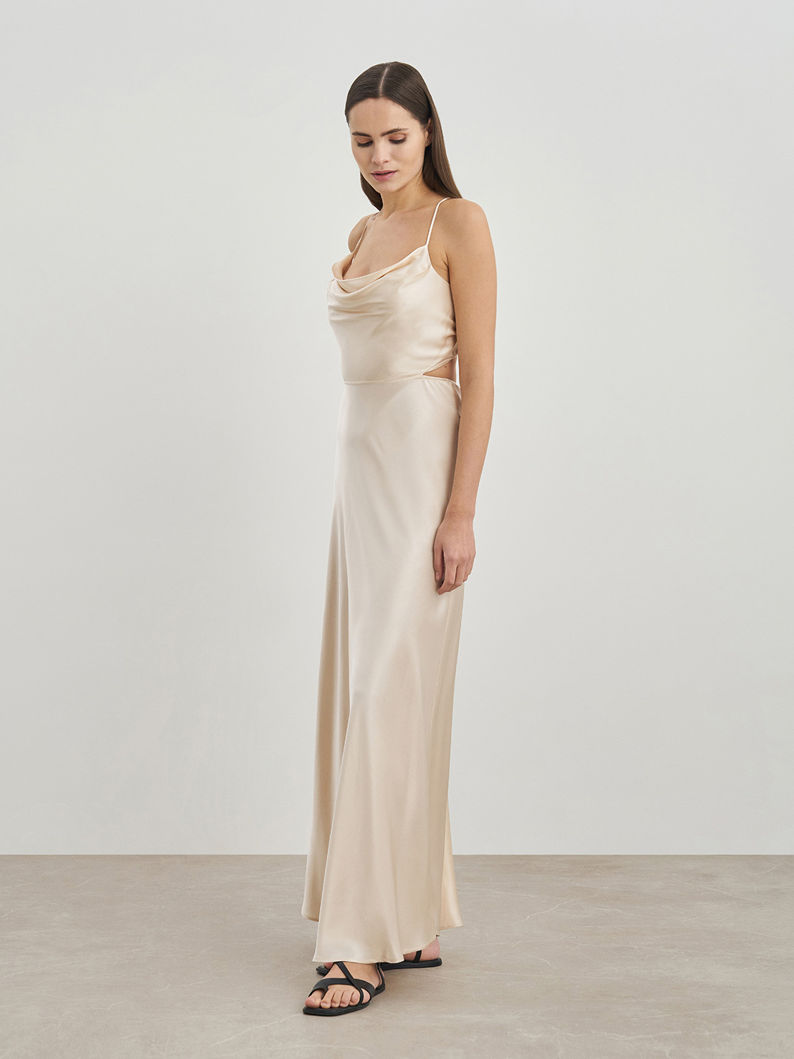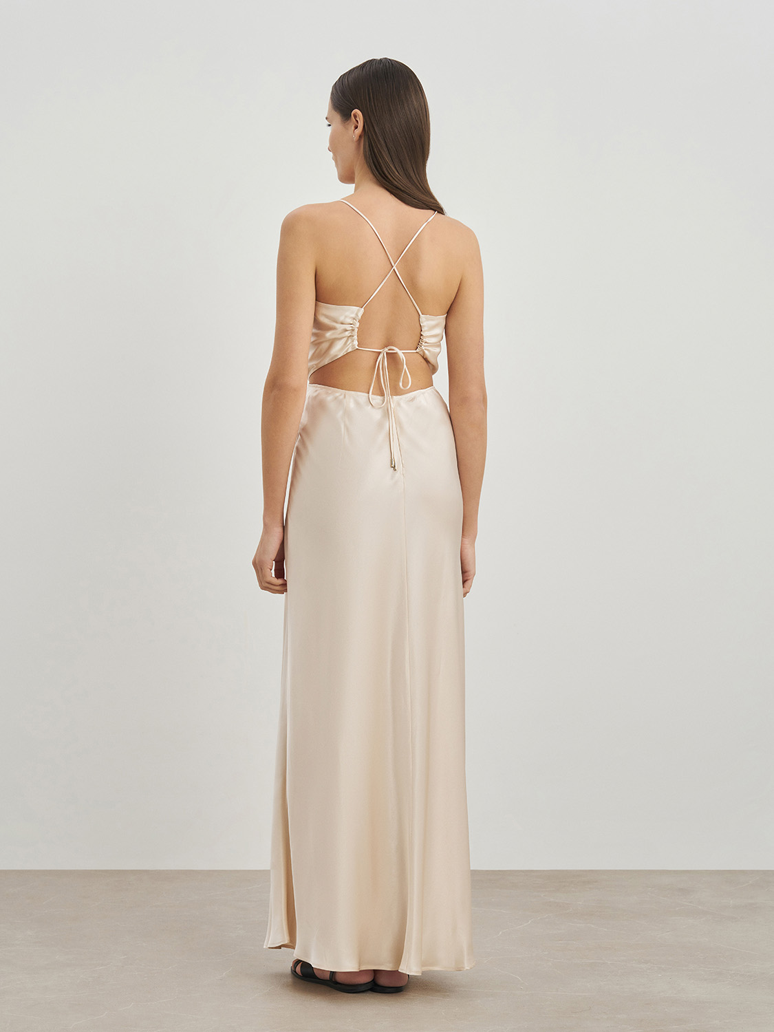 Элегантное платье макси из струящейся атласной ткани. Изящная шнуровка на спинке, тонкие регулируемые бретели, ворот-качель, приталенный силуэт и гладкая и приятная на ощупь и коже вискоза в составе. Платье деликатно сияет при любом освещении и регулируется по фигуре. Роскошный вариант для вечерних мероприятий и торжеств, летних вечерних прогулок в сочетании с прямым жакетом, лодочками или босоножками. На модели размер S. Параметры модели: рост 174, 84-63-88.