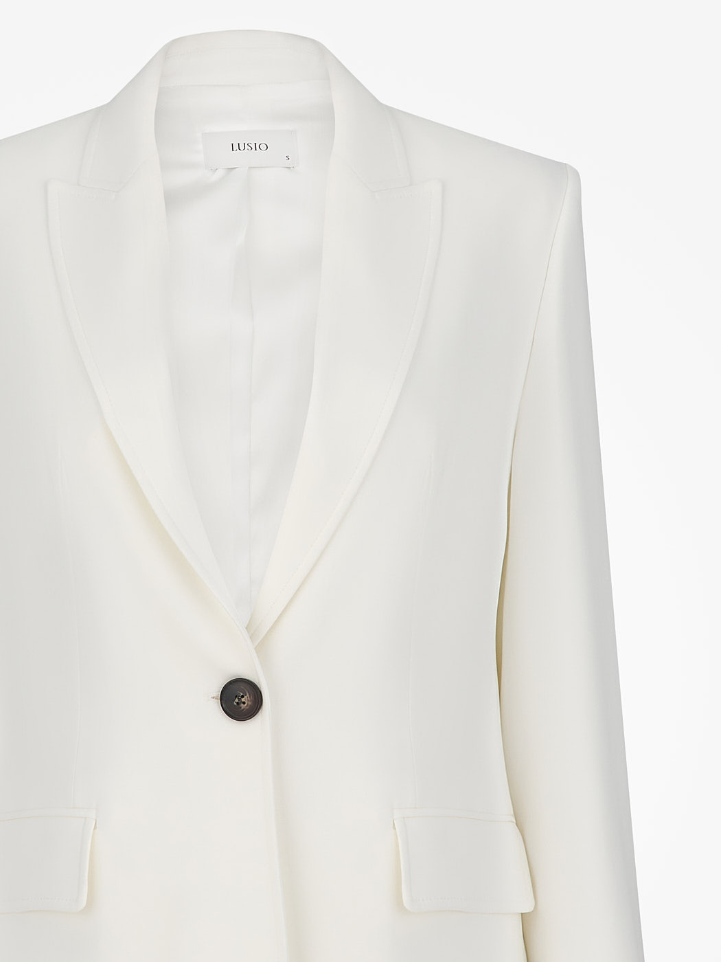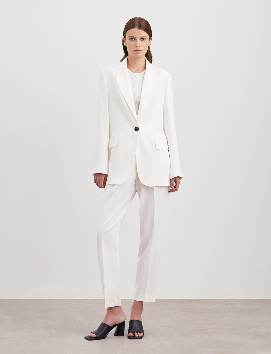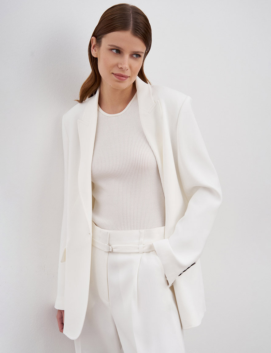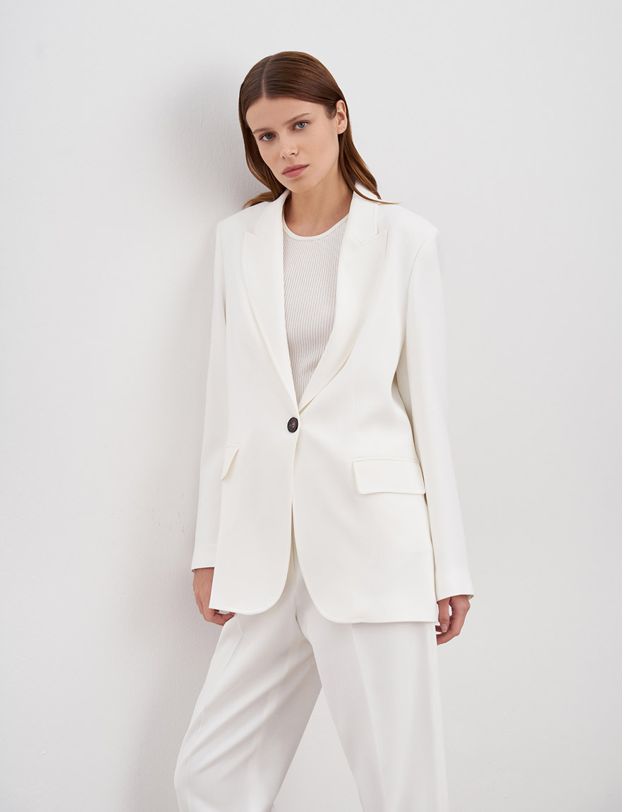 Однобортный элегантный жакет на одну пуговицу. Полуприталенный крой, классический ворот с лацканами, декоративные клапаны, пуговицы на манжетах рукавов. Жакет выполнен из смесовой ткани с вискозой, внутри дышащая подкладка. Подойдет как для рабочих будней и деловых встреч, так и для вечерних торжественных мероприятий. Дополнит образы с брюками, юбками, платьями-комбинациями в сочетании с лодочками, лоферами или босоножками. На модели размер S. Параметры модели: рост 178, 80-60-88.