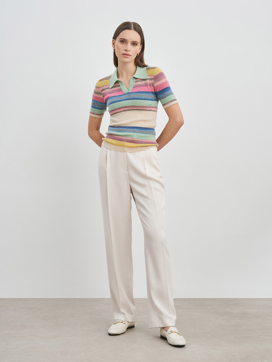Элегантные брюки прямого кроя из технологичной ткани тенсел. Комфортная посадка, застежка на молнию и крючки, боковые карманы, классические стрелки и защипы. Не сковывают движения и приятны на ощупь и коже, не закатываются и не растягиваются. Подойдут для любого события и повода - будь то работа, офис, деловая встреча или вечернее мероприятие. Образ дополнит жакет в цвет, классическая блуза или топ, лодочки или босоножки. На модели размер S. Параметры модели: рост 174, 84-63-88.