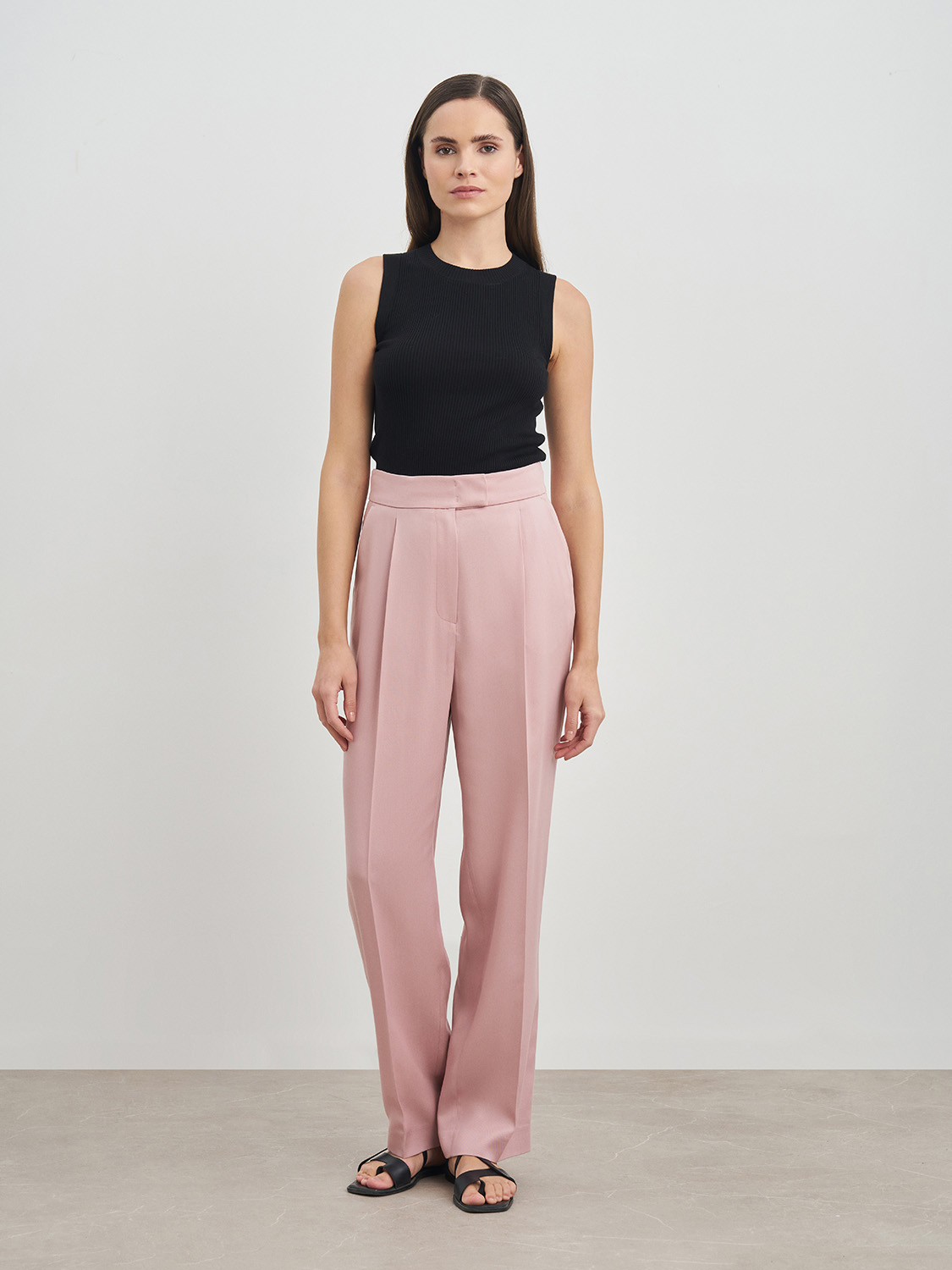 Элегантные брюки прямого кроя из технологичной ткани тенсел. Комфортная посадка, застежка на молнию и крючки, боковые карманы, классические стрелки и защипы. Не сковывают движения и приятны на ощупь и коже, не закатываются и не растягиваются. Подойдут для любого события и повода - будь то работа, офис, деловая встреча или вечернее мероприятие. Образ дополнит жакет в цвет, классическая блуза или топ, лодочки или босоножки. На модели размер S. Параметры модели: рост 174, 84-63-88.