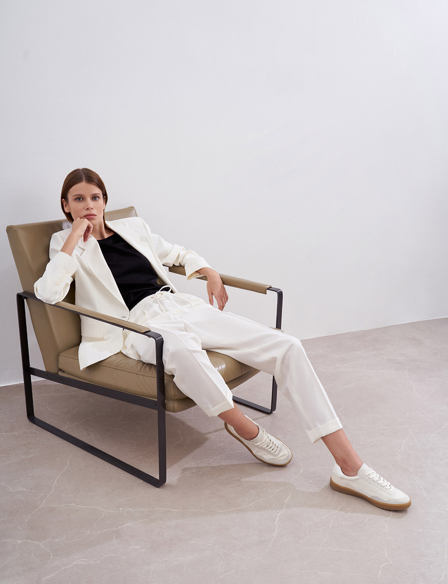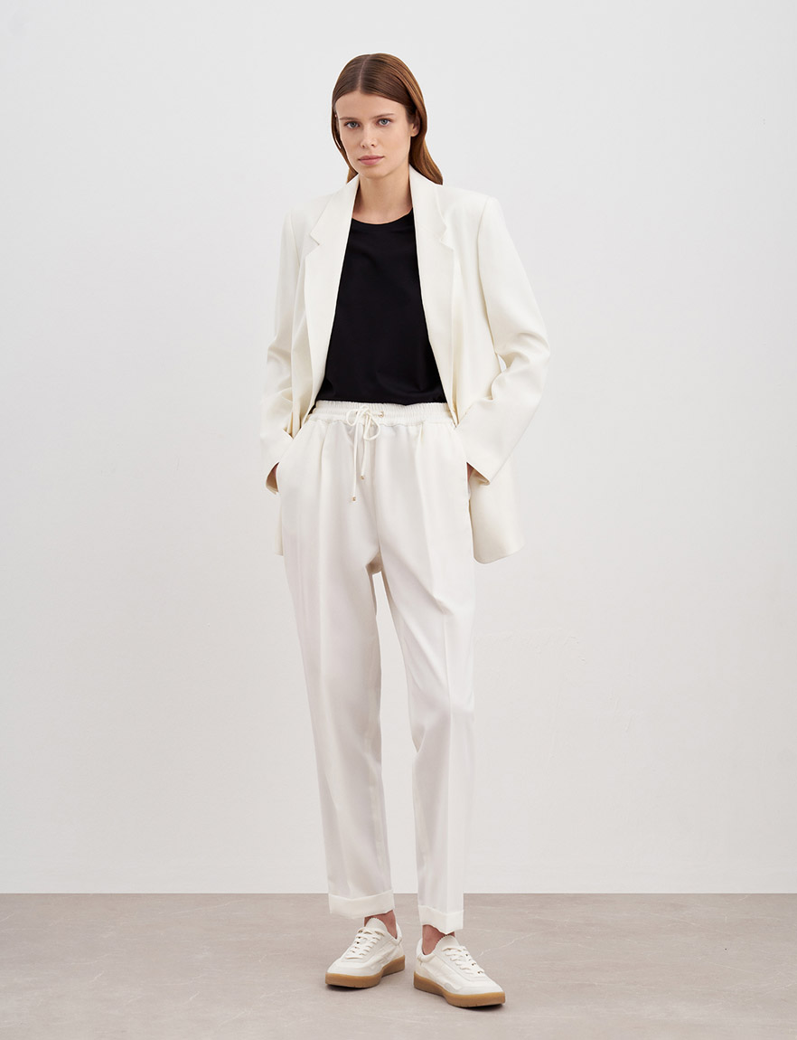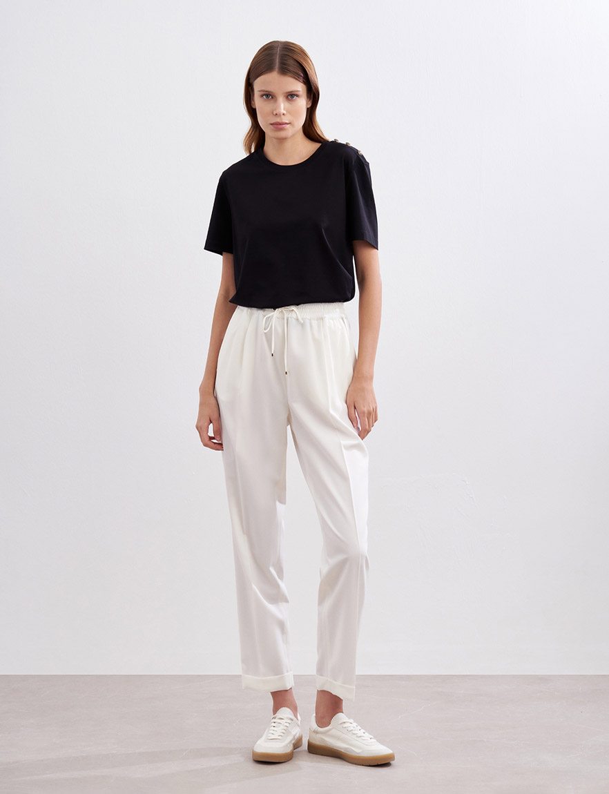 Прямые брюки на резинке со стрелками