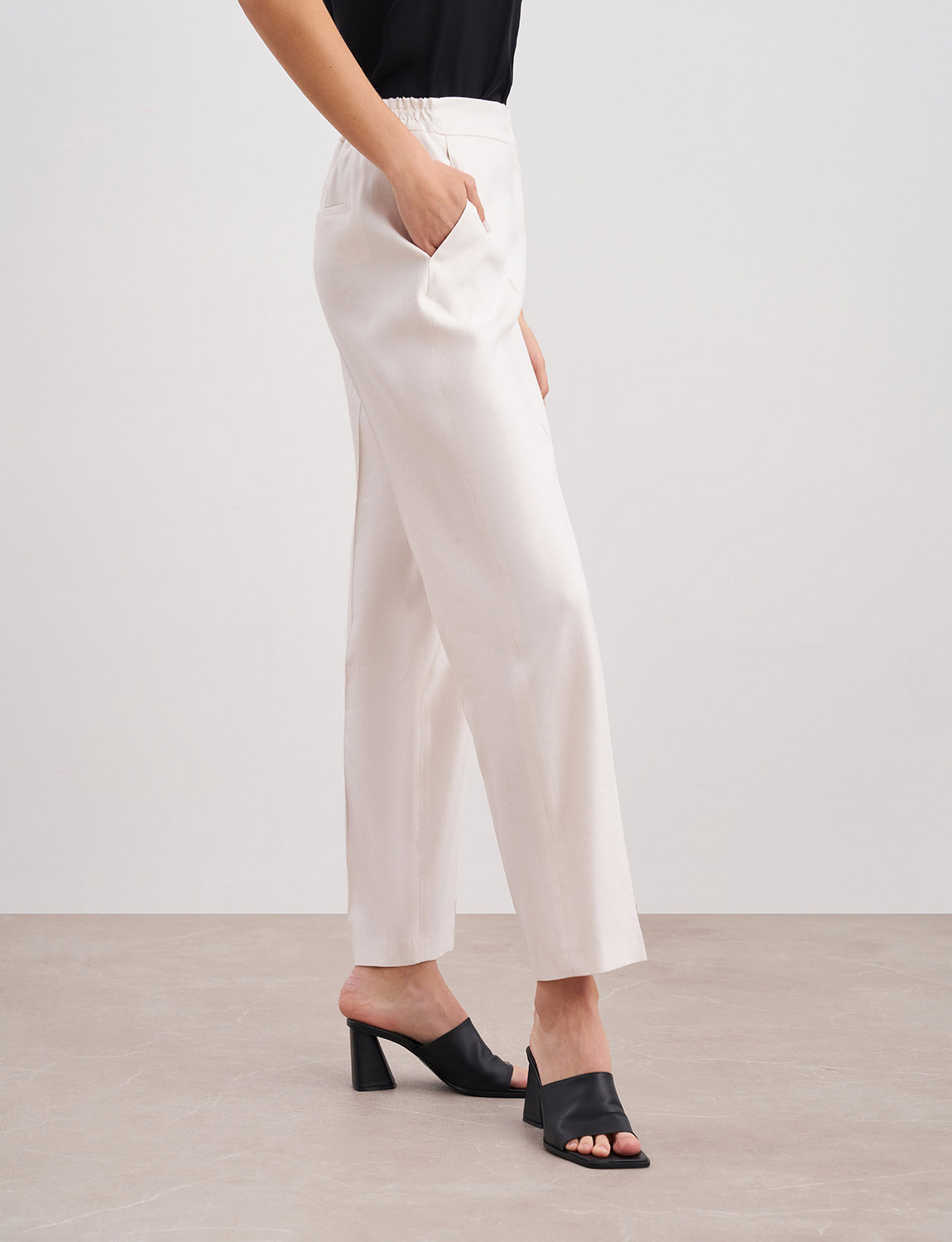 Элегантные брюки прямого кроя изо льна. Застежка со скрытой планкой, комфортная резинка на талии, боковые карманы, классические стрелки. Брюки дополнят как повседневные рабочие и офисные образы, так и вечерние и элегантные в сочетании с жакетом изо льна, лодочками или босоножками. На модели размер S. Параметры модели: рост 180, 83-60-88.
