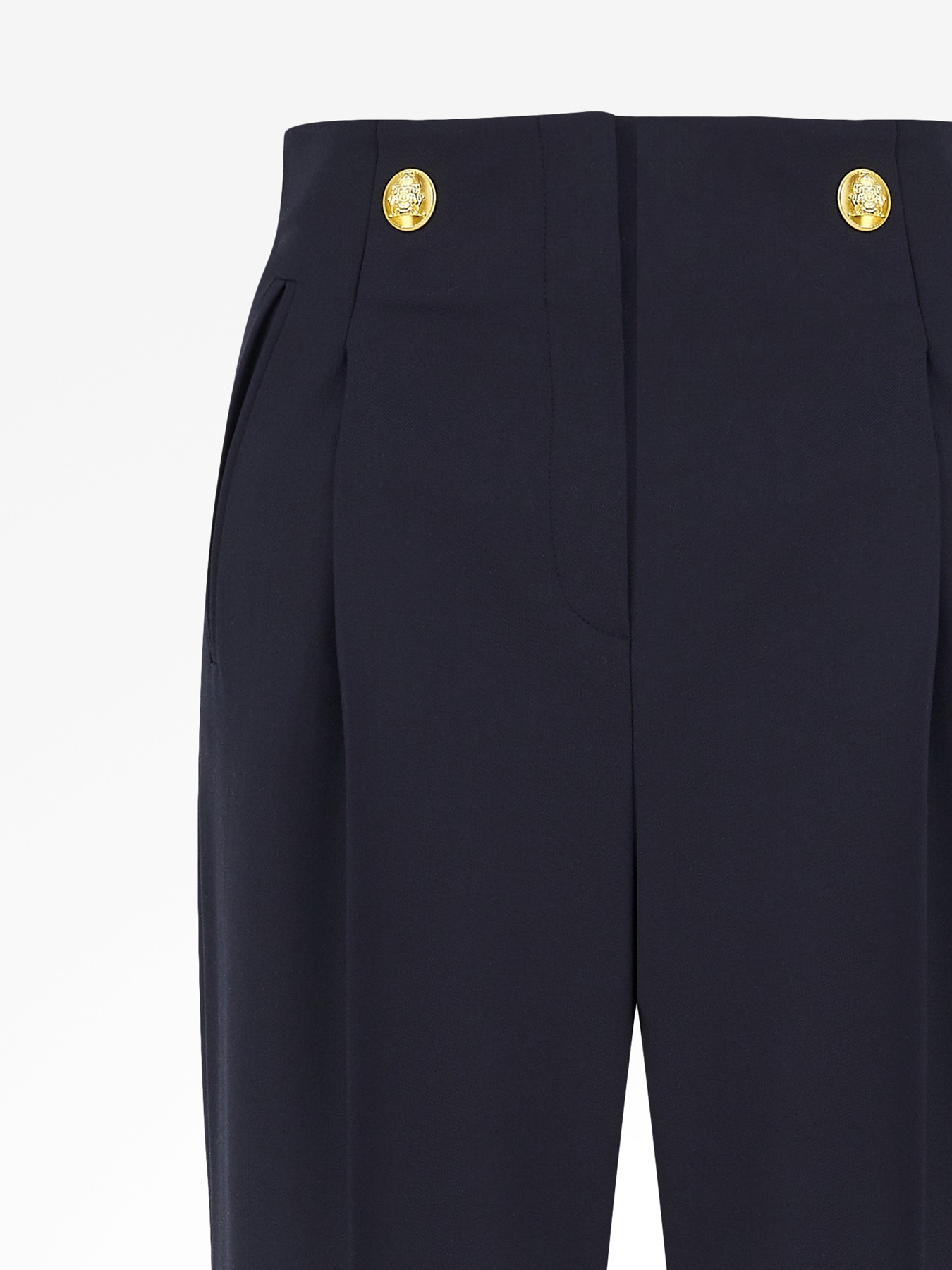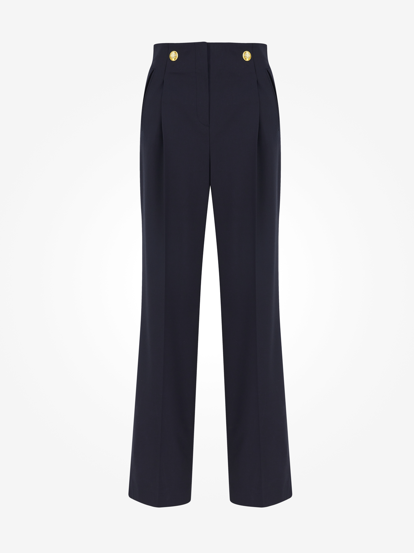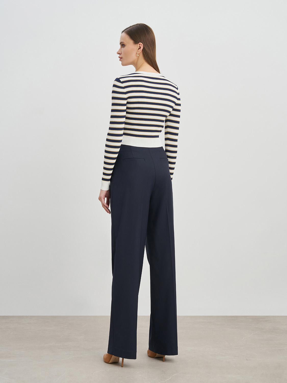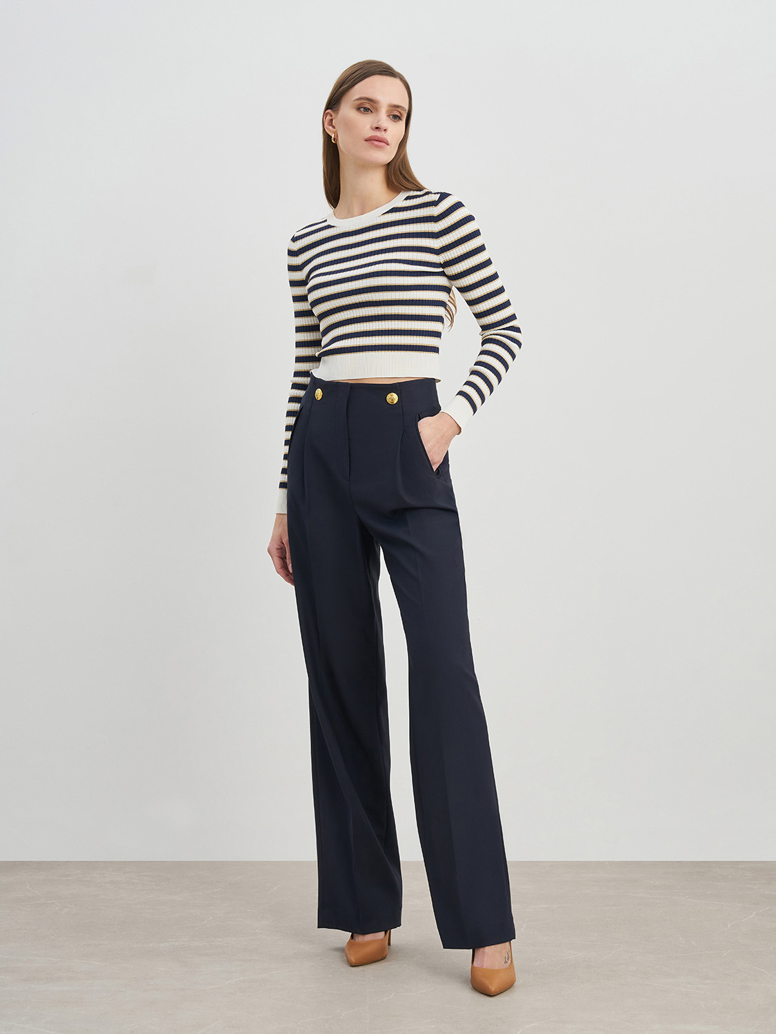 Элегантные брюки свободного кроя. Комфортная посадка, застежка на молнию, декоративные пуговицы, классические стрелки и защипы. Благодаря смесовому составу из вискозы и дышащего полиэстра - не сковывают движения и приятны на ощупь и коже, не закатываются и не собираются. Подойдут для повседневных и рабочих образов, для деловых встреч и вечерних мероприятий. Образ дополнит базовый топ или блуза, жакет в цвет, классические лодочки или ботильоны. На модели размер S. Параметры модели: рост 173, 80-63-91.
