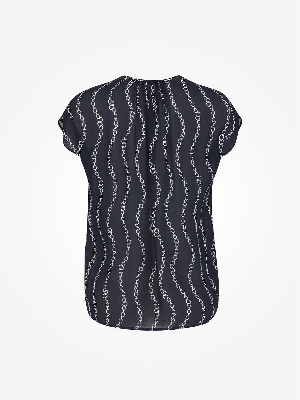 Легкая блуза с короткими рукавами. Прямой крой, ворот с кулиской, минималистичный узор. Невесомая ткань из вискозы без подкладки, благодаря которой в блузе комфортно даже в жаркую погоду. Образ дополнят джинсы, брюки или юбки, блуза подойдет первым слоем под жакеты. На модели размер S. Параметры модели: рост 174, 84-63-88.