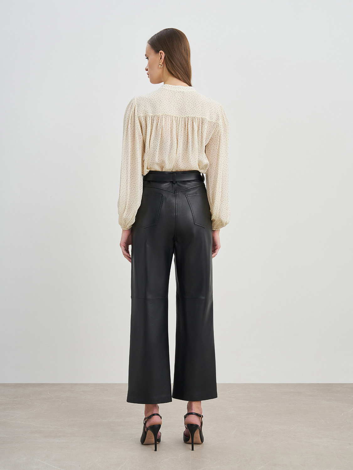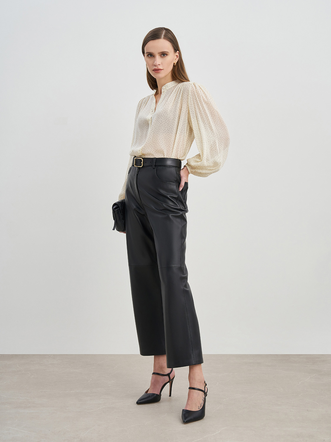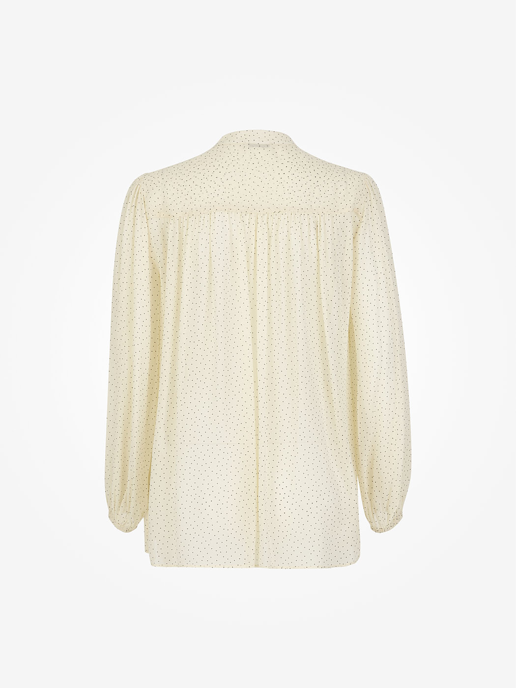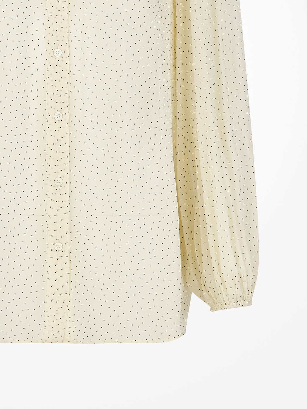 Блуза свободного кроя из вискозы. Актуальный узор в горошек, манжеты на рукавах, застежка спереди на пуговицы, воротник-стойка, без подкладки. Можно носить поверх топов, заправленной и навыпуск. Блузу легко сочетать с базовыми вещами-джинсами или брюками, юбками, туфлями-лодочками или ботильонами. Дополнит как рабочий и офисный образ на каждый день, так и вечерний и деловой. На модели размер S. Параметры модели: рост 173, 80-63-91.