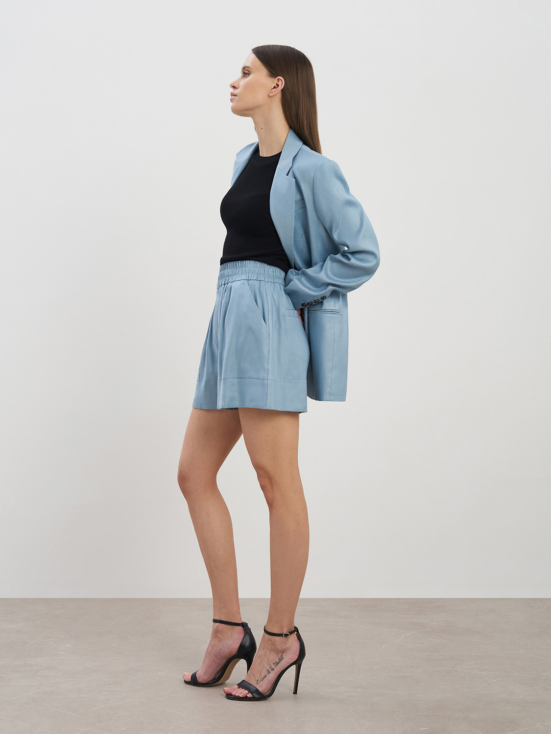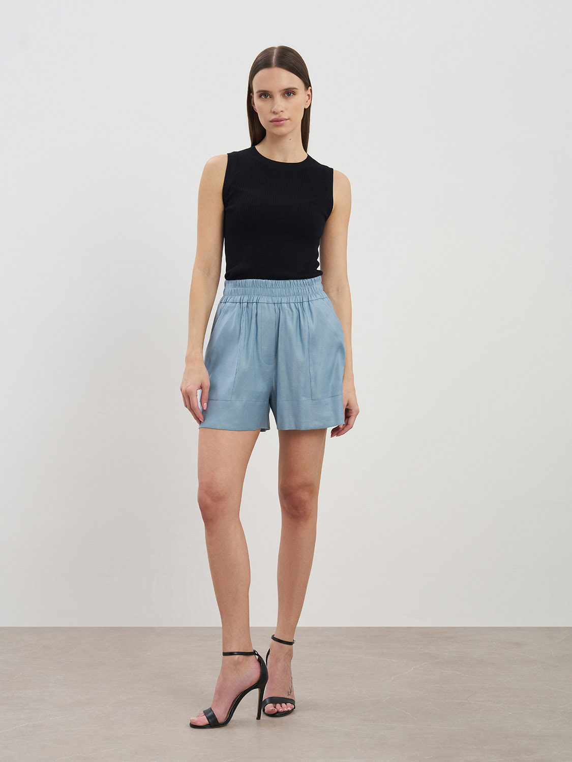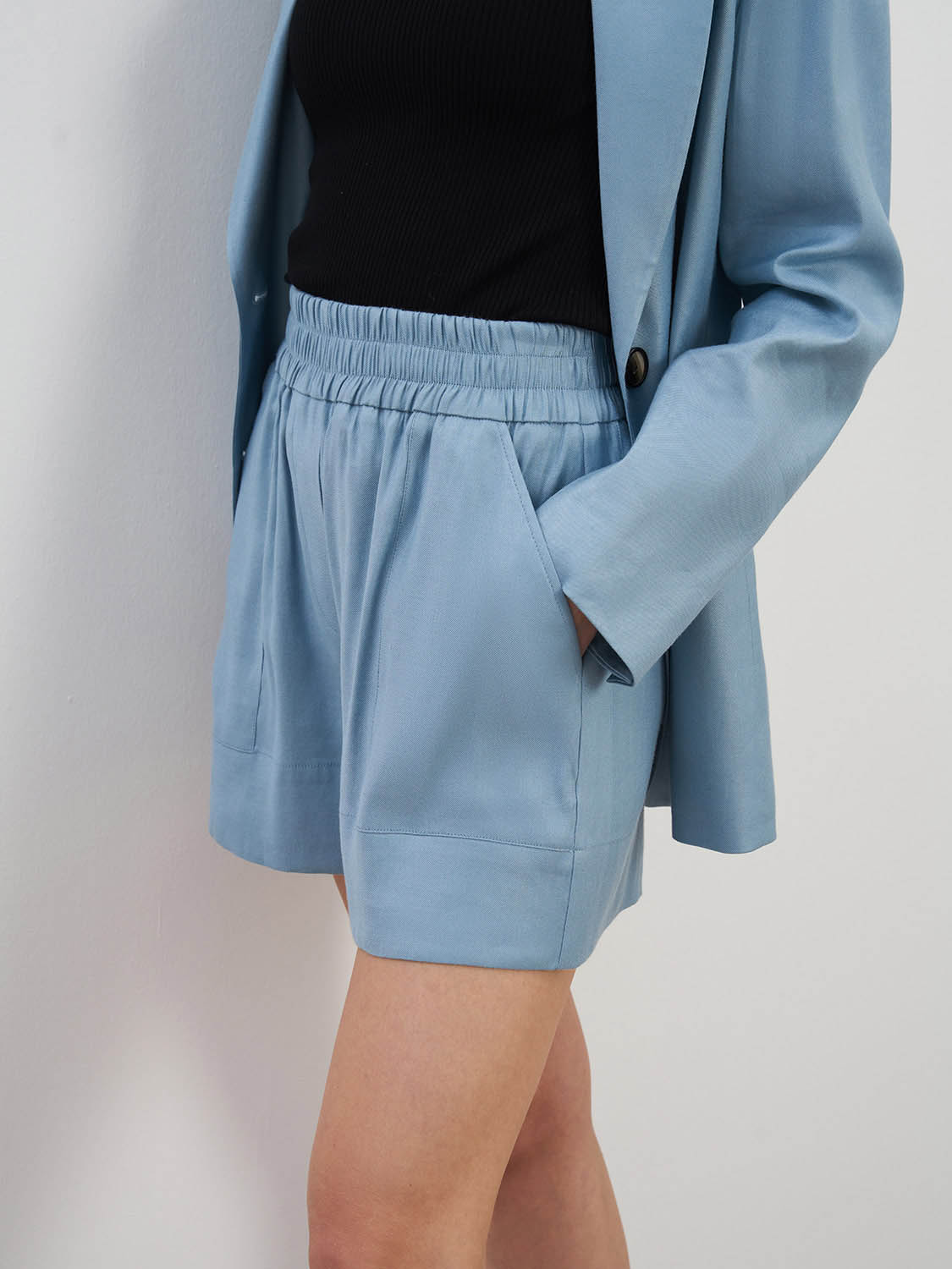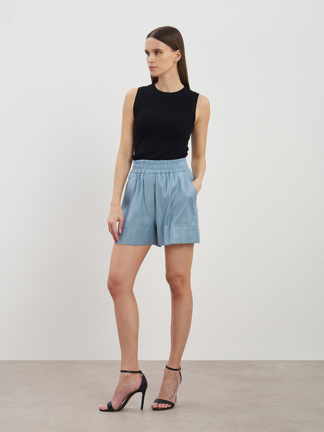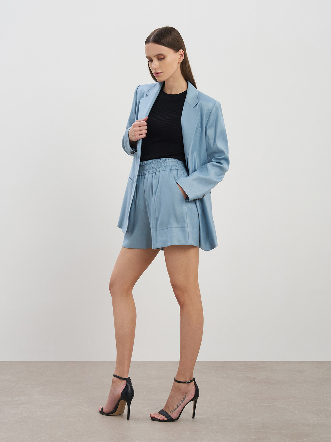 Шорты из натурального смесового льна. Комфортная резинка на талии, боковые карманы, свободный крой, натуральная и приятная на ощупь ткань из вискозы и льна. Сочетайте с жакетами изо льна, топами, рубашками, изящными босоножками, кедами или сандалиями. Шорты подойдут как для повседневных образов и прогулок, так и для офиса с нестрогим дресс-кодом в сочетании с жакетом. На модели размер S. Параметры модели: рост 173, 80-63-91.