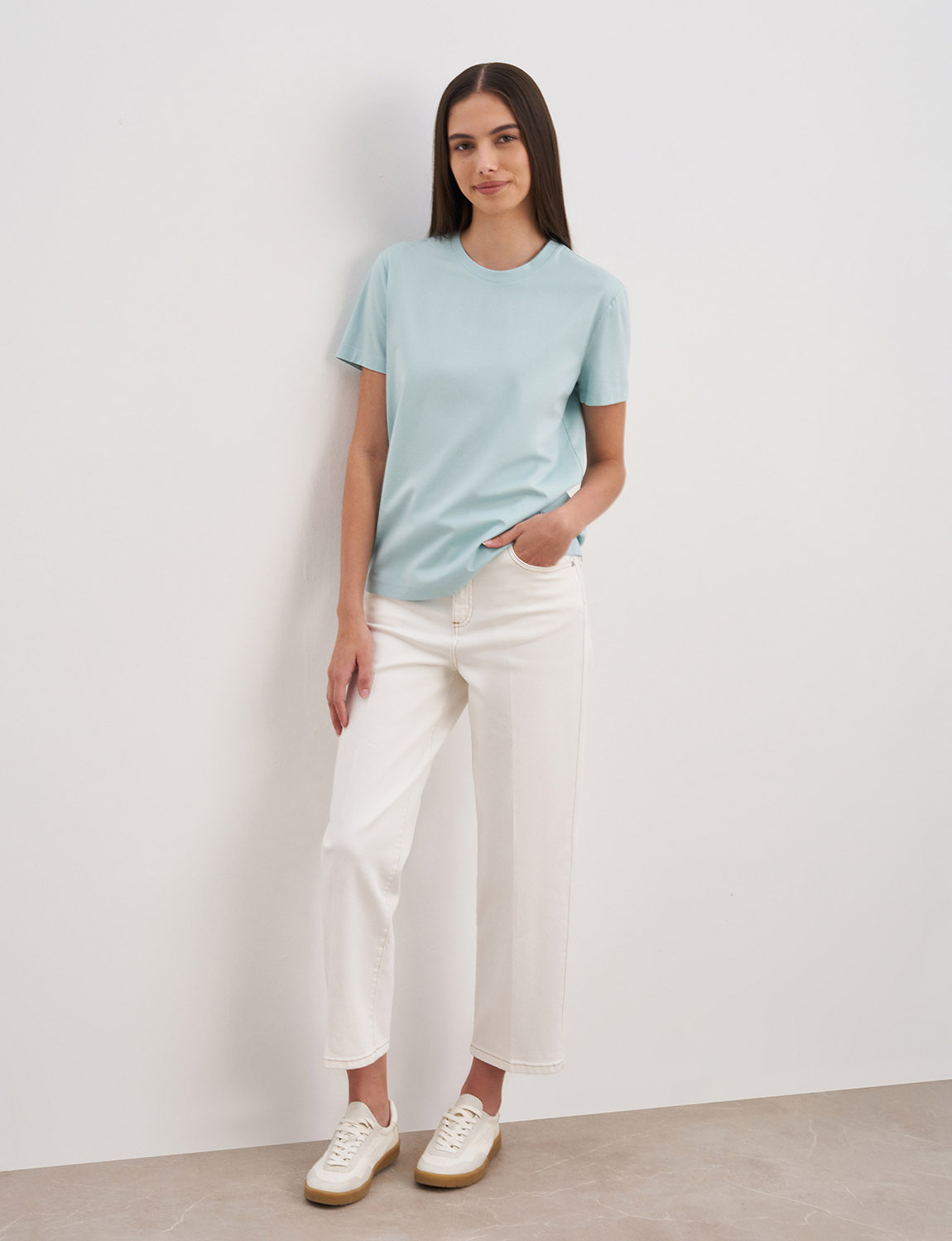 Футболка оверсайз из натурального хлопка. Округлый ворот, втачные рукава, мягкий и приятный на ощупь плотный хлопок. Футболка дополнит базовые повседневные образы с джинсами, трикотажными и джинсовыми шортами любого цвета, кедами. Незаменима в повседневной жизни и для летних прогулок. На модели размер S. Параметры модели: рост 178, 80-60-88.