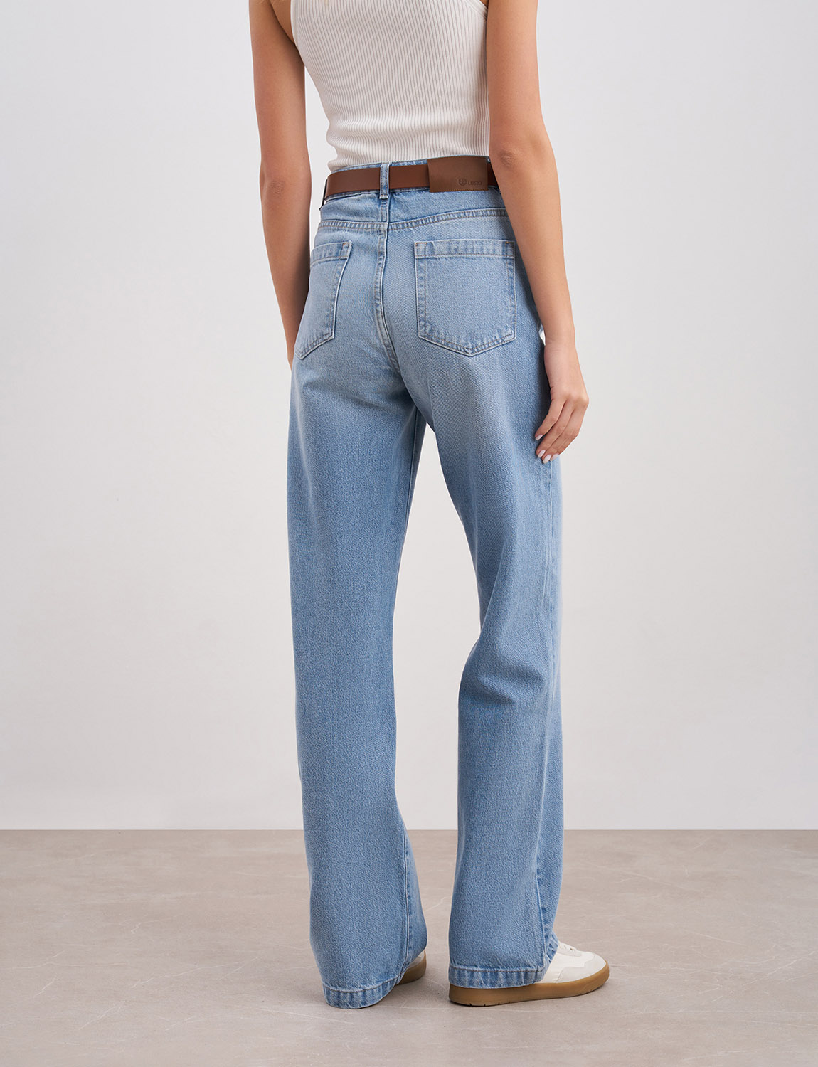 Джинсы-трубы прямого кроя из смесового хлопка. Боковые карманы и карманы на бедрах, шлевки для ремня, застежка на молнии с пуговицей. Мягкий, но в то же время плотный деним с легким эффектом потертости. Прямые джинсы - актуальная и долговечная модель для повседневной жизни и создания образов в стиле кэжуал с топами, рубашками, блузами и жакетами. Ремень в комплект не входит. На модели размер S. Параметры модели: рост 180, 83-60-88.